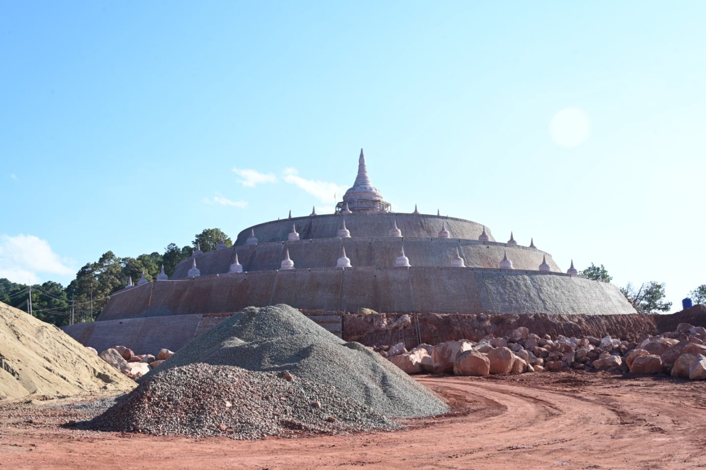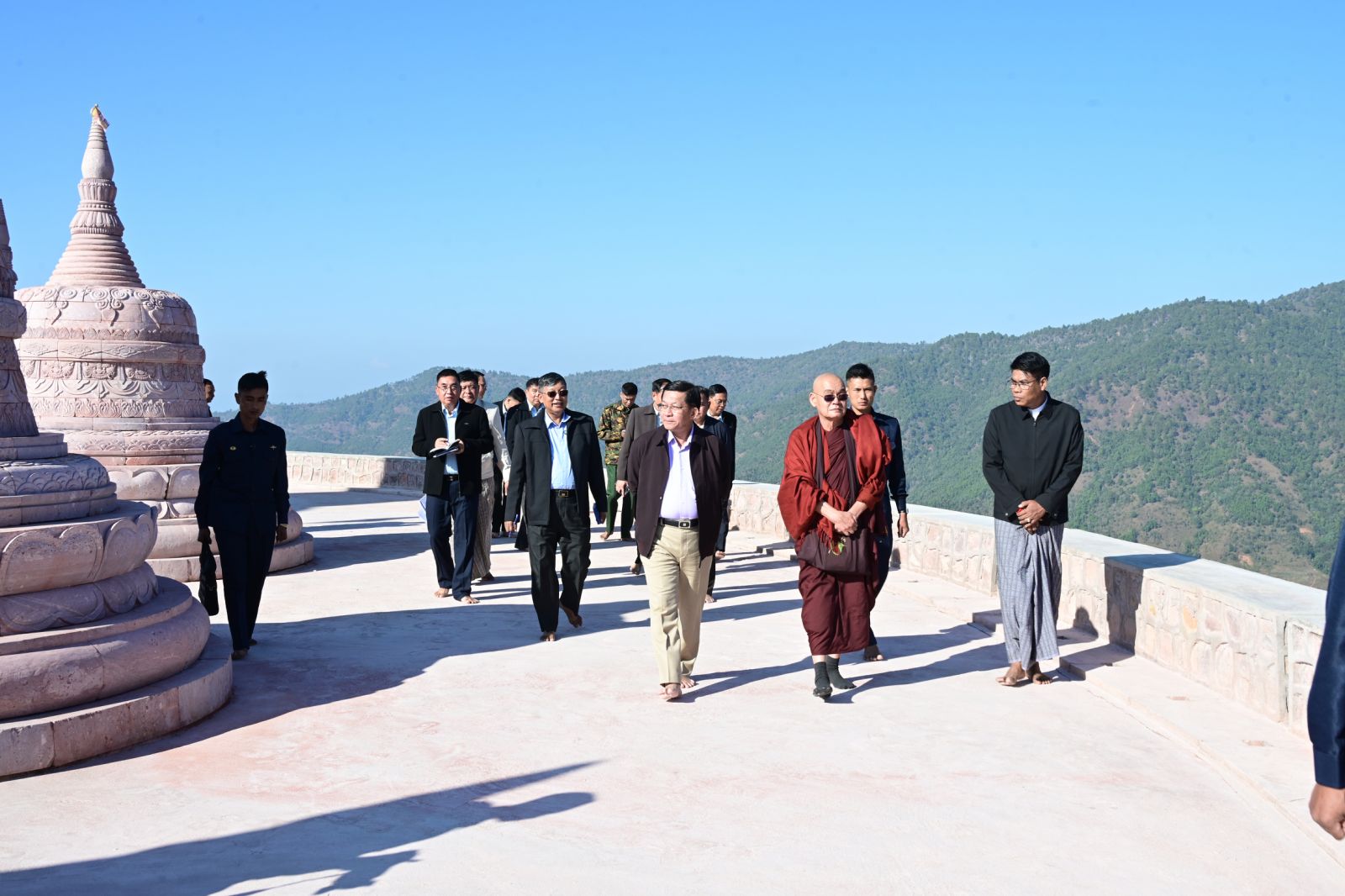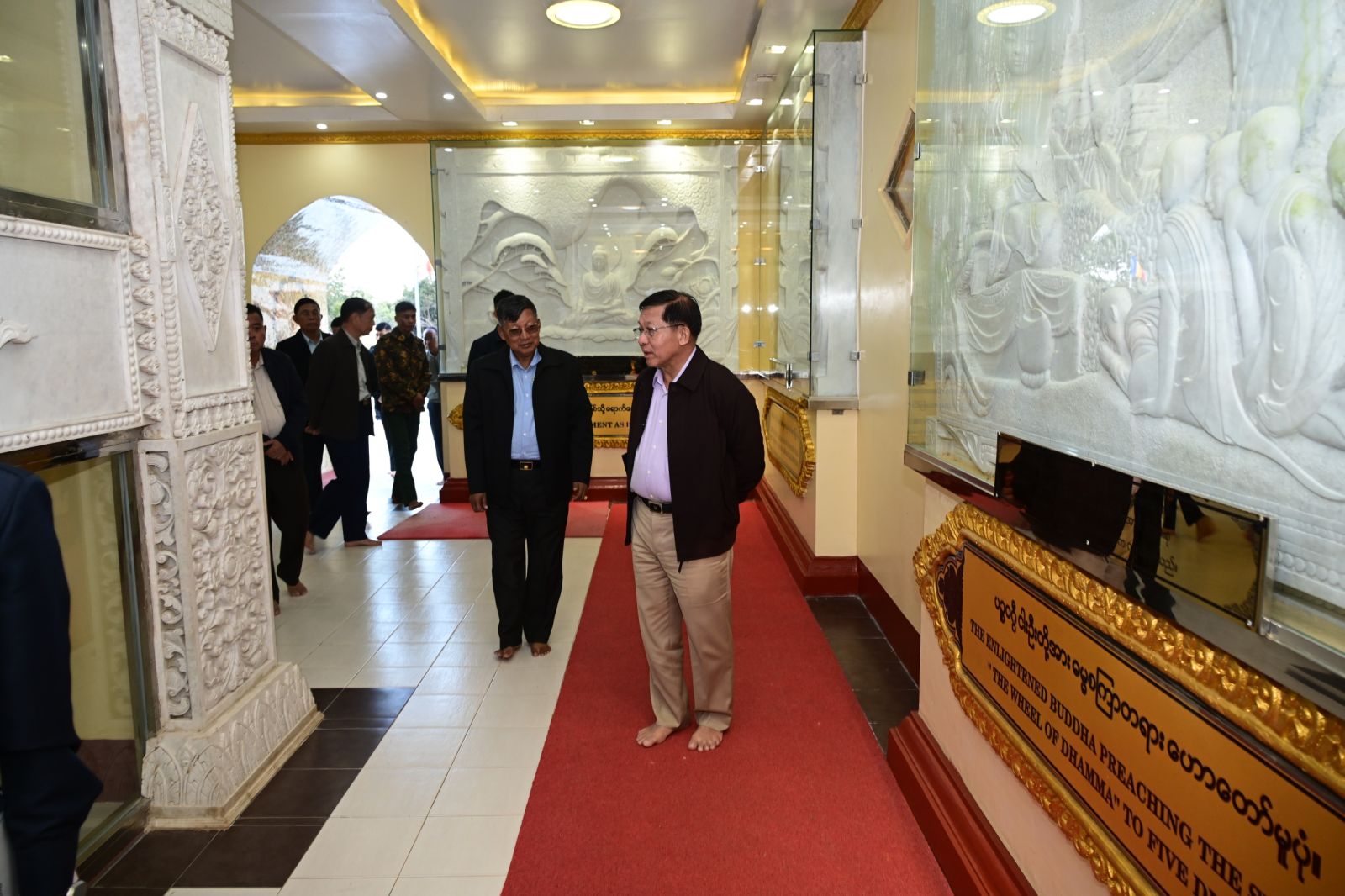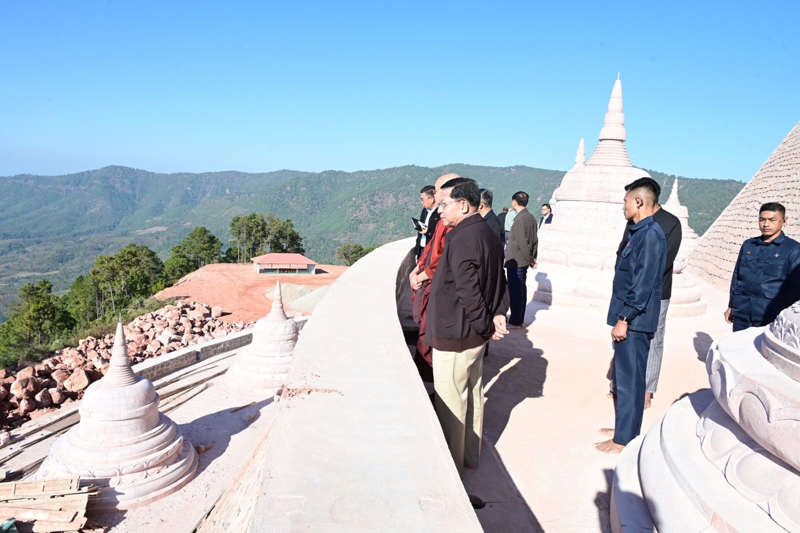 ထို့နောက် နိုင်ငံတော်ယာယီသမ္မတ နိုင်ငံတော်လုံခြုံရေးနှင့် အေးချမ်းသာယာ ရေး ကော်မရှင်ဥက္ကဋ္ဌသည် စေတီတော်ကြီးတည်ဆောက်ရေးလုပ်ငန်းခွင်အတွင်း လှည့် လည်ကြည့်ရှုပြီး လိုအပ်သည်များ လမ်းညွှန်မှာကြားသည်။