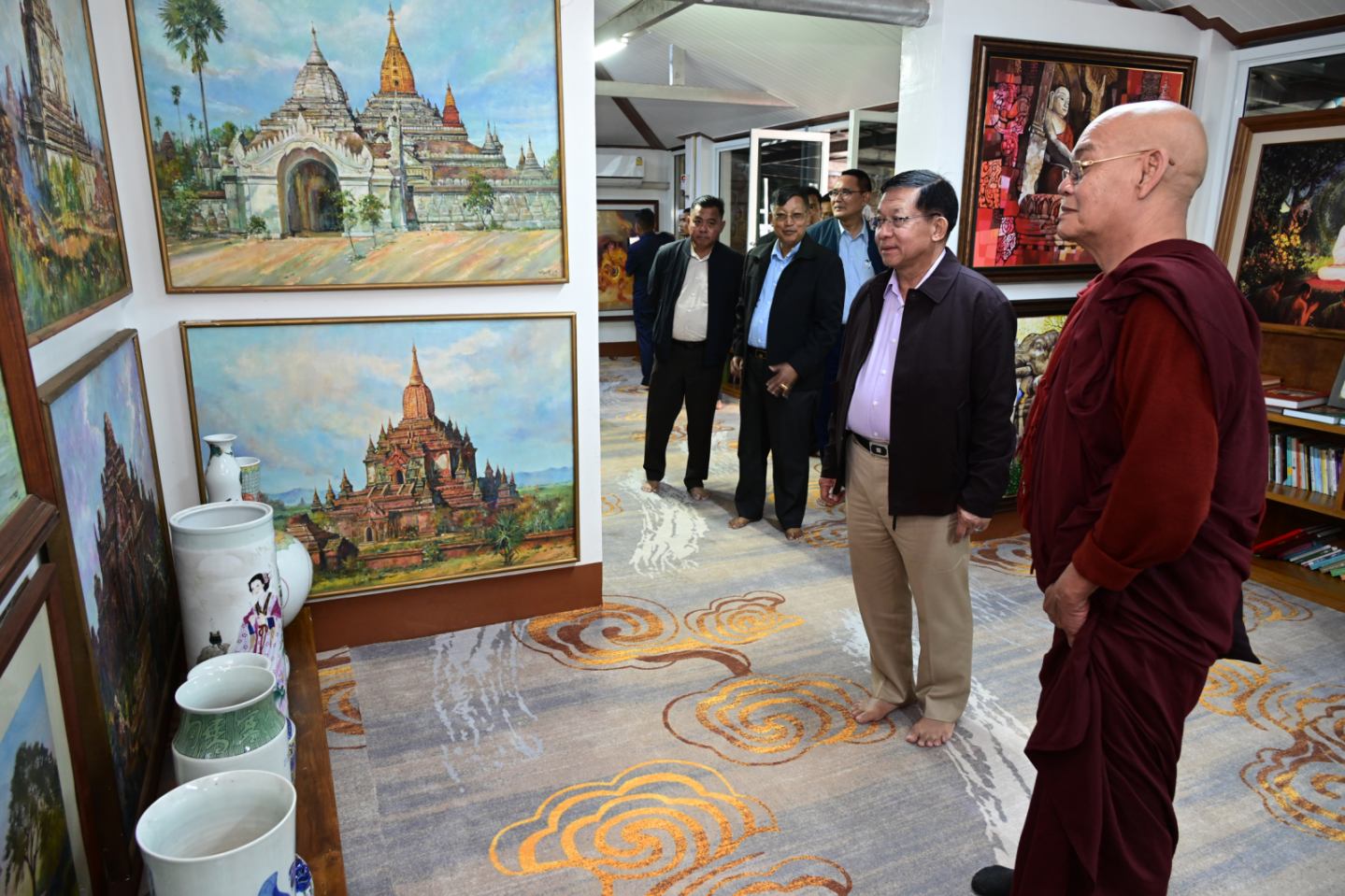 ထို့နောက် နိုင်ငံတော်ယာယီသမ္မတ နိုင်ငံတော်လုံခြုံရေးနှင့် အေးချမ်းသာယာ ရေးကော်မရှင်ဥက္ကဋ္ဌသည် ဘုရားကြီး ဧည့်သည်တော်မှတ်တမ်းစာအုပ်တွင်လက်မှတ် ရေးထိုးပူဇော်သည်။