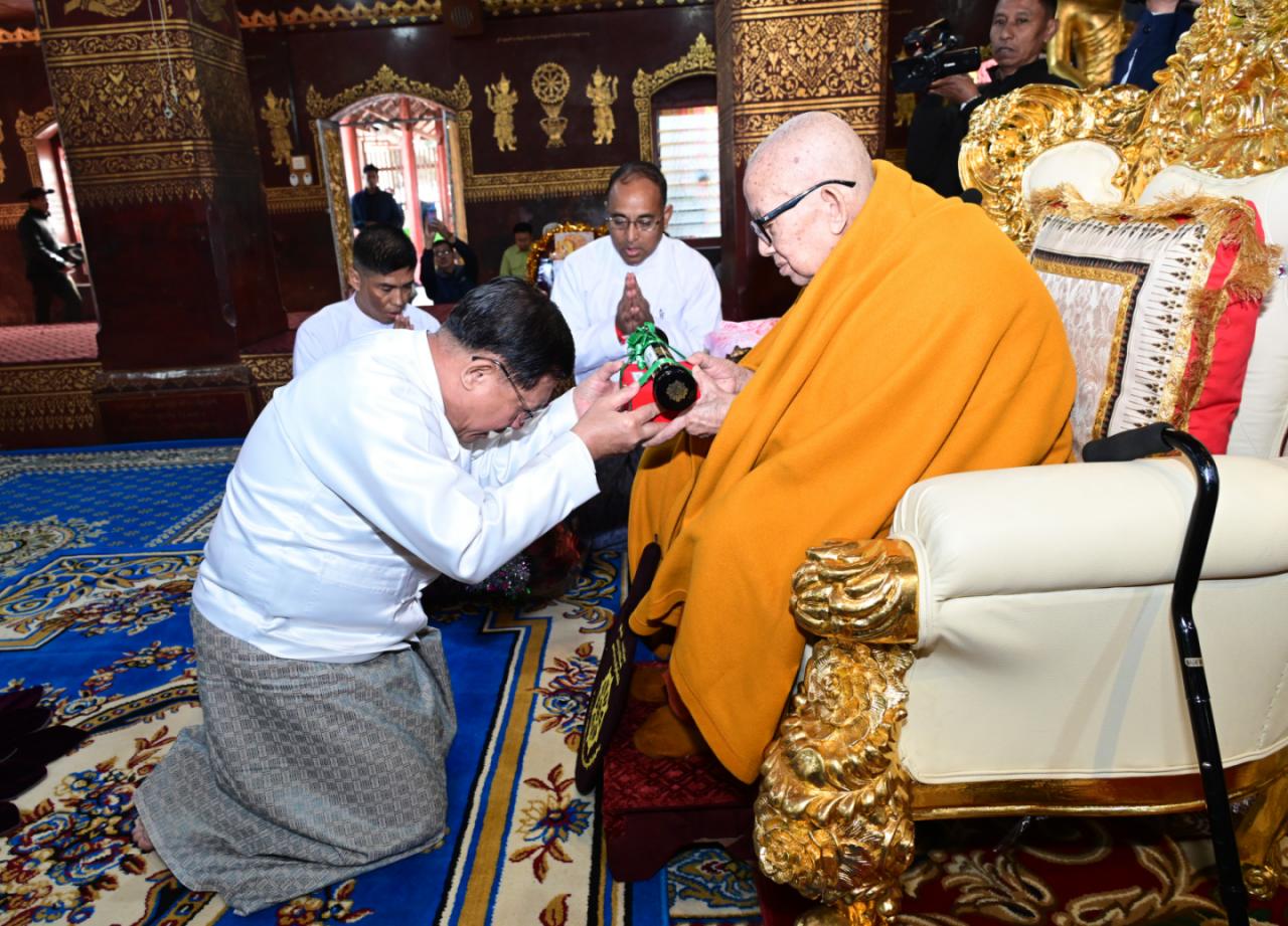 ၂၀၂၆ ခုနှစ်၊ ဇန်နဝါရီလ ၄ ရက်နေ့တွင် ပြည်ထောင်စုသမ္မတ မြန်မာနိုင်ငံတော် ယာယီသမ္မတ နိုင်ငံတော်လုံခြုံရေးနှင့် အေးချမ်းသာယာရေးကော်မရှင် ဥက္ကဋ္ဌ ဗိုလ်ချုပ် မှူးကြီး မင်းအောင်လှိုင် က နိုင်ငံတော်အတွက်ထူးကဲစွာအမှုထမ်းသူ၊ အကျိုးဆောင်သူ များနှင့် နိုင်ငံတော်ကာကွယ်ရေးနှင့်လုံခြုံရေးတာဝန်များကို စွမ်းစွမ်းတမံထမ်းဆောင်ခဲ့ သည့် ရဟန်းပုဂ္ဂိုလ်၊ လူပုဂ္ဂိုလ်များအား ဂုဏ်ထူးဆောင်ဘွဲ့တံဆိပ်များ ဆက်ကပ် ချီးမြှင့် အပ်နှင်းခဲ့သည်။