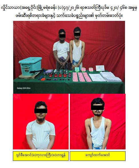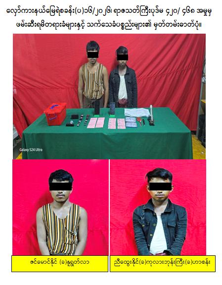 ထိုသို့ နိုင်ငံသားစိစစ်ရေးကတ်ပြားများနှင့် ဌာနဆိုင်ရာ/ ရုံးစာရွက်စာတမ်းများ လိမ်လည် အတုပြုလုပ်သည့် ဖမ်းဆီးရမိတရားခံ ဂျင်မီအောင်(ခ)ကုလားကြီး(ခ)ဟာရွန်နှင့် ကျော်ထက်အောင် တို့အား လှိုင်သာယာ(အရှေ့ပိုင်း)မြို့မရဲစခန်း (ပ)၄၇/၂၀၂၆၊ ရာဇသတ်ကြီးပုဒ်မ ၄၂၀/ ၄၆၈ ဖြင့် လည်းကောင်း၊ ညီထွေးနိုင်(ခ)ကုလားဘုန်းကြီး(ခ)ဟာစန်းနှင့် ဇင်မောင်နိုင်(ခ)နူရွတ်လာတို့အား လှော်ကားနယ်မြေရဲစခန်း (ပ)၁၆/၂၀၂၆၊ ရာဇသတ်ကြီးပုဒ်မ ၄၂၀/ ၄၆၈ ဖြင့်လည်းကောင်း အမှုရေးဖွင့်ဖမ်းဆီးစစ်ဆေးကာ ထိရောက်စွာအရေးယူနိုင်ရေးနှင့် ပူးပေါင်းပါဝင်ကျူးလွန်သူများ အားလည်း ဆက်လက်ဖော်ထုတ်လျက်ရှိကြောင်း သတင်းရရှိသည်။