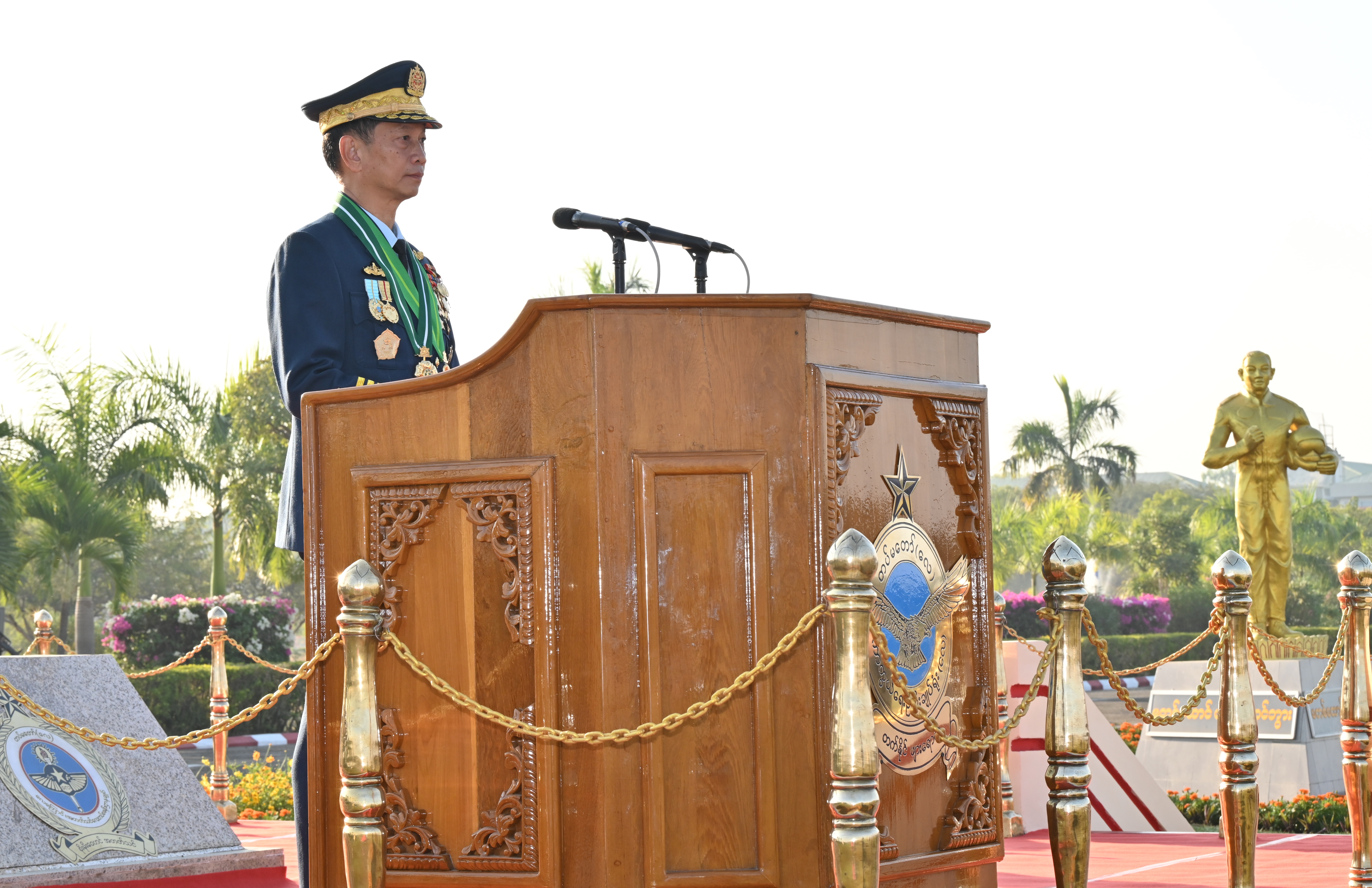 တပ်မတော်(လေ)အနေဖြင့် သမားရိုးကျစစ်ပွဲအပြင် သမားရိုးကျမဟုတ်သောစစ်ပွဲများနှင့် စိန်ခေါ်မှုများကို ခုခံတွန်းလှန်နိုင်ရန် ရည်မှန်းချက်ထားဆောင်ရွက်လျက်ရှိကြောင်း၊ နိုင်ငံတော် ကာကွယ်ရေးတာဝန်၊ လေ့ကျင့်ရေးတာဝန်နှင့် ပြည်သူ့အကျိုးပြုလုပ်ငန်းတာဝန်များကို ဆတက်ထမ်းပိုး စွမ်းစွမ်းတမံသယ်ပိုးဆောင်ရွက်လျက်ရှိကြောင်း၊ သက်ဆိုင်ရာပျံသန်းရေးအုပ်အသီးသီးတွင် ရောက်ရှိ တာဝန်ထမ်းဆောင်ရာ၌ နိုင်ငံတော်ကာကွယ်ရေးတာဝန်အပြင် နိုင်ငံတော်နှင့် ပြည်သူလူထု အကျိုးအတွက် လိုအပ်လာပါက ကျရာတာဝန်အသီးသီးကို ကျေကျေပွန်ပွန်ထမ်းဆောင်နိုင်ရန် စစ်ရေးအသင့်အမြဲရှိနေအောင် လေ့ကျင့်ပြင်ဆင်သွားကြရန် တိုက်တွန်းမှာကြားလိုကြောင်းဖြင့် ပြောကြားသည်။