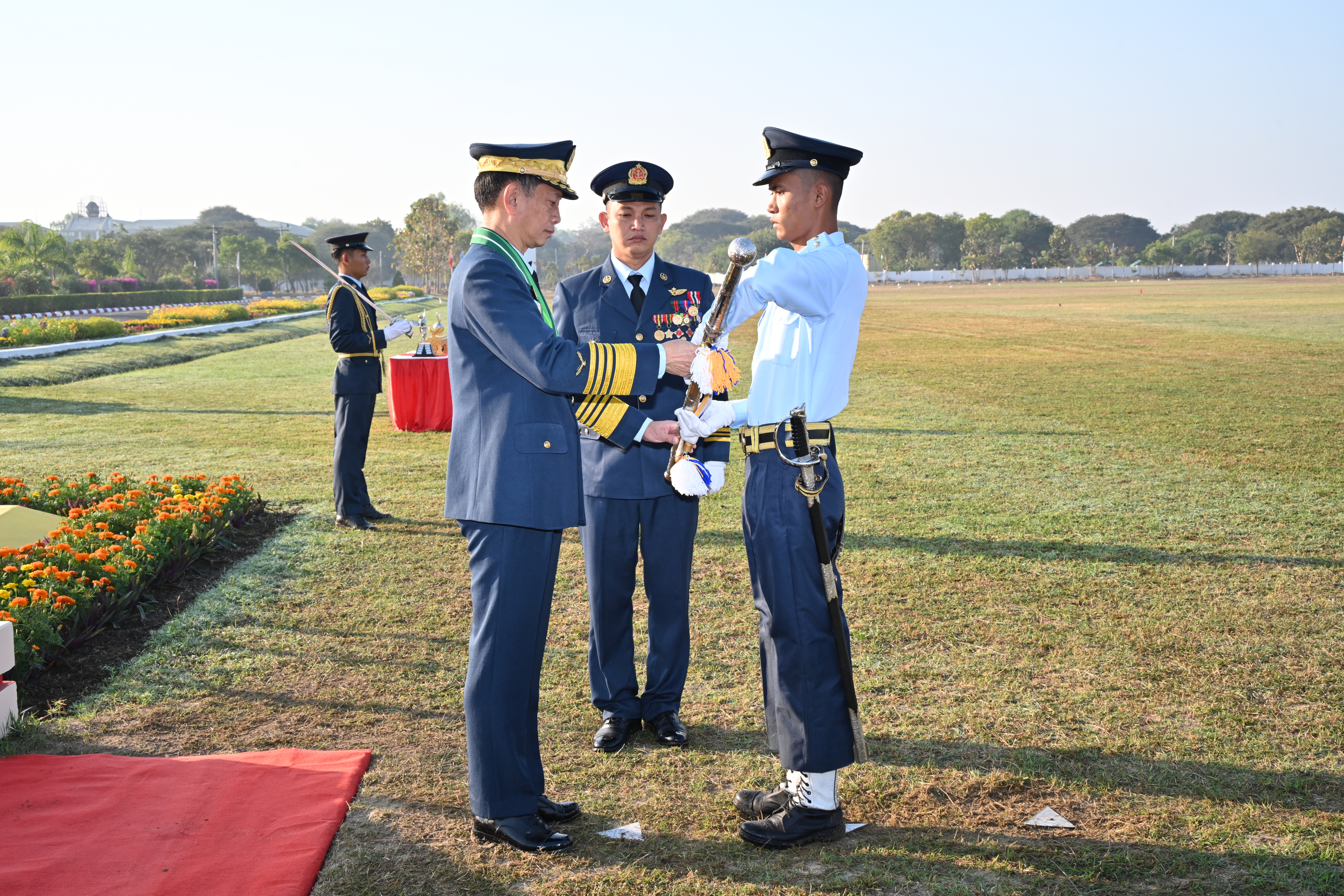 ထို့နောက် နိုင်ငံတော်လုံခြုံရေးနှင့်အေးချမ်းသာယာရေးကော်မရှင်ဥက္ကဋ္ဌ တပ်မတော် ကာကွယ်ရေးဦးစီးချုပ် ကိုယ်စား ကာကွယ်ရေးဦးစီးချုပ်(လေ) ဗိုလ်ချုပ်ကြီး ဇေယျကျော်ထင် စည်သူ ထွန်းအောင် က သင်တန်းဆင်းမိန့်ခွန်းပြောကြားရာတွင် အင်အားတောင့်တင်းပြီး စွမ်းရည် ထက်မြက်သည့် ခေတ်မီမျိုးချစ်တပ်မတော်တစ်ရပ်ဖြစ်လာစေရန်အတွက် တပ်မတော်(လေ)ရှိ ခေတ်မီလေယာဉ်/ရဟတ်ယာဉ်များကို ပျံသန်းမောင်းနှင်မည့် အရည်အချင်း၊ အရည်အသွေး ပြည့်မီသော လေသူရဲများမွေးထုတ်ပေးရန်ဆိုသည့် ရည်ရွယ်ချက်နှင့်အညီ နိုင်ငံတော်နှင့် တပ်မတော်အတွက် မျိုးဆက်သစ်လေသူရဲများဖြစ်သည့် ရဲဘော်တို့ကို လေယာဉ်မောင်းသင် ကျောင်းမှ လေ့ကျင့်မွေးထုတ်ပေးခဲ့ခြင်းဖြစ်ကြောင်း၊ တပ်မတော်(လေ)ရှိ ပျံသန်းရေးအုပ် အသီးသီးတွင် တန်ဖိုးကြီးမားသည့်အဆင့်မြင့် လေယာဉ်၊ ရဟတ်ယာဉ်များကို တာဝန်ယူပျံသန်း မောင်းနှင်ပြီး နိုင်ငံတော်ကာကွယ်ရေးတာဝန်များကို စတင်ထမ်းဆောင်ရတော့မည်ဖြစ်ကြောင်း။
