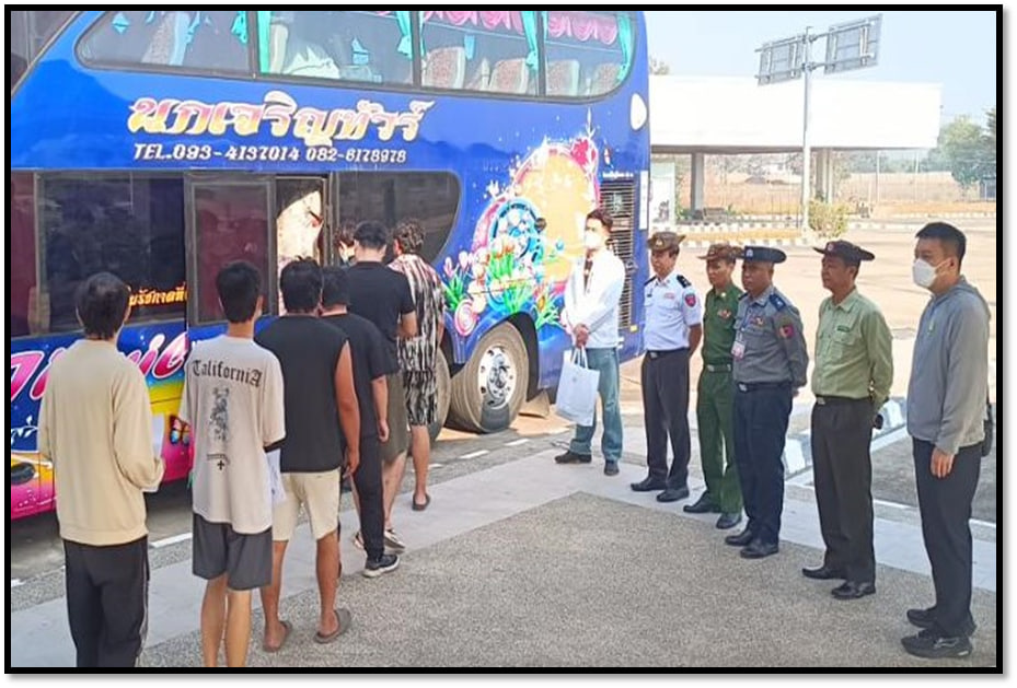 ထိုင်းနိုင်ငံအပါအဝင် အိမ်နီးချင်းနိုင်ငံအချို့ကို တစ်ဆင့်ခံဖြတ်သန်း၍ မြန်မာနိုင်ငံအတွင်းသို့ နယ်စပ်လမ်းကြောင်းများမှ တရားမဝင် ဝင်ရောက်လာပြီး ကရင်ပြည်နယ်၊ မြဝတီ-ရွှေကုက္ကိုလ် နယ်မြေတွင် တရားမဝင် အွန်လိုင်းလောင်းကစားမှုများ၊ အွန်လိုင်းလိမ်လည်မှုများ၊ ဒုစရိုက်မှုများ ကျူးလွန်ခဲ့ကြသည့် တရုတ်နိုင်ငံသား ၂၉ ဦးတို့အား မြန်မာ-ထိုင်း အမှတ်(၂)ချစ်ကြည်ရေး တံတားမှတစ်ဆင့် သက်ဆိုင်ရာနိုင်ငံသို့ လူသားချင်း စာနာထောက်ထားမှုနှင့် နိုင်ငံအချင်းချင်း ချစ်ကြည်ရင်းနှီးမှုတို့ကို ရှေးရှု၍ ဥပဒေ လုပ်ထုံး လုပ်နည်းများနှင့်အညီ ထပ်မံလွှဲပြောင်းပေးသည်။