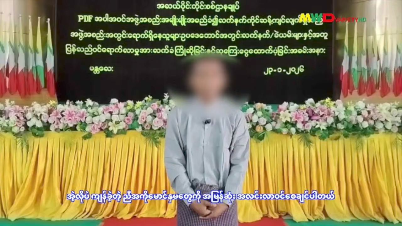 ကျွန်တော့်သူငယ်ချင်းအရင်းက ကျွန်တော့်ကို သူငယ်ချင်းမင်းအလုပ်လုပ်မှာလား၊ အလုပ်လုပ်ချင်လို့ရှိရင် အလုပ်ခေါ်မယ်။ ပိုက်ဆံလည်းအေးအေးဆေးဆေးလေးနဲ့ရမှာပါ။ အလုပ်ကလည်း သက်သာတယ်။ မင်းတို့ ကွန်ပျူတာလေးပဲ ထိုင်နှိပ်ရုံပဲလို့ပြောပြီးတော့မှ ကျွန်တော့်ကိုခေါ်သွားခဲ့တယ်။ အဲဒီလိုမက်လုံးတွေပေးပြီးတော့ အဲဒါနဲ့ကျွန်တော် လက်ပံလှ လူသစ်စုဆောင်းရေးကိုရောက်တယ်။ လက်ပံလှလူသစ်စုဆောင်းရေးမှာ တစ်ရက်နေခဲ့ရ တယ်။ အဲဒီမှာတစ်ရက်နေခဲ့ပြီးတော့ ကျွန်တော်တို့ R-2 ဆိုတဲ့ လူသစ်စုဆောင်းရေးကိုထပ် ရောက်တယ်။ အဲဒီမှာတော့ တစ်လခွဲလောက်နေခဲ့ရတယ်။ တစ်လခွဲလောက်နေပြီးတော့ ကျွန်တော်တို့ အဲဒီမိုးကုတ်ဆိုတဲ့ သင်တန်းကွင်းကိုရောက်ပါတယ်။ မိုးကုတ်ဆိုတဲ့သင်တန်း ကွင်းမှာ ပလောင်ဆရာတွေက သူတို့ရဲ့လူမျိုးရေးခွဲခြားဆက်ဆံမှုတွေရယ်၊ ဖိနှိပ်ဆက်ဆံမှု တွေရယ် အများကြီးပေါ့ဗျာ။ အဲဒီဒဏ်တွေကို ကျွန်တော်တို့ ခါးခါးသီးသီးခံခဲ့ရပါတယ်။ ကျွန်တော်တို့ ထမင်းစားရတဲ့အခါမှာလည်း ထမင်းကိုကောင်းကောင်းမွန်မွန်မစားရဘူး။ ထမင်းကို ဘူးသီးရေလုံပြုတ်၊ ခရမ်းသီးရေးလုံပြုတ် အဲလိုတွေကျွေးပါတယ်။ ထောက်ပို့ကို တစ်ပတ်လောက်လုပ်ပြီးတော့ ကျွန်တော်တို့ရှေ့တန်းကို သေနတ်ပေးပြီးတော့မှ ရှေ့တန်းကို လွှတ်ပါတယ်။ လွှတ်ပြီးတော့ ကျွန်တော်တို့ တပ်မတော်စစ်ကြောင်းနဲ့တွေ့ပါတယ်။ တပ်မတော်က စစ်ကြောင်းနဲ့တွေ့တော့ ကျွန်တော်တို့ ခွေးပြေး၊ ဝက်ပြေး ပြေးခဲ့ရပါတယ်။ လက်နက်တွေချပြီးတော့ ပြေးခဲ့ရတာတွေလည်းရှိပါတယ်။ ကျွန်တော်တို့ အသက်ဘေးက နေလုပြီးတော့ ပြေးခဲ့ရတာတွေလည်းရှိပါတယ်။ ပြည်သူတွေကို သူတို့တွေ အနိုင်ကျင့် နှိပ်စက်တာတွေကို ကျွန်တော်မကြိုက်လို့ ကျွန်တော့်ကို ကျွန်တော် ရုန်းထွက်ဖို့ကြိုးစားခဲပါ တယ်။ မြန်မာ့တပ်မတော်က ကောင်းကောင်းမွန်မွန်နွေးနွေးထွေးထွေးကြိုဆိုနေတဲ့အချိန်မှာ လာပြီးတော့ အလင်းဝင်ကြပါ။ အကြမ်းဖက်အဖွဲ့အစည်းကို အားပေးအားမြှောက်မပြုဖို့ လည်း ကျွန်တော့အနေနဲ့ပြောချင်ပါတယ်။ ကျွန်တော်ဆိုရင်လည်း နောင်တတွေအများကြီး ရခဲ့ပါတယ်။ ကျွန်တော်လုပ်ခဲ့တဲ့ ဒီအကြမ်းဖက်အဖွဲ့အစည်းနဲ့ ကျွန်တော်ပေါင်းပြီးတော့ ကျွန်တော်တို့ပြည်သူတွေကို ဖိနှိပ်ဆက်ဆံတာတွေ၊ ရိုက်နှက်တာတွေ လုပ်ခဲ့တာတွေလည်း ရှိပါတယ်။ အဲဒါတွေအကုန်လုံးအတွက် ပြည်သူတွေကို ကျွန်တော်စိတ်ရင်းနဲ့ ကျွန်တော့်ကို ခွင့်လွှတ်ကြပါလို့ တောင်းပန်ချင်ပါတယ်ခင်ဗျ။
