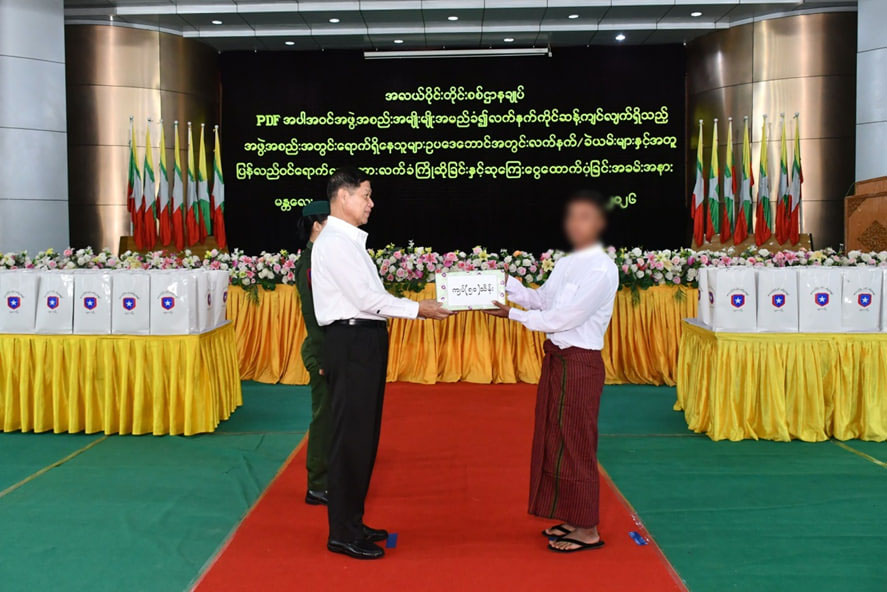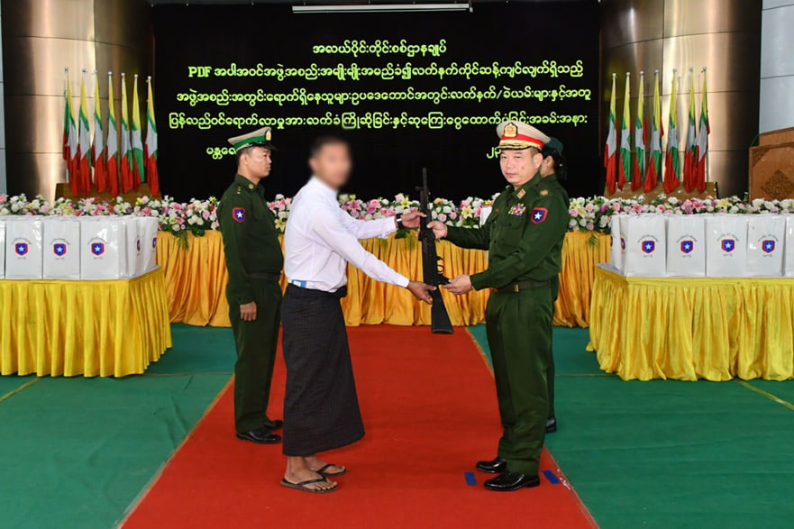 နိုင်ငံတော်အစိုးရသည် PDF အပါအဝင် အဖွဲ့အစည်းအမျိုးမျိုးအမည်ခံ၍ လက်နက်ကိုင် ဆန့်ကျင်လျက်ရှိသည့်် အဖွဲ့အစည်းများအတွင်း ရောက်ရှိနေသူများအား ဉပဒေဘောင်အတွင်းသို့ ပြန်လည်ဝင်ရောက်ရန် ဖိတ်ခေါ်၍ ဉပဒေဘောင်အတွင်းသို့ ပြန်လည်ဝင်ရောက်လာကြသူများကိုလည်း လိုအပ်သည့်ကူညီပံ့ပိုးမှုများ ဆောင်ရွက်ပေး လျက်ရှိသည်။