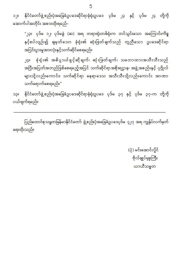 ပြည်ထောင်စုသမ္မတမြန်မာနိုင်ငံတော် ဖွဲ့စည်းပုံအခြေခံဥပဒေပုဒ်မ ၄၂၇ အရ ကျွန်ုပ်လက်မှတ် ရေးထိုးသည်။