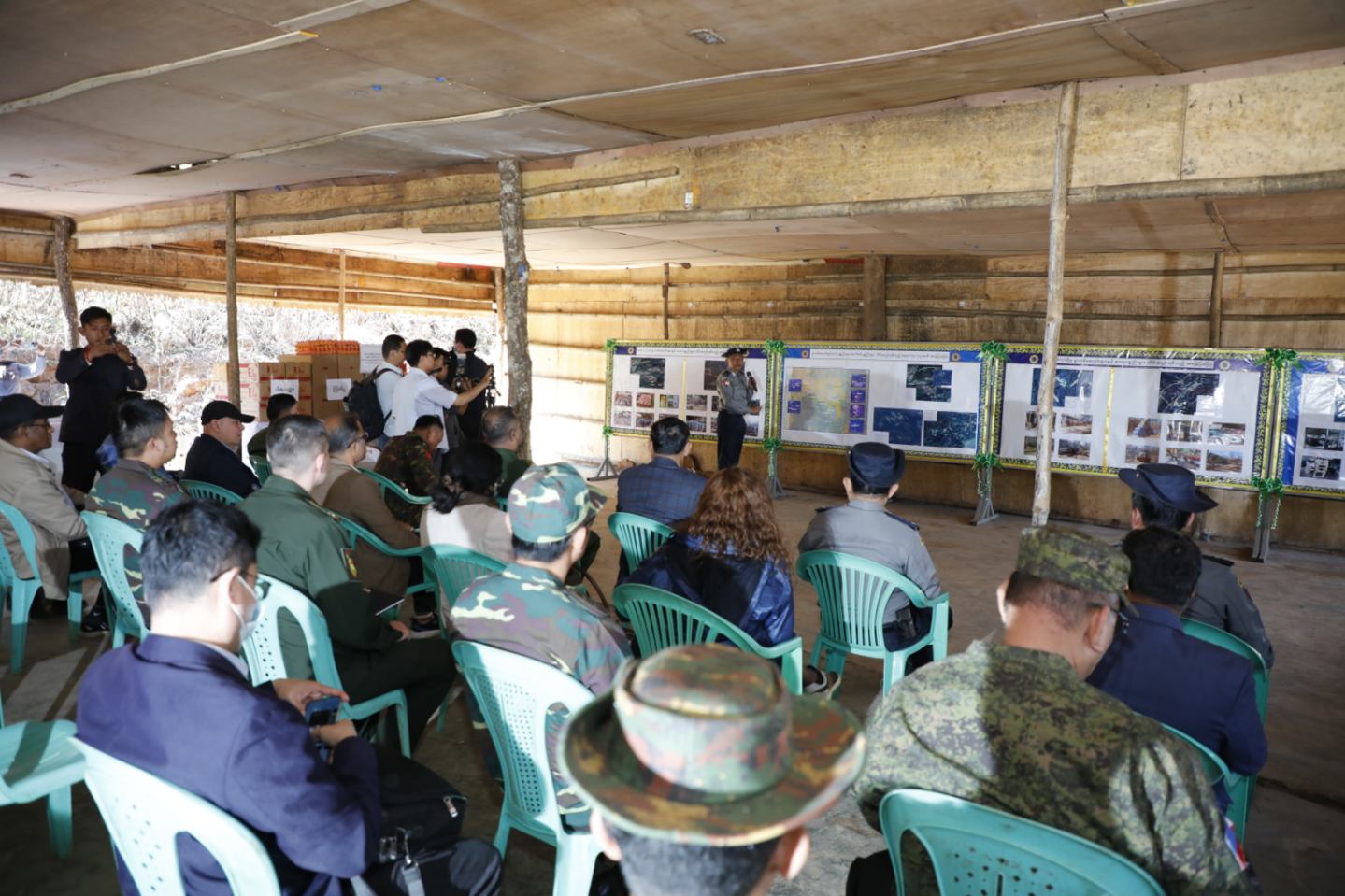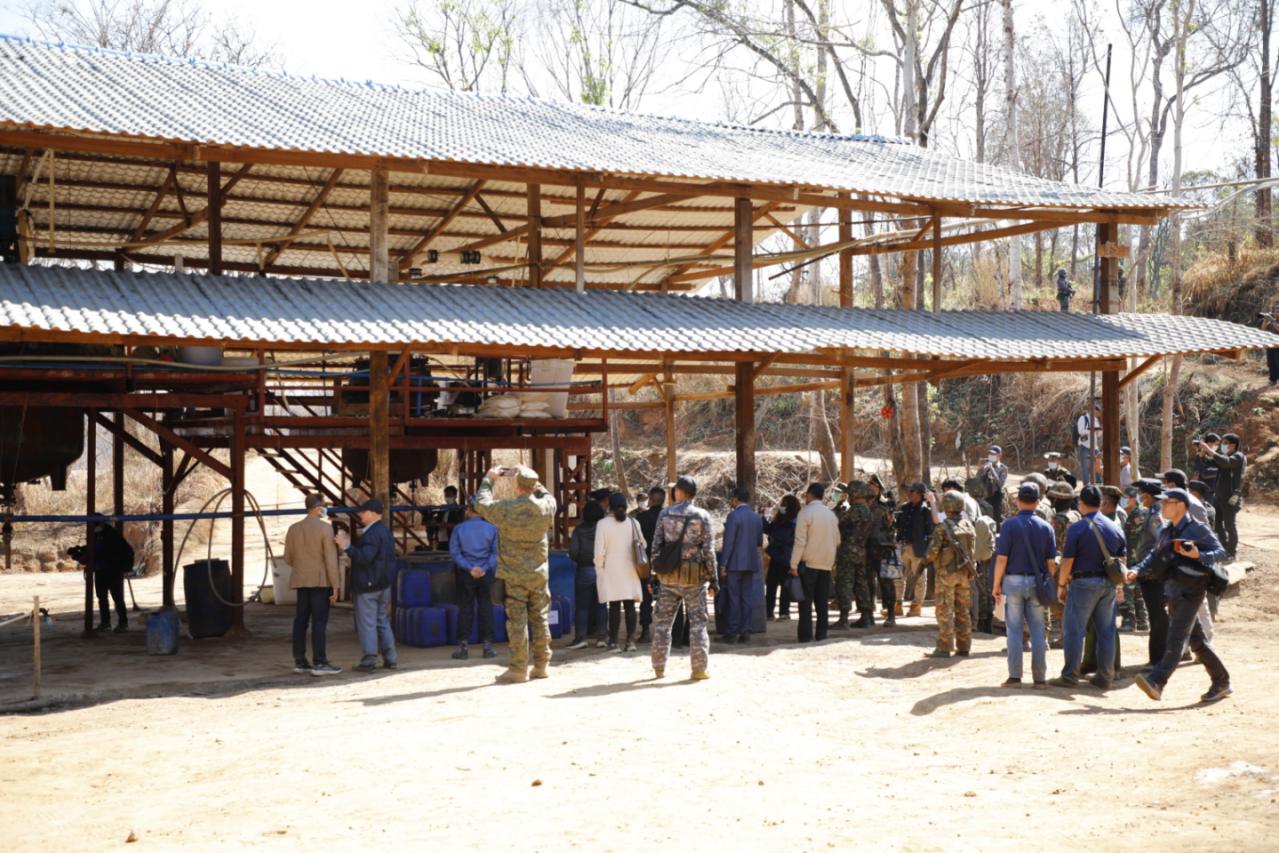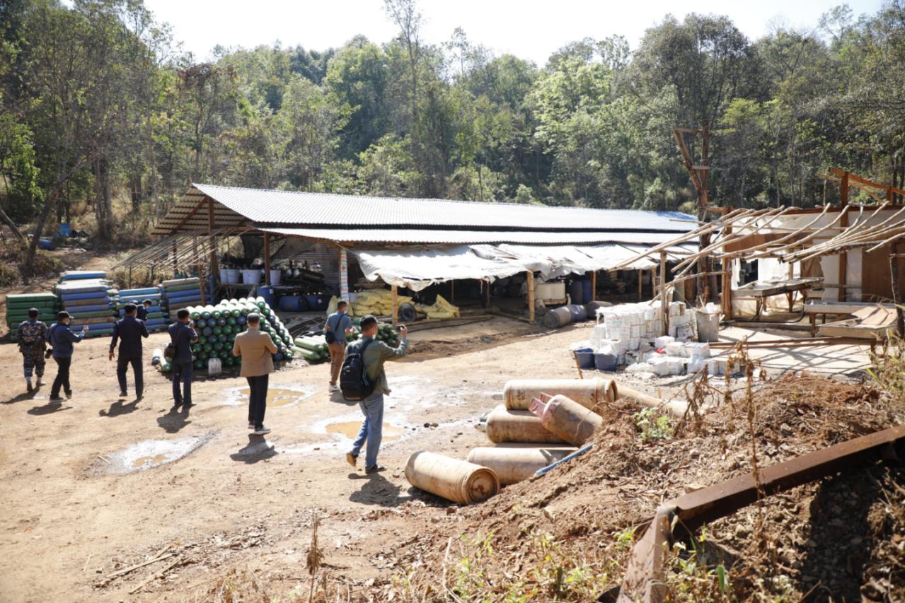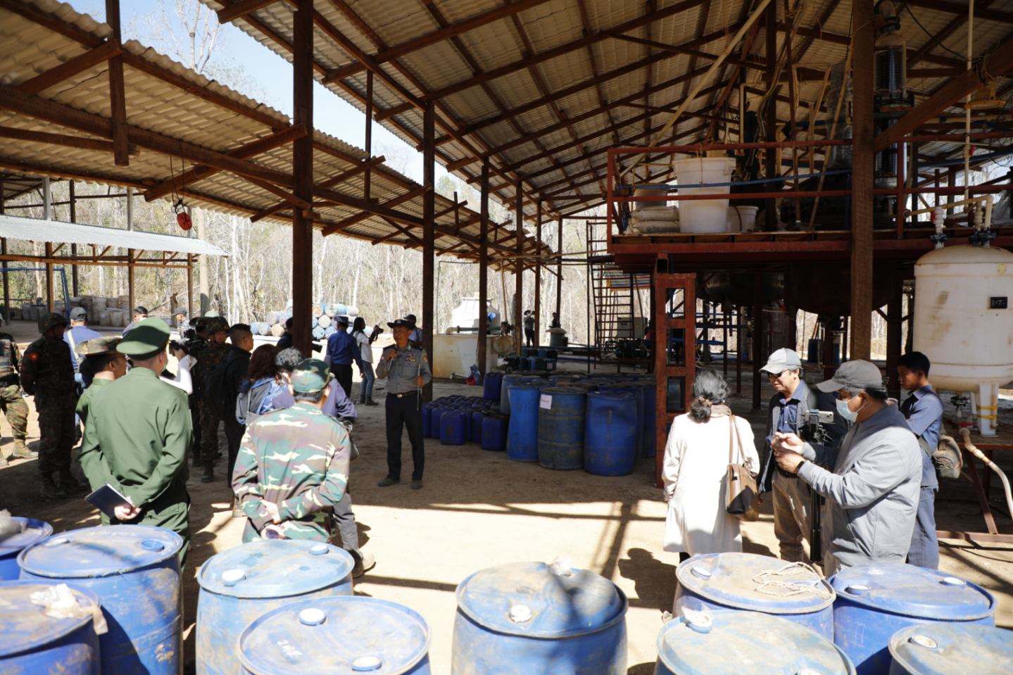 ဆက်လက်၍ အမျိုးသားကာကွယ်ရေးနှင့်လုံခြုံရေးကောင်စီ သတင်းထုတ်ပြန်ရေးအဖွဲ့ အဖွဲ့ခေါင်းဆောင် ပြန်ကြားရေးဝန်ကြီးဌာန ဒုတိယဝန်ကြီး၊ မြန်မာနိုင်ငံရဲတပ်ဖွဲ့၊ ရဲချုပ်နှင့် တာဝန်ရှိသူများ၊ သံတမန်များ၊ သတင်းမီဒီယာ အဖွဲ့များသည် မိုင်းရယ်မြို့၏ အနောက်တောင် ဘက် ၉ ကီလိုမီတာခန့်အကွာရှိ မူးယစ်ဆေးဝါး ထုတ်လုပ်သည့်နေရာသို့ ရောက်ရှိကြပြီး မူးယစ်ဆေးဝါးချက်လုပ်ရာ၌ အသုံးပြုခဲ့သည့် ယာယီအဆောက်အဦများ၊ ဓာတုပစ္စည်းများ၊ မူးယစ်ဆေးဝါးချက်လုပ်ရာတွင်အသုံးပြုသော ဆက်စပ်ပစ္စည်းများကို တာဝန်ရှိသူများက နေရာတစ်ခုချင်းစီအလိုက် လိုက်လံရှင်းလင်းပြသခဲ့ကာ သိရှိလိုသည့်မေးမြန်းမှုများအပေါ် ပြန်လည် ရှင်းလင်းဖြေကြားခဲ့ကြသည်။