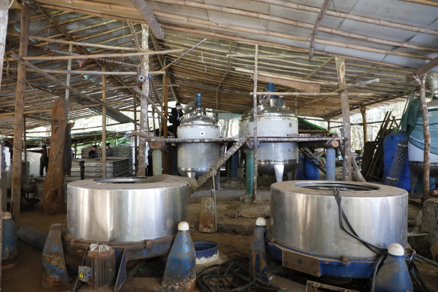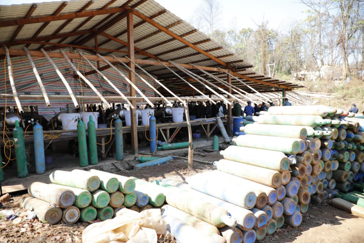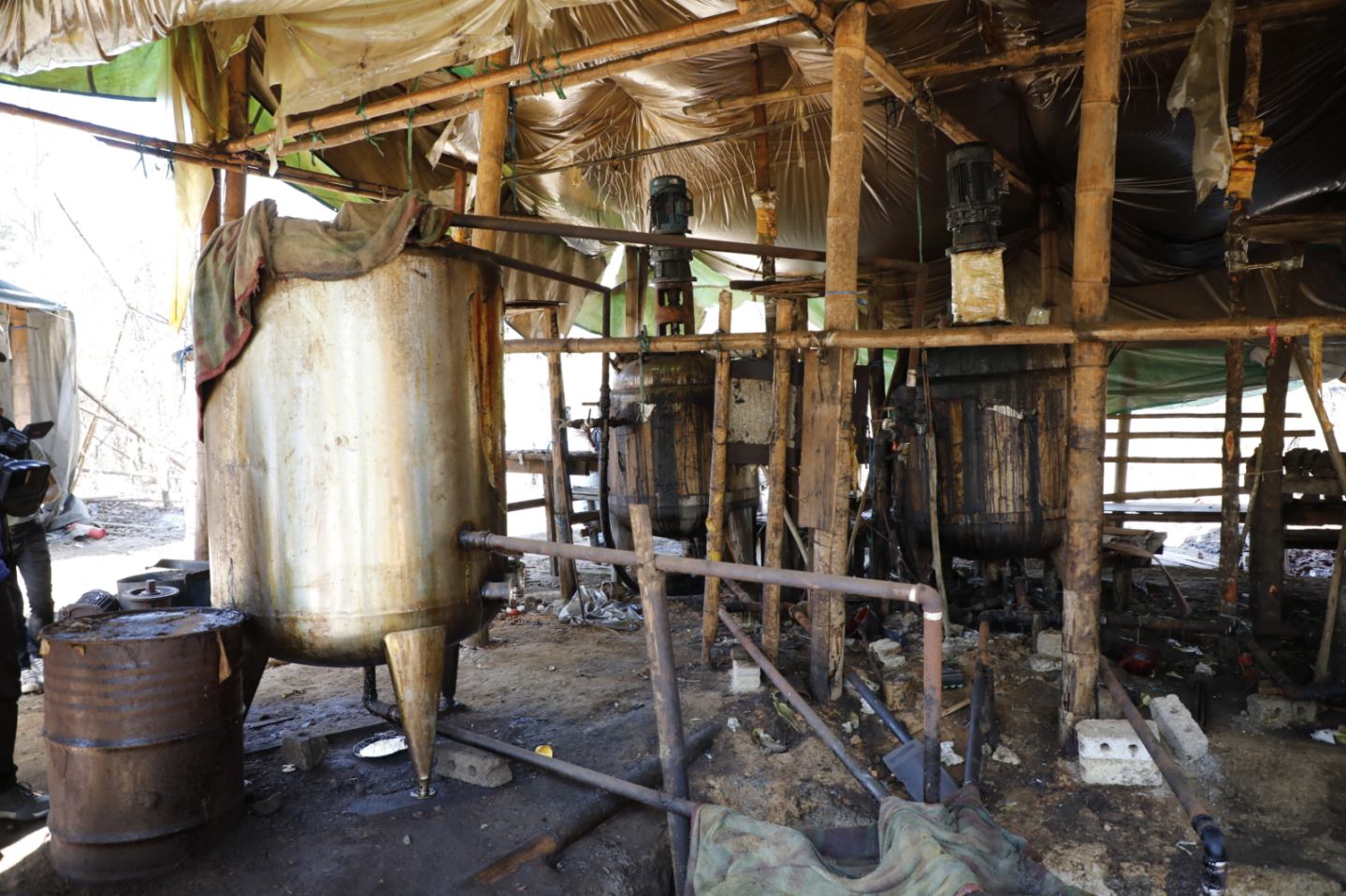 မူးယစ်ဆေးဝါးတွေကို အကြီးအကျယ် ထုတ်လုပ်နေတဲ့ နေရာအမှတ် ၄ ဖြစ်ပါတယ်။ နေရာအမှတ် ၄ မှာ နှစ်နေရာလေး ကွဲနေတာပါ။ ရောက်ခဲ့တဲ့ နေရာကတော့ အသစ်ပေါ့။ ဒါကတော့ အဟောင်းပါ။ အဟောင်းဆိုပေမယ့်လည်း ချက်လုပ်တာကတော့ ချက်လုပ်နေတဲ့ အနေအထားရှိတယ်။ နေရာ ၄ မှာ အဓိက ဒါချက်တာကတော့ Methaphetamine ဖြစ်ပါတယ်။ နေရာ ၁ ၊ ၂ ၊ ၃ မှာသည် အိုက်စ်ပေါ့။ Crystal Meth ကို အဓိက ထားပြီး ထုတ်လုပ်နေပြီးတော့ ဒီမှာဆိုရင် Packaging တွေပေါ့၊ Tablet ထုတ်လုပ်တာတွေလည်း တွေ့ပါလိမ့်မယ်။ ဒါတစ်ခုရှိပါတယ်။ ဒီမှာ သူက ထုတ်လုပ်တဲ့ နည်းစဉ်တွေက ၄ ၊ ၅ ခုလောက်ရှိတယ်။ ရှိတဲ့ အခါကျတော့ ကျွန်တော်တို့က ကိုယ်တွေက ထုတ်လုပ်သူ မဟုတ်တဲ့ အခါကျတော့ ဘယ်လိုမျိုး ပြန်ကြည့်ရသလဲဆိုရင် သူတို့ ဘာ Chemical တွေ သုံးခဲ့လဲပေါ့။ စခန်းကို သိမ်းပိုက်ရမိတဲ့ အချိန်မှာ ဘာ Chemical တွေကျန်ခဲ့လဲပေါ့၊ အဲ့ဒါကို ကြည့်ပြီးတော့မှ နောက်ကြောင်းပြန်ပြီးတော့ Tracing လိုက်တဲ့ Method ကို သုံးပြီးတော့ ကြည့်နေတဲ့သဘောပေါ့။ ထုတ်လုပ်မှု နည်းစဉ် ၄ ၊ ၅ ခုမှာ သူက ၃ ခုလောက်ကတော့ ကျိန်းသေ သုံးတဲ့ အနေအထား ရှိပါတယ်။ အဓိက Methaphetamine ကို ချက်လုပ်တဲ့နေရာမှာ Precursor လို့ခေါ်တဲ့ Methaphetamine ရအောင် အစပျိုးရတဲ့ ဓာတုပစ္စည်း ရှိပါတယ်။ P2P လို့ခေါ်တဲ့ Precursor ပေါ့။ အဲ့ဒီ P2P က တိုက်ရိုက် ရတာမဟုတ်ပါဘူး။ P2P က Pre Precursor တွေကို ပြန်ပြီးတော့ ချက်တဲ့အနေအထားပါ။ P2P ဖြစ်အောင်ချက်ပြီးတော့ နောက်ထပ် နည်းစဉ် ပေါ့ လမ်းခွဲ ၄ ခုရှိတယ်။ အဲ့ဒီ လမ်းခွဲ ၄ ခု အတိုင်း ထည့်ပြီးတော့ ချက်လိုက်ရင် ကျွန်တော်တို့ မြင်နေရတဲ့ Methaphetamine Crystal အိုက်စ် ကိုရတာပေါ့။ အဲ့ဒီမှာတွေ့တဲ့ Chemical တွေအကုန်လုံးကလည်း အများအားဖြင့် နည်းလမ်း ၃ ခုလောက်ကို အသုံးပြုတဲ့ အနေအထားလေး တွေ့ရပါတယ်။