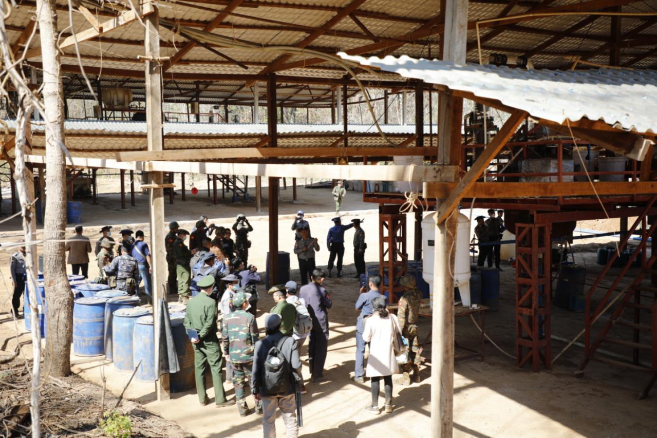 ဖော်ထုတ်ဖမ်းဆီးရမိသည့် မူးယစ်ဆေးဝါးချက်လုပ်သည့်နေရာများသို့သွားရောက်၍ မြေပြင်ကွင်းဆင်းလိုက်လံရှင်းလင်းပြသ