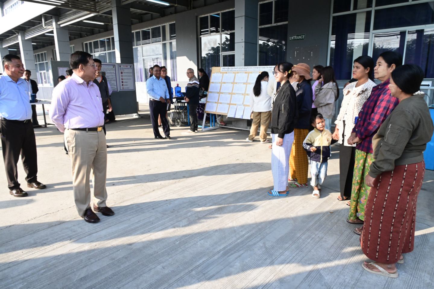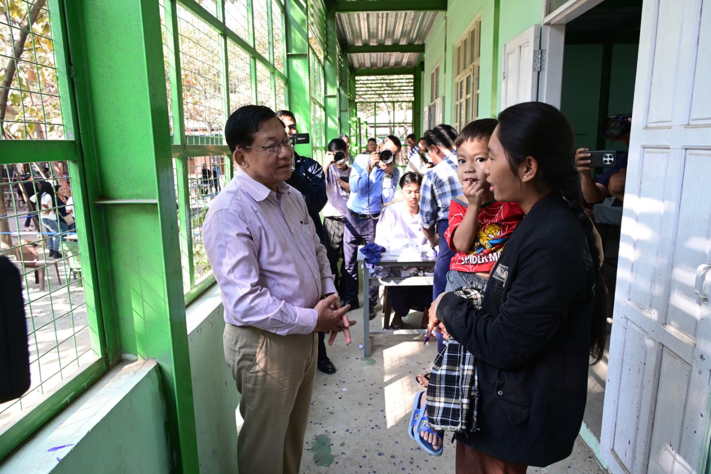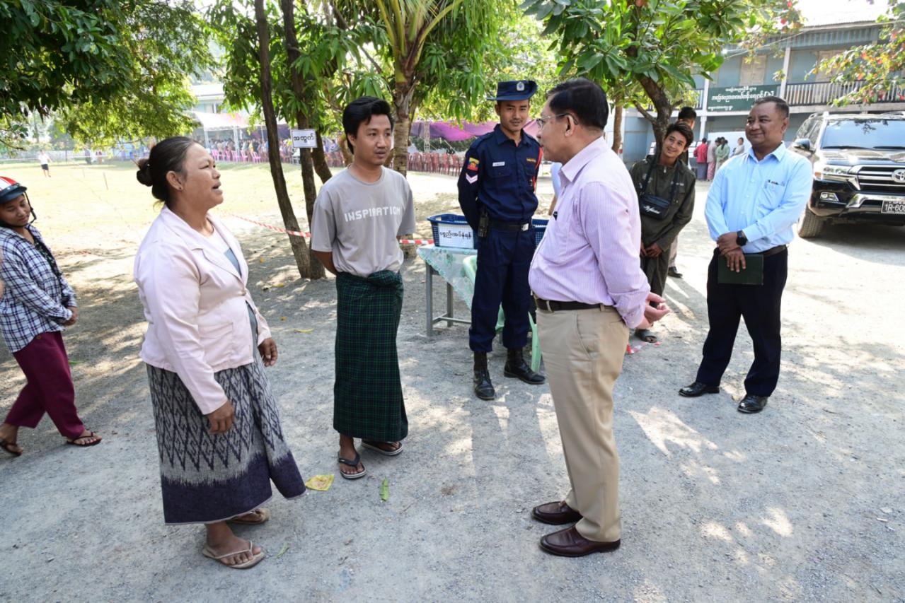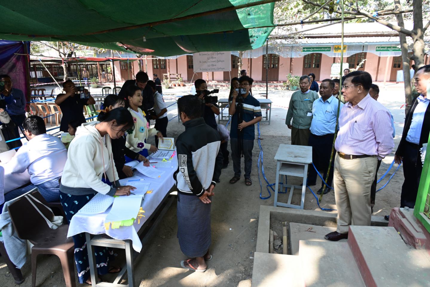 ထိုသို့ကြည့်ရှုအားပေးရာတွင် နိုင်ငံတော်ယာယီသမ္မတ နိုင်ငံတော်လုံခြုံရေးနှင့် အေးချမ်းသာယာရေး ကော်မရှင်ဥက္ကဋ္ဌသည် ချမ်းမြသာစည်မြို့နယ်၊ ပုသိမ်ကြီးမြို့နယ်တို့ အတွင်းရှိ သက်ဆိုင်ရာ မဲရုံများအလိုက်တွင် မဲရုံမှတာဝန်ရှိသူများ၏ ကွန်ပျူတာစနစ်ဖြင့် မဲစာရင်းများ တိုက် ဆိုင်စစ်ဆေးပေးလျက်ရှိမှုနှင့် မဲဆန္ဒရှင်ပြည်သူများ၏ တက်ကြွစွာပါဝင် ဆန္ဒမဲပေးနေ မှုများကို လိုက်လံကြည့်ရှုပြီး မဲဆန္ဒရှင်ပြည်သူများအား ဆန္ဒမဲပေးမှုနှင့် ပတ်သက်၍ ကြုံ တွေ့ရမှုများ၊ MEVM စက်ဖြင့် ဆန္ဒမဲပေးရာတွင် တွေ့ကြုံရမှုများ၊ မဲရုံဝန်ထမ်းများ၏ တာဝန်ထမ်းဆောင်နေမှုအခြေအနေများနှင့် ပတ်သက်၍ ရင်းရင်းနှီးနှီး မေးမြန်း ဆွေးနွေးခဲ့ပြီး မဲဆန္ဒရှင်ပြည်သူများအား နှုတ်ဆက်ခဲ့သည်။