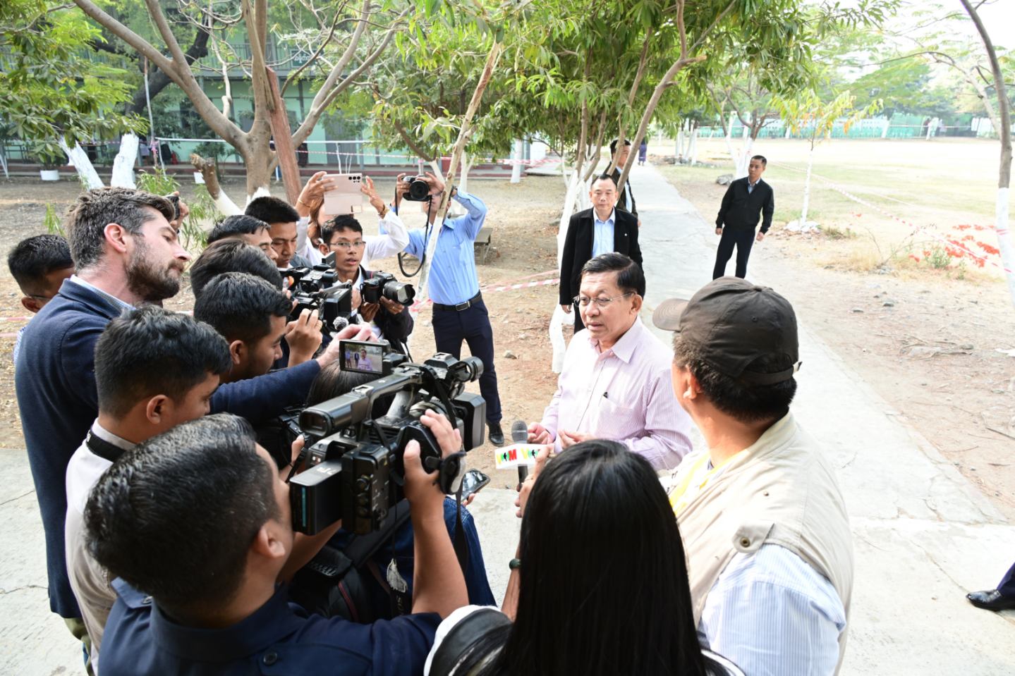 နိုင်ငံတော်ယာယီသမ္မတ နိုင်ငံတော်လုံခြုံရေးနှင့် အေးချမ်းသာယာရေး ကော်မရှင် ဥက္ကဋ္ဌ သည် မဲရုံများအလိုက် မဲဆန္ဒရှင်ပြည်သူများ၏ ဆန္ဒမဲပေးနေမှုများအား လိုက်လံ ကြည့်ရှုအားပေးစဉ် လာရောက်သတင်းရယူကြသည့် ပြည်တွင်း၊ ပြည်ပမှ သတင်းမီဒီယာ များ၏ သိရှိလိုသည့်မေးမြန်းမှုများကိုလည်း လက်ခံဖြေကြားခဲ့သည်။