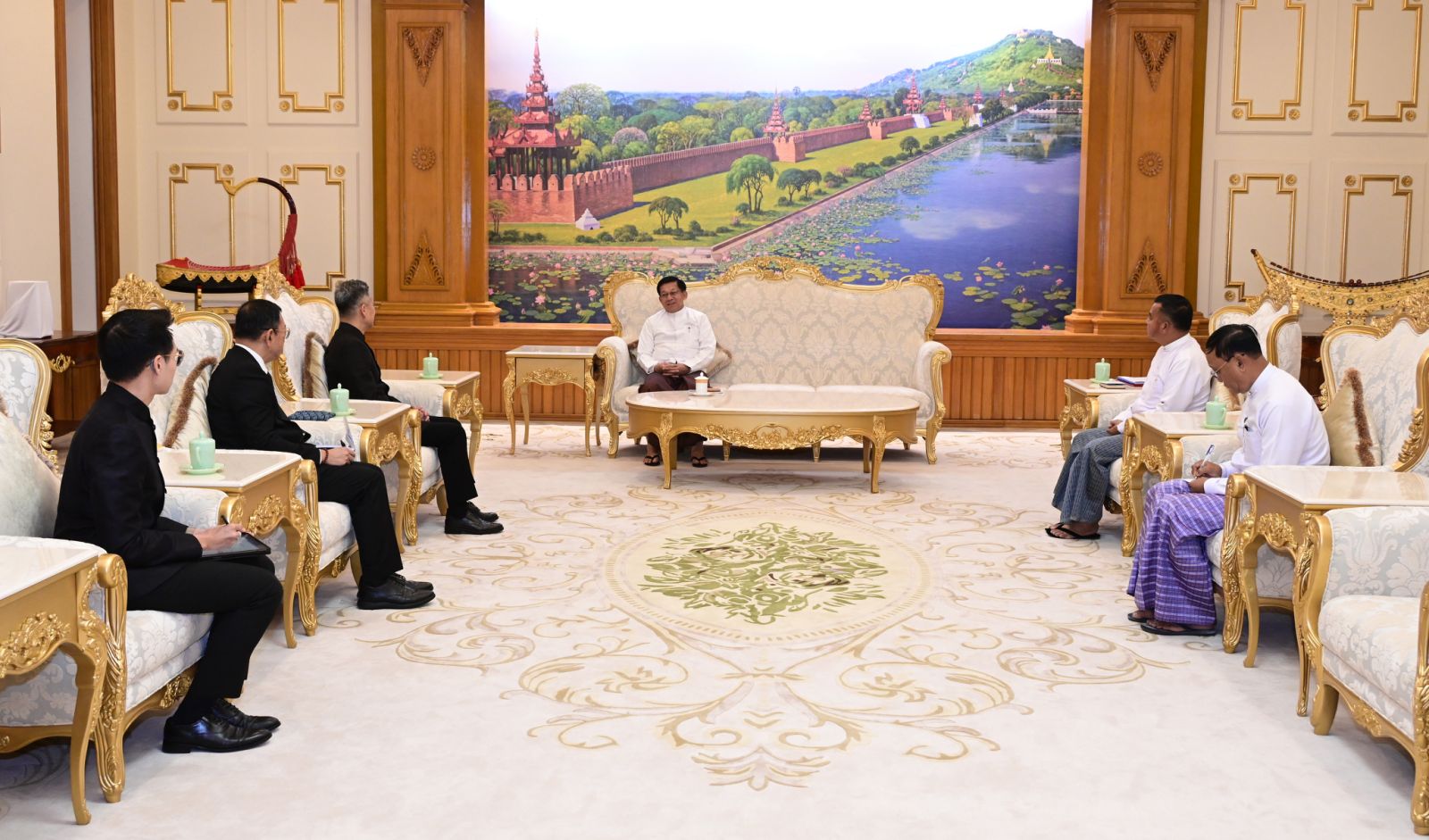ပြည်ထောင်စုသမ္မတမြန်မာနိုင်ငံတော် ယာယီသမ္မတ နိုင်ငံတော်လုံခြုံရေးနှင့် အေးချမ်းသာယာရေးကော်မရှင်ဥက္ကဋ္ဌ ဗိုလ်ချုပ်မှူးကြီး မင်းအောင်လှိုင် မြန်မာနိုင်ငံဆိုင်ရာ ထိုင်းနိုင်ငံသံအမတ်ကြီးအား လက်ခံတွေ့ဆုံ