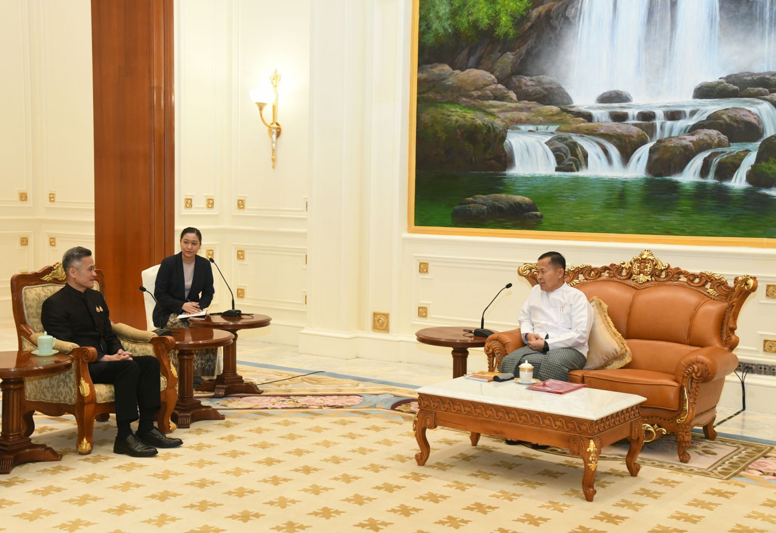 နိုင်ငံတော်လုံခြုံရေးနှင့်အေးချမ်းသာယာရေးကော်မရှင်ဒုတိယဥက္ကဋ္ဌ ဒုတိယဗိုလ်ချုပ်မှူးကြီး စိုးဝင်း ပြည်ထောင်စုသမ္မတမြန်မာနိုင်ငံဆိုင်ရာ ထိုင်းနိုင်ငံသံအမတ်ကြီး H.E. Mr. Mongkol Visitstump အား လက်ခံတွေ့ဆုံ
