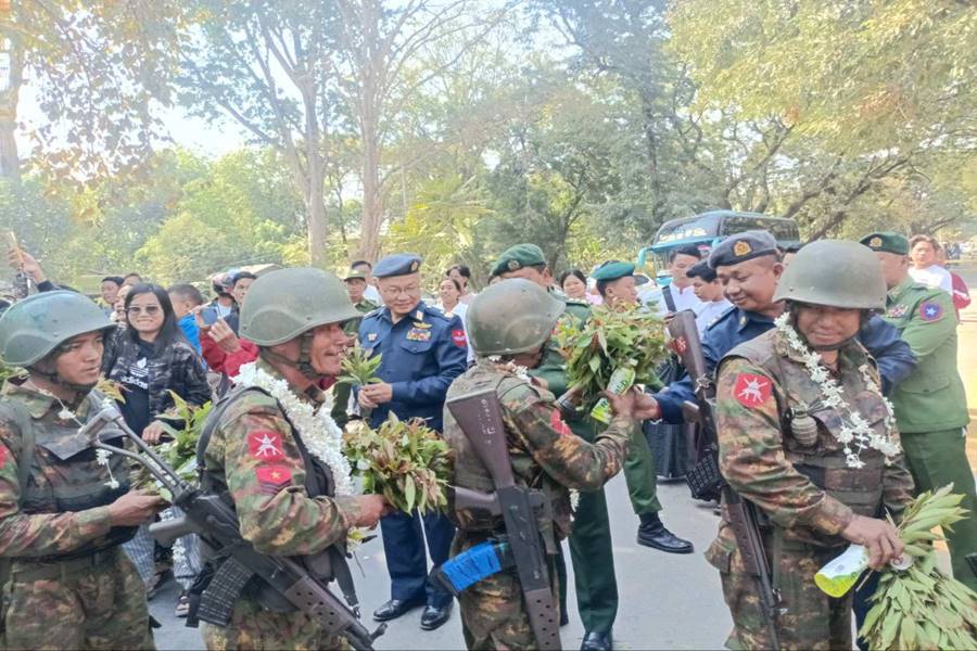 တိုင်းဒေသကြီးနှင့်ပြည်နယ်အသီးသီးရှိ တိုင်းရင်းသားပြည်သူများ စိတ်အေး ချမ်းသာစွာ နေထိုင်လုပ်ကိုင်စားသောက်နိုင်ရေးနှင့် အသက်အိုးအိမ်စည်းစိမ်ဥစ္စာ လုံခြုံမှုရှိစေရေး၊ နိုင်ငံတော်တည်ငြိမ်ရေး၊ နယ်မြေအေးချမ်းရေးအတွက် ရှေ့တန်း စစ်မျက်နှာများတွင် စစ်ဆင်ရေးတာဝန်များကို မိဝေးဖဝေး၊ မိသားစုများနှင့် ဝေးကွာ၍ နေ့မအား ညမနား စွမ်းစွမ်းတမံ တာဝန်ထမ်းဆောင်ခဲ့ပြီး ရွပ်ရွပ်ချွံချွံတိုက်ပွဲဝင်၍ အောင်ပွဲအလီလီရယူနိုင်ခဲ့သော အောင်ပွဲရရှေ့တန်းပြန် တပ်မတော်သားများအား ဒုတိယတိုင်းမှူးနှင့် တာဝန်ရှိသူများ၊ တိုင်းဒေသကြီးအစိုးရအဖွဲ့ဝင် ဝန်ကြီးများ၊ ဌာနဆိုင်ရာတာဝန်ရှိသူများ၊ ဆရာ/ဆရာမများ၊ ကျောင်းသား/ကျောင်းသူများနှင့် ဒေသခံပြည်သူများက အောင်သပြေပန်းများ၊ ပန်းစည်းများ၊ပန်းကုံးများ၊ အချိုရည်များ၊ အိုးစည်ဒိုးပတ်များဖြင့် ဝမ်းမြောက်စွာ သောင်းသောင်းဖြဖြ ကြိုဆိုဂုဏ်ပြုခဲ့ကြပြီး ဒုတိယတိုင်းမှူးက အောင်ပွဲရ ရှေ့တန်းပြန်တပ်မတော်သားများအား ဂုဏ်ပြုအားပေး စကားပြောကြားကာ ဂုဏ်ပြုချီးမြှင့်ငွေများ ပေးအပ်ခဲ့ကြောင်း သတင်းရရှိသည်။