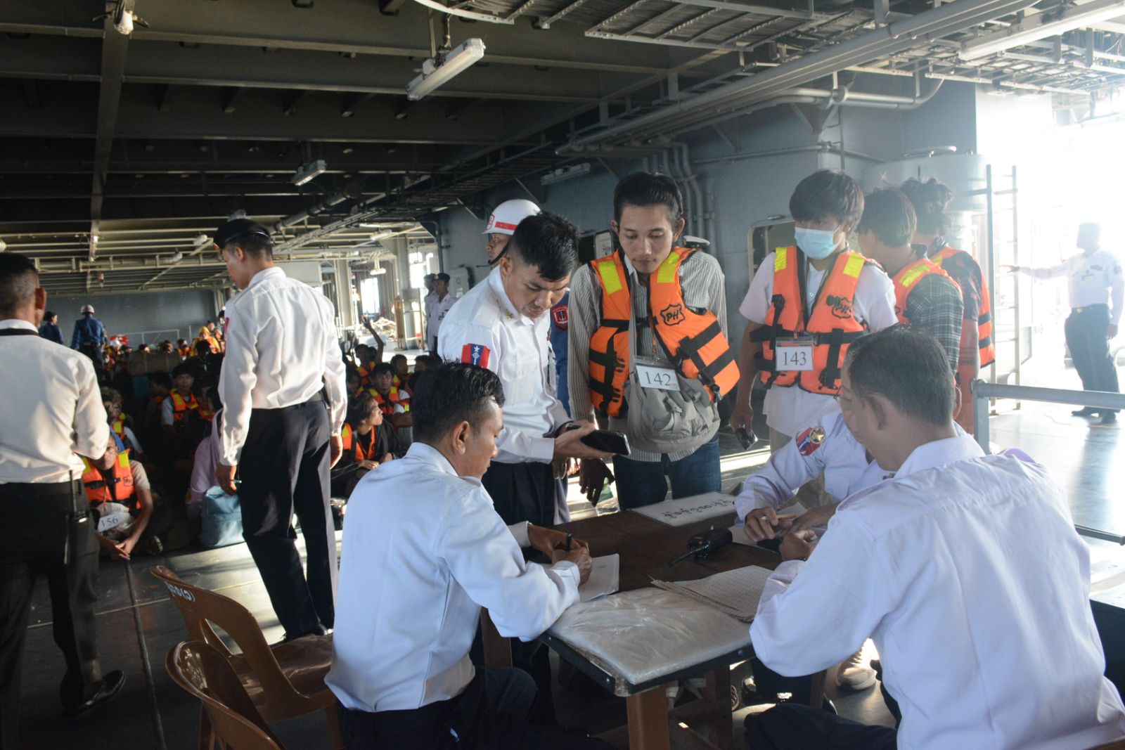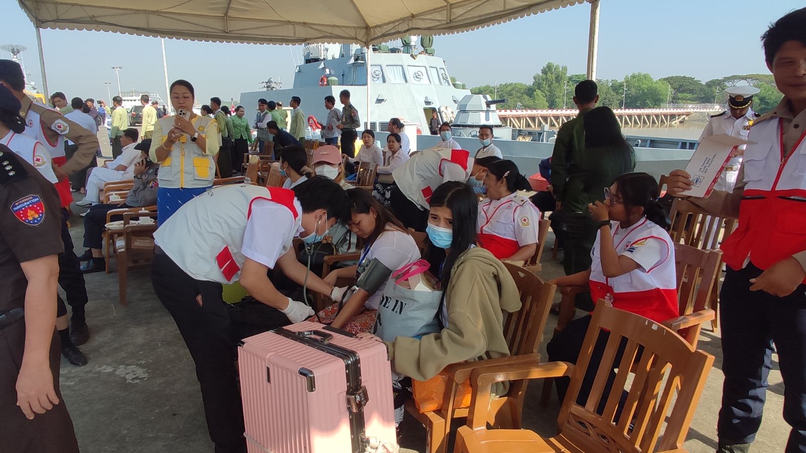 အဆိုပါ စစ်ရေယာဉ်(မုတ္တမ)သည် ဇန်နဝါရီ ၂၇ ရက် ညပိုင်းတွင် စတင်ထွက်ခွာခဲ့ ပြီး ကမ္ဘောဒီးယားနိုင်ငံမှ ပြန်လည်ခေါ်ဆောင်ပေးခဲ့သည့် မြန်မာနိုင်ငံသားများအား စစ်ရေယာဉ်ပေါ်တွင် တစ်ကိုယ်ရည်သုံးပစ္စည်းများ ထောက်ပံ့ပေးအပ်ခြင်း၊ ကျန်းမာရေး စောင့်ရှောက်မှုများ ဆောင်ရွက်ပေးခြင်း၊ စားသောက်နေထိုင်မှုများအဆင်ပြေစေရေး အတွက်ဆောင်ရွက်ပေးခြင်းတို့ကို တာဝန်ရှိသူများက ဆောင်ရွက်ပေးခဲ့သည်။ စစ်ရေ ယာဉ်(မုတ္တမ)သည် ယနေ့နံနက်ပိုင်းတွင် ရန်ကုန်တိုင်းဒေသကြီး၊ ရန်ကုန်မြို့ရှိ အမှတ် (၃)ဆိပ်ခံတံတားသို့ရောက်ရှိကြပြီး သန်လျင်ခရိုင် စီမံခန့်ခွဲရေးနှင့်အုပ်ချုပ်ရေး ကော်မတီ ဥက္ကဌနှင့် အဖွဲ့ဝင်များမှ ကြီးကြပ်၍ လူဝင်မှုကြီးကြပ်ရေးနှင့်ပြည်သူ့အင်အားဝန်ကြီးဌာန သန်လျင်ခရိုင်ရုံးမှ တာဝန်ရှိသူများက လူဦးရေတိုက်ဆိုင်စစ်ဆေးခြင်း၊ သန်လျင်ခရိုင် ကျန်မာရေးဦးစီးဌာနမှ တာဝန်ရှိသူများက ကျန်းမာရေးမကောင်းသူများအား ကျန်းမာရေး စောင့်ရှောက်မှုများ ဆောင်ရွက်ပေးခြင်း၊ ခရိုင်အတွင်းရှိဌာနဆိုင်ရာများက စားသောက် ဖွယ်ရာများအား တစ်ဦးချင်းပေးအပ်သည်။