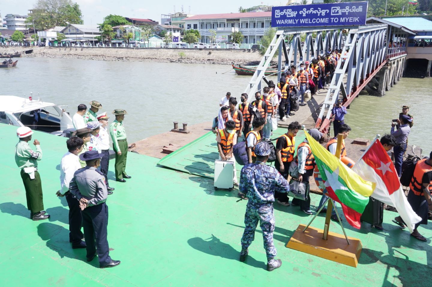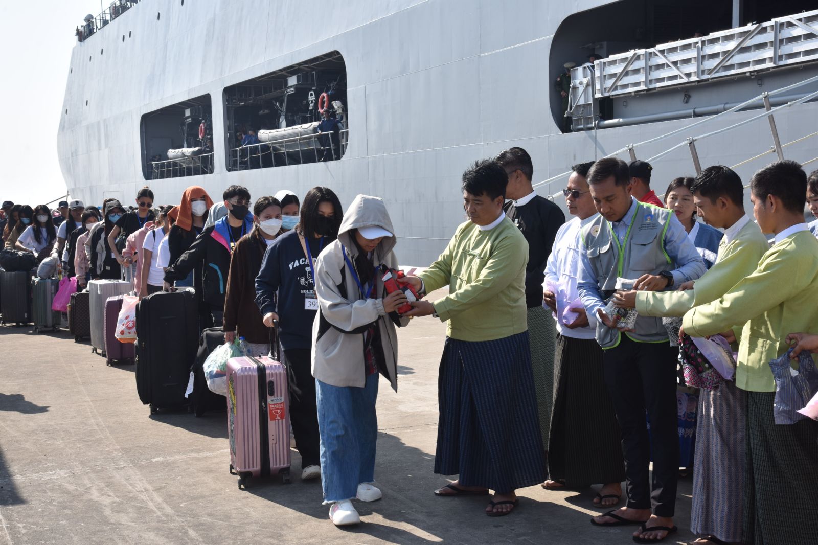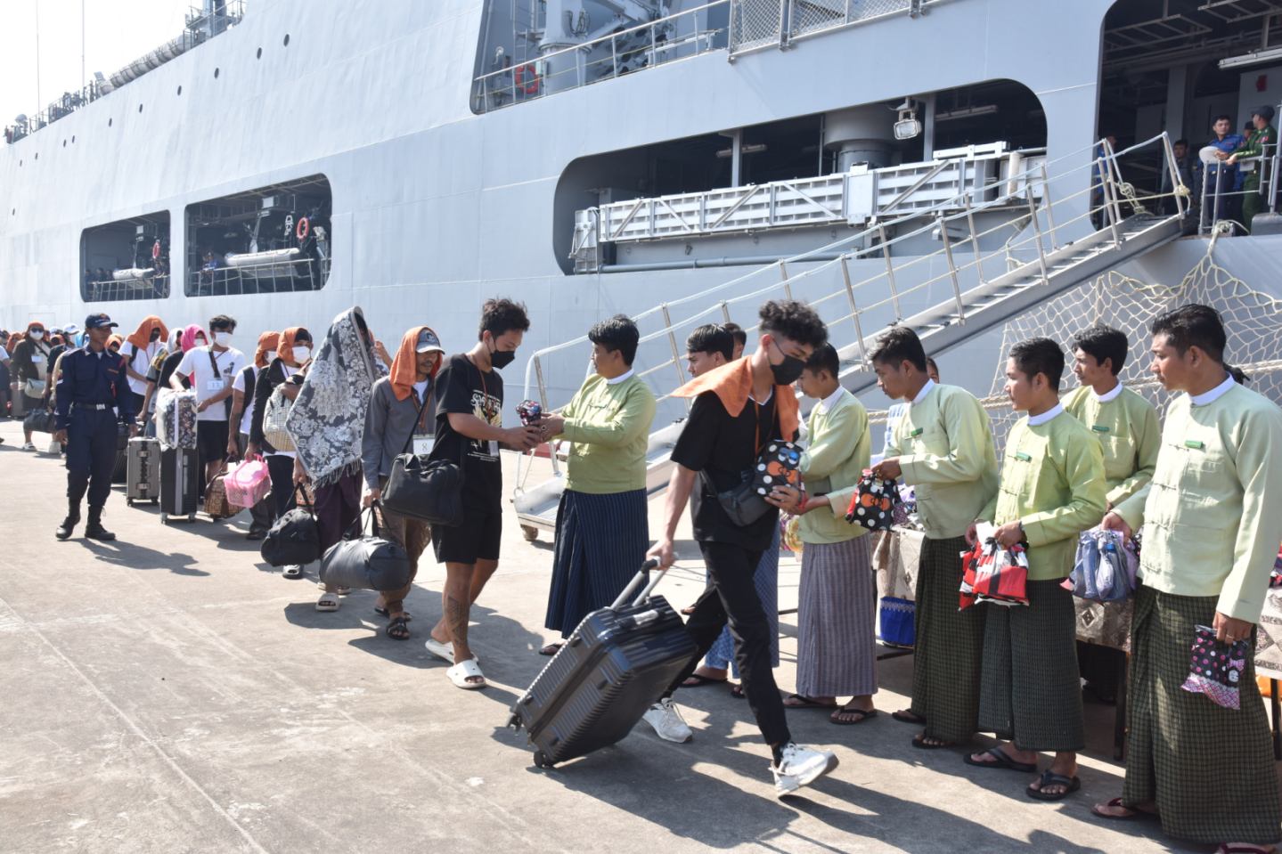 ကမ္ဘောဒီးယားနိုင်ငံမှ ပြန်လည်ခေါ်ဆောင်ခဲ့သည့် အွန်လိုင်းလိမ်လည်လောင်းကစားမှုများတွင် အကြောင်းအမျိုးမျိုးကြောင့် ပါဝင်ပတ်သက်သူ မြန်မာနိုင်ငံသားများအား စစ်ရေယာဉ် (မုတ္တမ)ဖြင့် မြိတ်မြို့မှ ရန်ကုန်မြို့သို့ပို့ဆောင်