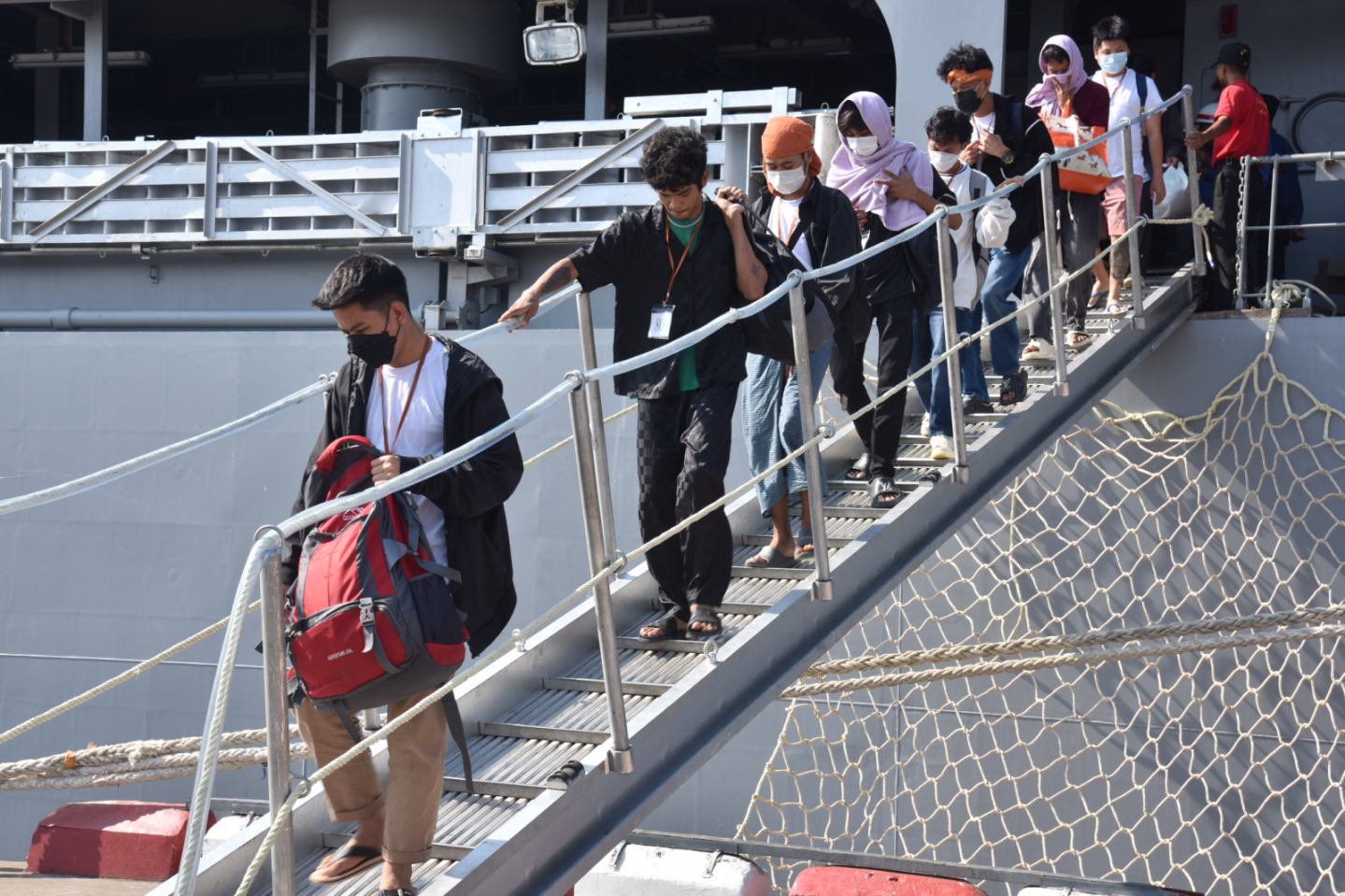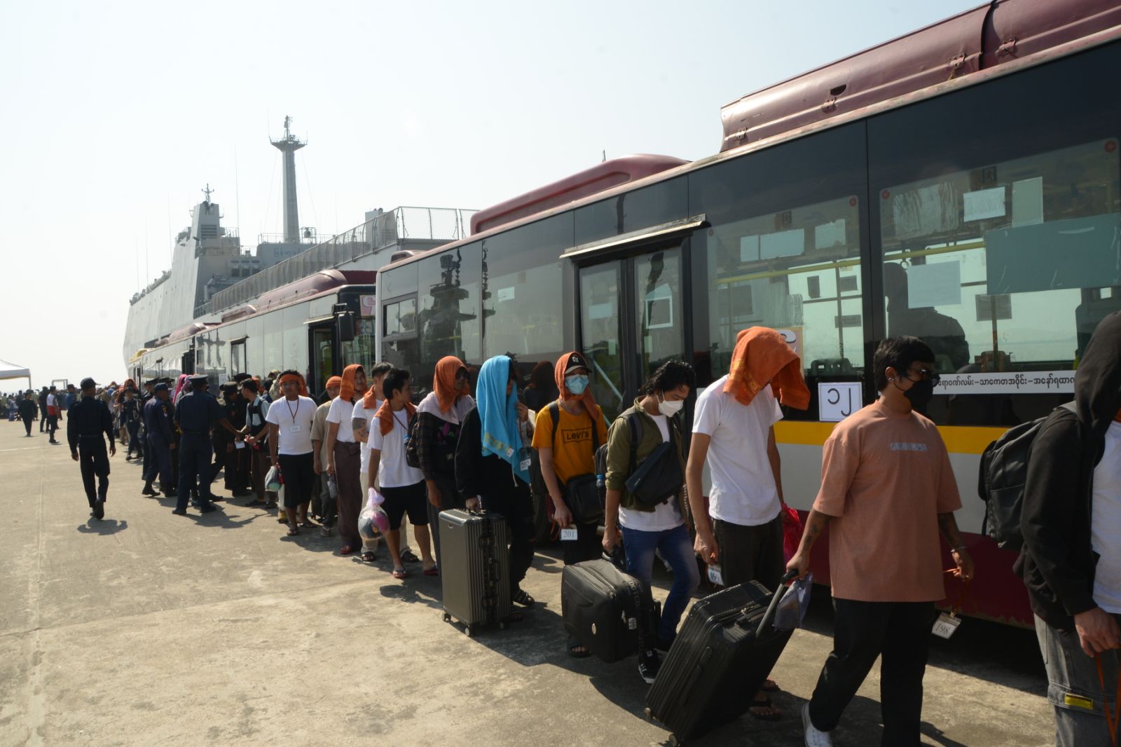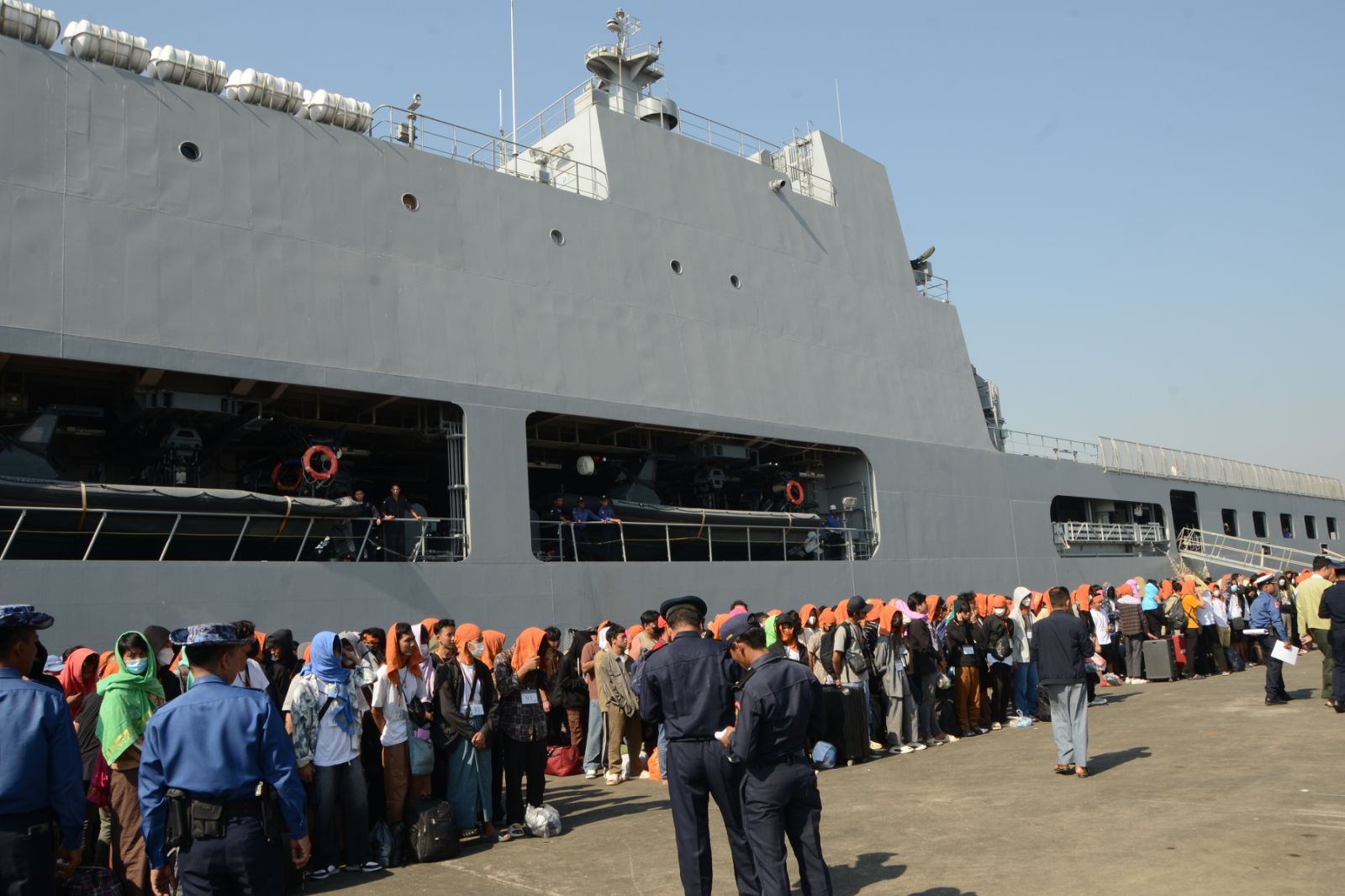 ကမ္ဘောဒီးယားနိုင်ငံမှ ပြန်လည်ခေါ်ဆောင်ခဲ့သည့် အွန်လိုင်းလိမ်လည်လောင်းကစားမှုများတွင် အကြောင်းအမျိုးမျိုးကြောင့် ပါဝင်ပတ်သက်သူ မြန်မာနိုင်ငံသားများအား စစ်ရေယာဉ် (မုတ္တမ)ဖြင့် မြိတ်မြို့မှ ရန်ကုန်မြို့သို့ပို့ဆောင်
