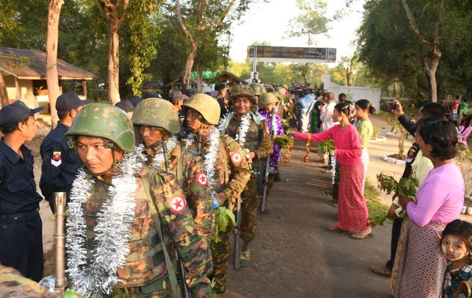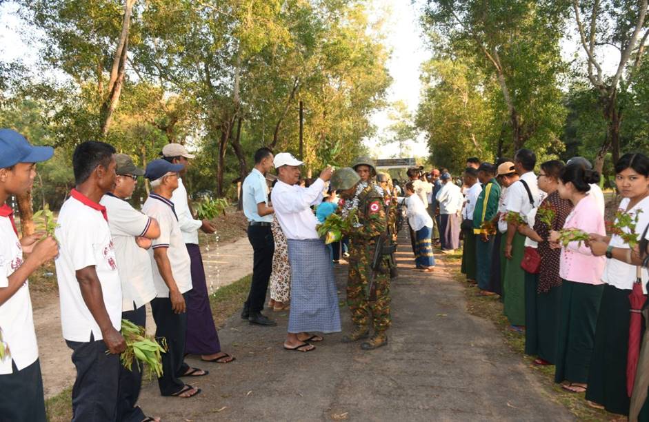 တိုင်းဒေသကြီးနှင့်ပြည်နယ်အသီးသီးရှိ တိုင်းရင်းသားပြည်သူများ စိတ်အေး ချမ်းသာစွာ နေထိုင်လုပ်ကိုင်စားသောက်နိုင်ရေးနှင့် အသက်အိုးအိမ်စည်းစိမ်ဥစ္စာ လုံခြုံမှုရှိစေရေး၊ နိုင်ငံတော်တည်ငြိမ်ရေး၊ နယ်မြေအေးချမ်းရေးအတွက် ရှေ့တန်း စစ်မျက်နှာများတွင် စစ်ဆင်ရေးတာဝန်များကို မိဝေးဖဝေး၊ မိသားစုများနှင့် ဝေးကွာ၍ နေ့မအား ညမနား စွမ်းစွမ်းတမံ တာဝန်ထမ်းဆောင်ခဲ့ပြီး ရွပ်ရွပ်ချွံချွံတိုက်ပွဲဝင်၍ အောင်ပွဲအလီလီရယူနိုင်ခဲ့သော အောင်ပွဲရရှေ့တန်းပြန် တပ်မတော်သားများအား တိုင်းမှူးနှင့် တာဝန်ရှိသူများ၊ ဒေသခံပြည်သူများ၊ ကျောင်းသား/ကျောင်းသူများက အောင်သပြေခက်များဖြင့်လည်းကောင်း၊ ဘင်ခရာ၊ အတီး၊ အမှုတ်၊ အကအလှများဖြင့် လည်းကောင်း ဝမ်းမြောက်စွာ သောင်းသောင်းဖြဖြ ကြိုဆိုဂုဏ်ပြုခဲ့ကြပြီး တိုင်းမှူးက အောင်ပွဲရ ရှေ့တန်းပြန်တပ်မတော်သားများအား ဂုဏ်ပြုချီးမြှင့်ငွေများ ပေးအပ်ခဲ့ ကြောင်း သတင်းရရှိသည်။