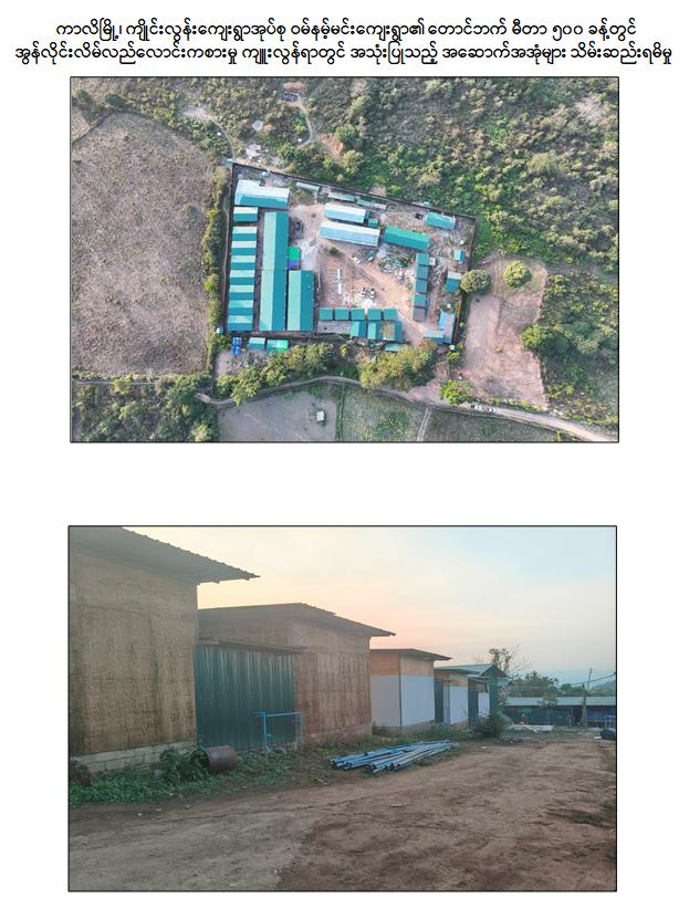 ထိုသို့ အွန်လိုင်းလိမ်လည်လောင်းကစားမှု တိုက်ဖျက်ရေးလုပ်ငန်းစဉ်များကို တိုင်းဒေသကြီး/ပြည်နယ်များတွင် လုံခြုံရေးတပ်ဖွဲ့ဝင်များပါဝင်သော ပူးပေါင်းအဖွဲ့များက ဆောင်ရွက်လျက်ရှိရာ ရှမ်းပြည်နယ်(တောင်ပိုင်း)အတွင်း နယ်မြေလုံခြုံရေး ဆောင်ရွက် နေသော လုံခြုံရေးတပ်ဖွဲ့ဝင်များသည် ကွန်ဟိန်းမြို့နယ်၊ ကာလိမြို့၊ ကျိုင်းလွန်းကျေးရွာ အုပ်စု၊ ဝမ်နမ့်မင်းကျေးရွာအနီး၌ အွန်လိုင်းလိမ်လည်လောင်းကစားမှု လုပ်ငန်းများ အခြေပြုလုပ်ကိုင်လျက်ရှိကြောင်း ဒေသခံတာဝန်သိ ပြည်သူများ၏ သတင်းပေးပို့မှုအရ လိုအပ်သည့် လေကြောင်းကင်းထောက်ခြင်း၊ မြေပြင်သတင်းစုံစမ်းဖော်ထုတ်ခြင်းနှင့် နယ်မြေ ရှင်းလင်း ခြင်းတို့ကို ဆက်လက်ဆောင်ရွက်လျက်ခဲ့ရာ ဇန်နဝါရီ ၂၉ ရက် ညနေ ၅ နာရီခွဲခန့်တွင် အဆိုပါဝမ်နမ့်မင်းကျေးရွာ၏ တောင်ဘက် မီတာ ၅၀၀ ခန့်အကွာသို့ အရောက်၌ မသင်္ကာဖွယ်ရာ အဆောက်အအုံများကို တွေ့ရှိရသဖြင့် ဝင်ရောက်ရှာဖွေ စစ်ဆေးခဲ့ရာ အွန်လိုင်းငွေကြေးလိမ်လည်မှုနှင့် လောင်းကစားမှုများ လုပ်ဆောင်နေသည့် နေရာဖြစ်ကြောင်း တွေ့ရှိရပြီး လုပ်ငန်းလုပ်ကိုင် နေကြသူများအား မတွေ့ရှိရဘဲ အလျား ၁၀၀ ပေ၊ အနံ ၃၀ ပေရှိ သွပ်မိုး၊ မိုးကာစကာ အလုပ်ရုံ ၃ လုံး၊ အလျား ၁၅ ပေ၊ အနံ ၁၅ ပေ ရှိ သွပ်မိုး၊ အထက်သားကာ လူနေလုံးချင်း ၉ လုံး၊ အလျား ၄၀ ပေ၊ အနံ ၂၀ ပေရှိ သွပ်မိုး ထမင်းစားဆောင် ၁ လုံး၊ အလျား ၈၀ ပေ၊ အနံ ၂၀ ပေ ရှိ သွပ်မိုး၊ သွပ်ကာ ရိက္ခာဂိုဒေါင် ၁ လုံး၊ အလျား ၁၅ ပေ၊ အနံ ၁၅ ပေ ရှိ သွပ်မိုး၊ အထပ်သားကာ လူနေလုံးချင်း ၁၄ လုံး၊ အလျား ၂၀ ပေ၊ အနံ ၁၀ ပေ ရှိ သွပ်မိုး မီးစက်တဲ ၁ လုံး၊ အလျား ၅ ပေ၊ အနံ ၅ ပေရှိ ကင်းစောင့်တဲ ၃ လုံး၊ အလျား ၆၀ ပေ၊ အနံ ၂၀ ပေ ရှိ သွပ်မိုး၊ သွပ်ကာ လူနေ ၂ ထပ်ဆောင် ၂ လုံး၊ အလျား ၁၂ ပေ၊ အနံ ၁၀ ပေ ရှိ သွပ်မိုး၊ မိုးကာစကာ လူနေအိပ်ဆောင် ၃ လုံးနှင့် မီးစက်ကြီး ၂ လုံးတို့ကို တွေ့ရှိသိမ်းဆည်းရမိခဲ့သည်။