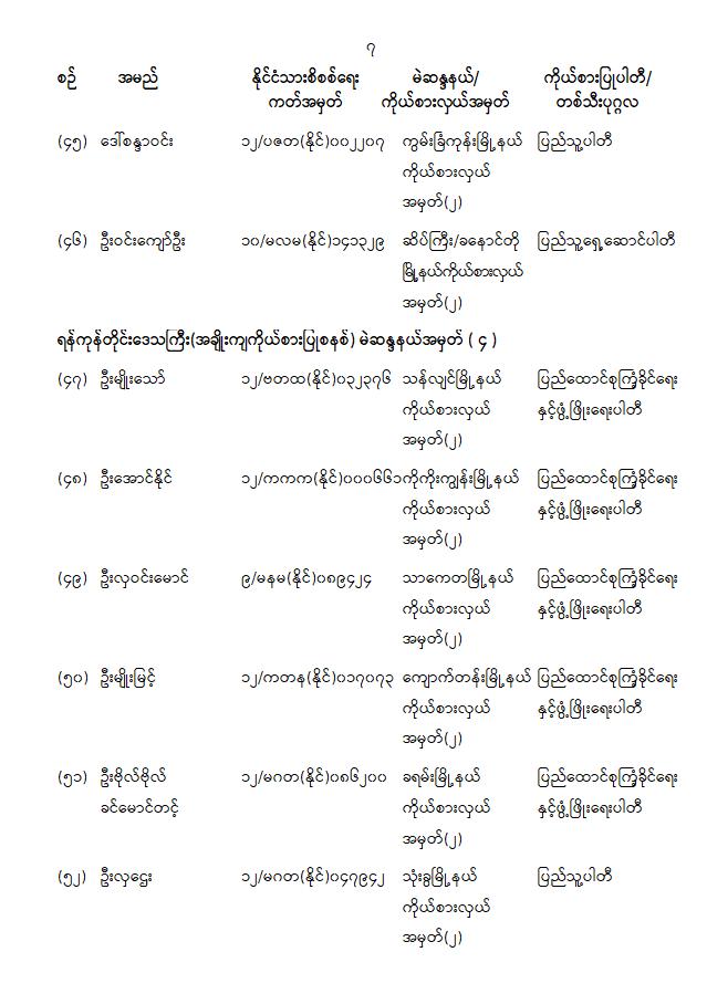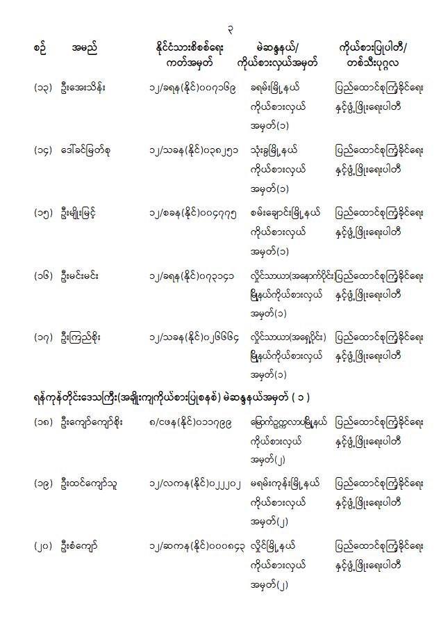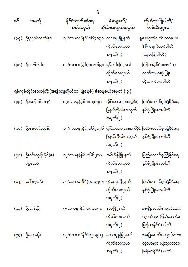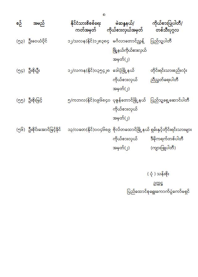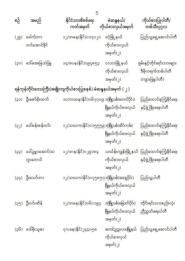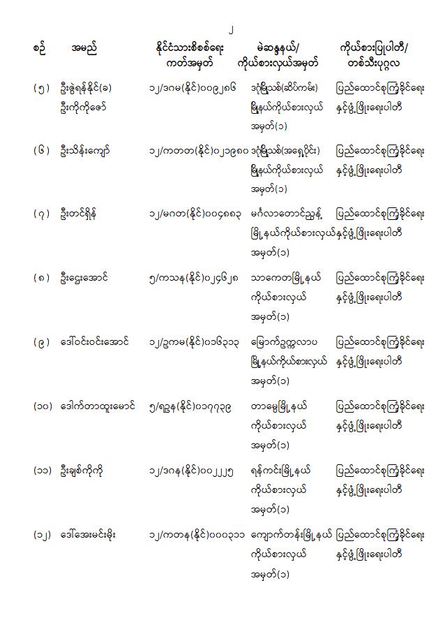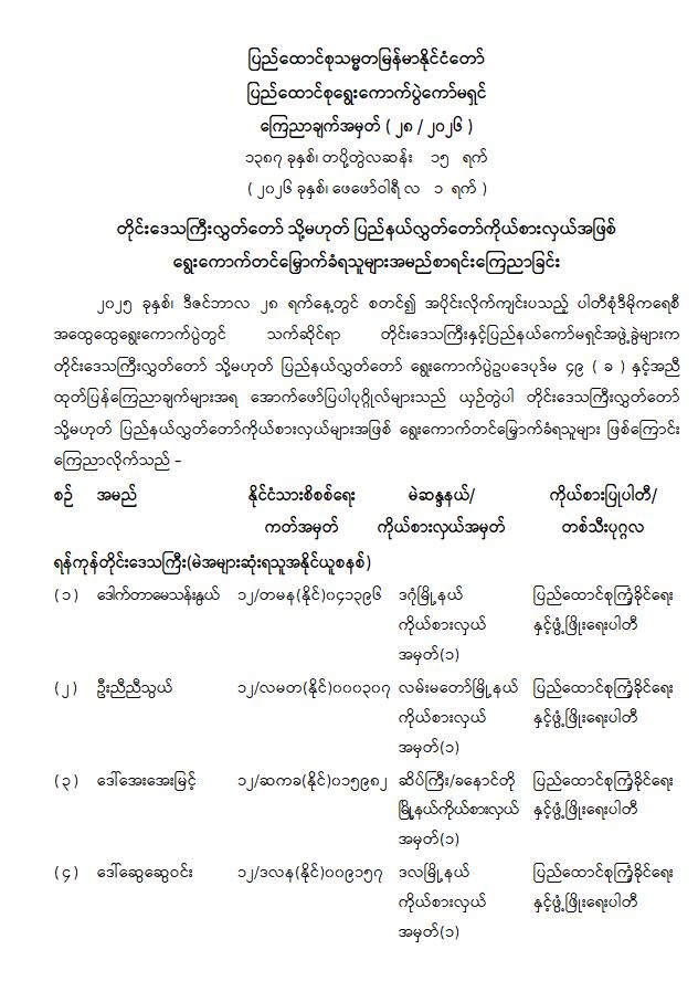 ကြေညာချက်အမှတ် ( ၂၈ / ၂၀၂၆ ) ၁၃၈၇ ခုနှစ်၊ တပို့တွဲလဆန်း ၁၅ ရက် ( ၂၀၂၆ ခုနှစ်၊ ဖေဖော်ဝါရီ လ ၁ ရက် ) တိုင်းဒေသကြီးလွှတ်တော် သို့မဟုတ် ပြည်နယ်လွှတ်တော်ကိုယ်စားလှယ်အဖြစ် ရွေးကောက်တင်မြှောက်ခံရသူများအမည်စာရင်းကြေညာခြင်း