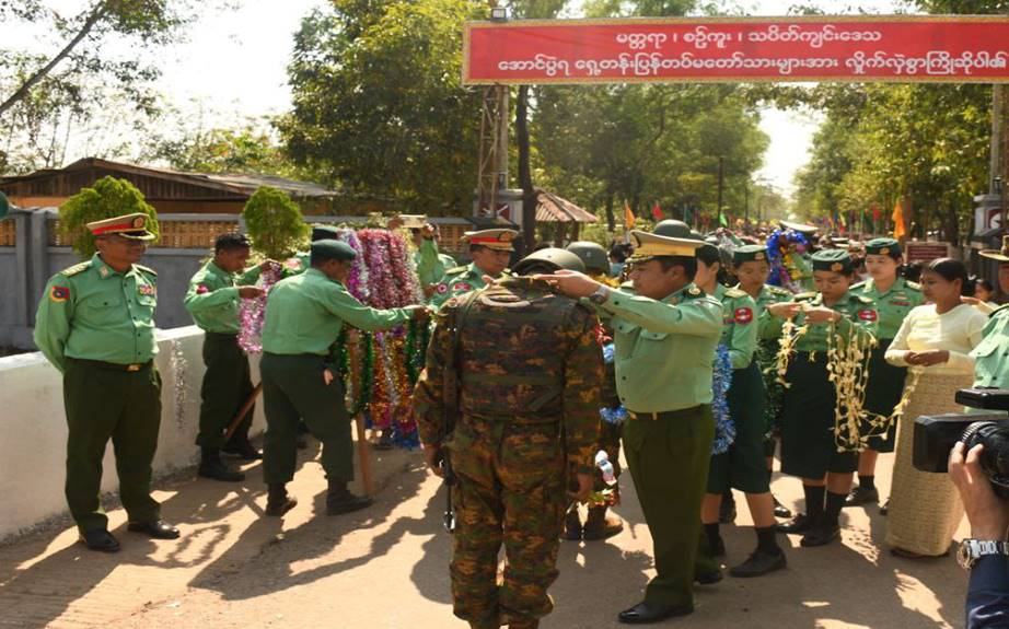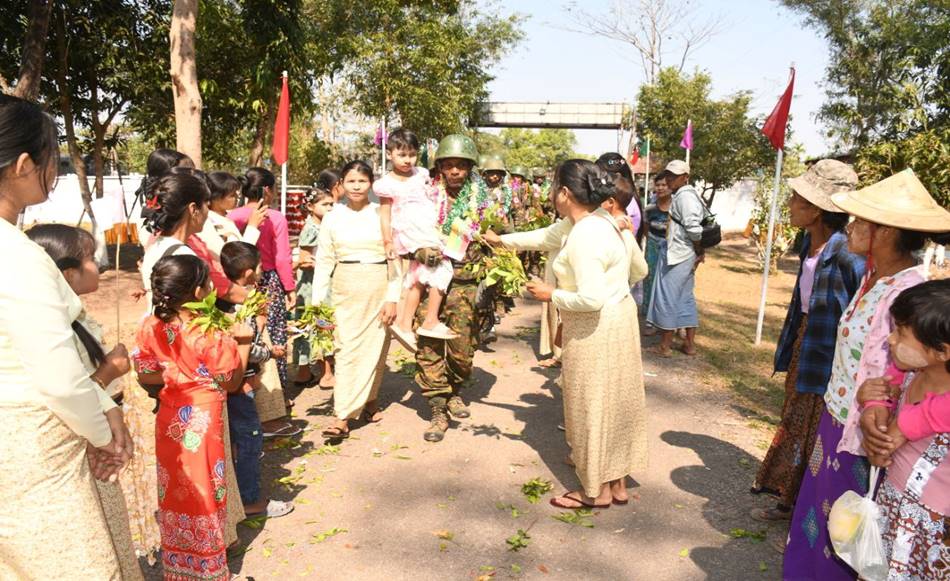 တိုင်းဒေသကြီးနှင့်ပြည်နယ်အသီးသီးရှိ တိုင်းရင်းသားပြည်သူများ စိတ်အေး ချမ်းသာစွာ နေထိုင်လုပ်ကိုင်စားသောက်နိုင်ရေးနှင့် အသက်အိုးအိမ်စည်းစိမ်ဥစ္စာ လုံခြုံမှုရှိစေရေး၊ နိုင်ငံတော်တည်ငြိမ်ရေး၊ နယ်မြေအေးချမ်းရေးအတွက် ရှေ့တန်း စစ်မျက်နှာများတွင် စစ်ဆင်ရေးတာဝန်များကို မိဝေးဖဝေး၊ မိသားစုများနှင့် ဝေးကွာ၍ နေ့မအား ညမနား စွမ်းစွမ်းတမံ တာဝန်ထမ်းဆောင်ခဲ့ပြီး ရွပ်ရွပ်ချွံချွံတိုက်ပွဲဝင်၍ အောင်ပွဲအလီလီရယူနိုင်ခဲ့သော အောင်ပွဲရရှေ့တန်းပြန် တပ်မတော်သားများအား တိုင်းမှူးနှင့် တာဝန်ရှိသူများ၊ ဒေသခံပြည်သူများ၊ ကျောင်းသား/ကျောင်းသူများက အောင်သပြေခက်များဖြင့်လည်းကောင်း၊ ဘင်ခရာနှင့်ပန်းပွားအကများ၊ အိုးစည်ဒိုးပတ် အတီး၊ အမှုတ်၊ အက၊ အခုန်များဖြင့်လည်းကောင်း ဝမ်းမြောက်စွာ သောင်းသောင်းဖြဖြ ကြိုဆိုဂုဏ်ပြုခဲ့ကြပြီး တိုင်းမှူးက အောင်ပွဲရ ရှေ့တန်းပြန်တပ်မတော်သားများအား ဂုဏ်ပြုချီးမြှင့်ငွေများ ပေးအပ်ခဲ့ကြောင်း သတင်းရရှိသည်။