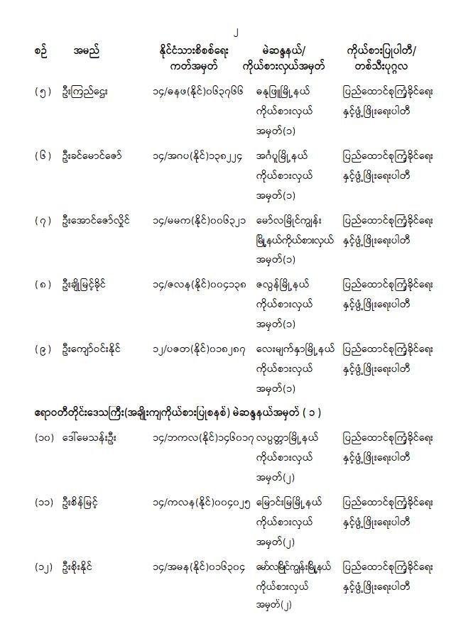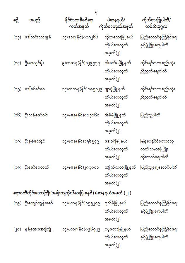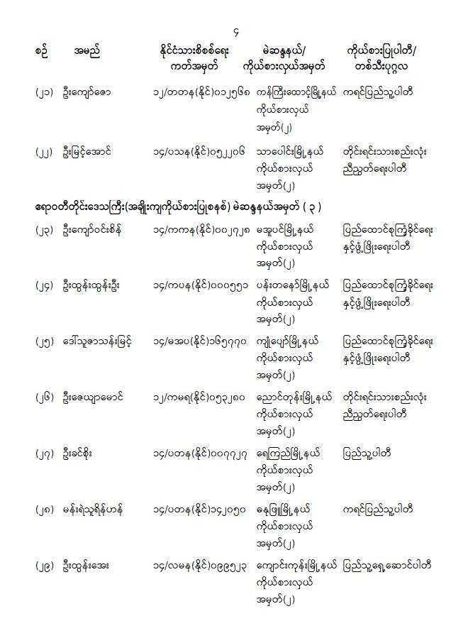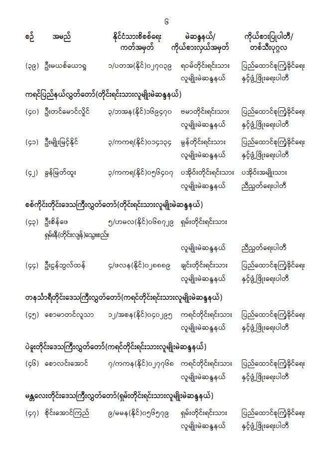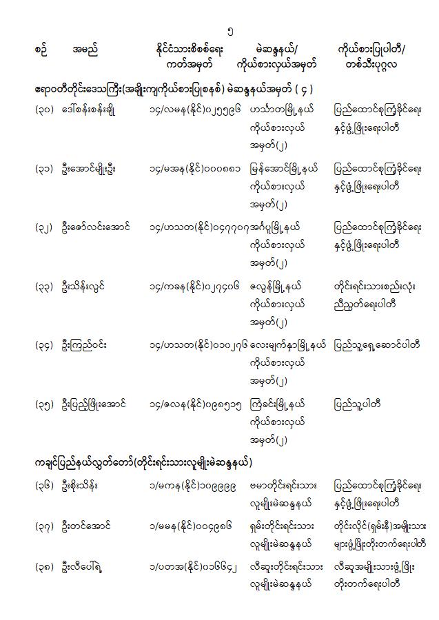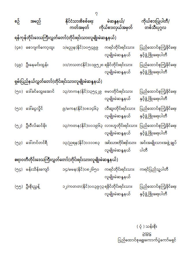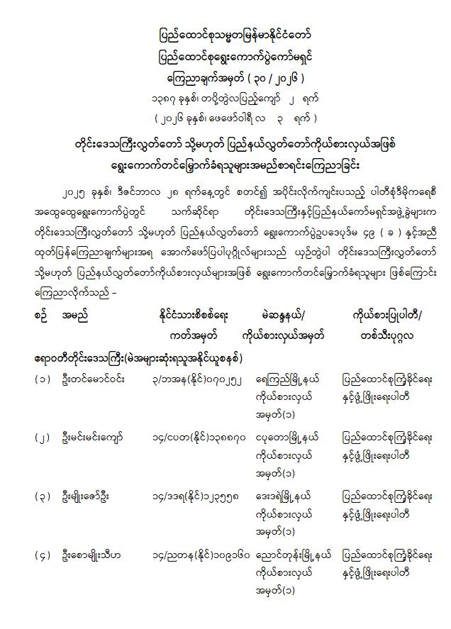 တိုင်းဒေသကြီးလွှတ်တော် သို့မဟုတ် ပြည်နယ်လွှတ်တော်ကိုယ်စားလှယ်အဖြစ် ရွေးကောက်တင်မြှောက်ခံရသူများအမည်စာရင်းကြေညာခြင်း