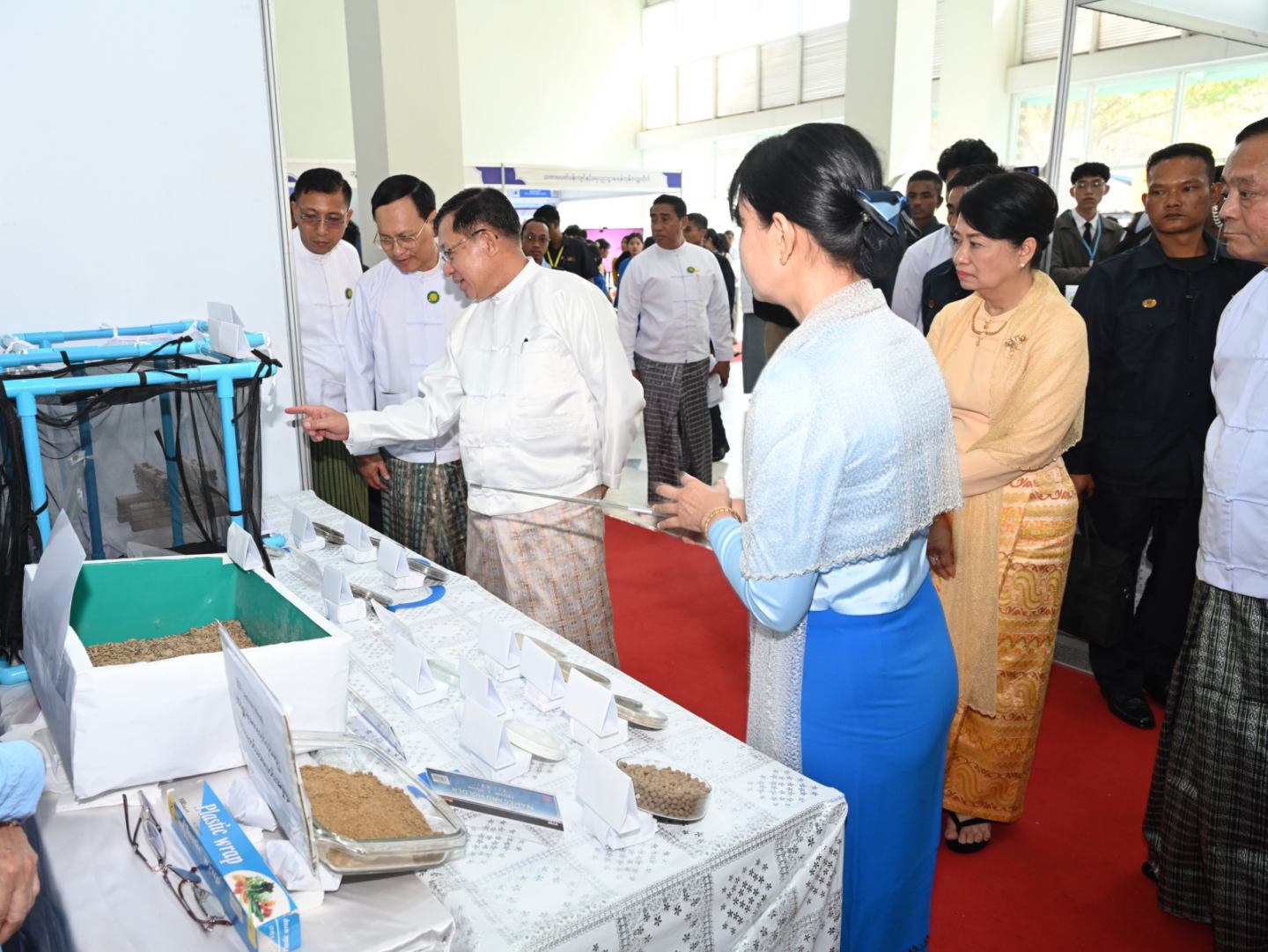 အခမ်းအနားအပြီးတွင် နိုင်ငံတော်ယာယီသမ္မတ နိုင်ငံတော်လုံခြုံရေးနှင့် အေးချမ်းသာယာရေးကော်မရှင်ဥက္ကဋ္ဌ နှင့် အခမ်းအနားတက်ရောက်လာကြသူများ သည် မြန်မာနိုင်ငံဝိဇ္ဇာနှင့်သိပ္ပံပညာရှင်အဖွဲ့၏ (၂၅)ကြိမ်မြောက် ငွေရတုသုတေသန ညီလာခံနှင့် သိပ္ပံပွဲတော်(၂၀၂၆)ဖွင့်ပွဲ အထိမ်းအမှတ် တက္ကသိုလ်များအလိုက် ပြသ ထားသည့် ပြခန်းများအား ပြခန်းတစ်ခုချင်းစီအလိုက် စိတ်ပါဝင်စားစွာဖြင့် လှည့်လည် ကြည့်ရှုပြီး တာဝန်ရှိသူများ၏ တင်ပြချက်များအပေါ် လိုအပ်သည်များ လမ်းညွှန်မှာ ကြားသည်။