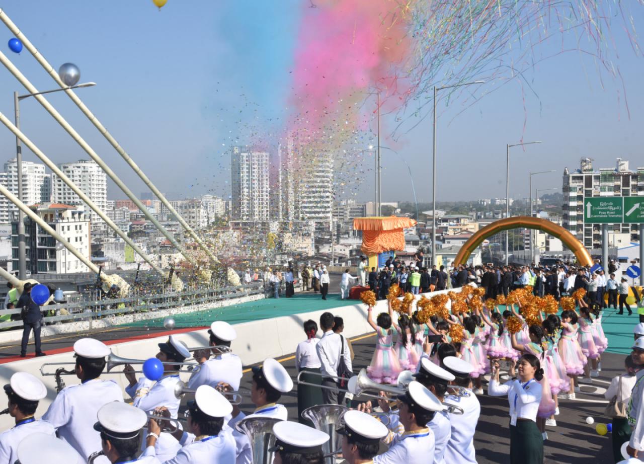 ရန်ကုန်တိုင်းဒေသကြီးအတွင်းရှိ မြန်မာ-ကိုရီးယားချစ်ကြည်ရေး(ဒလ)တံတား ဖွင့်ပွဲအခမ်းအနားကို ယနေ့နံနက်ပိုင်းတွင် ကျင်းပပြုလုပ်ရာ ပြည်ထောင်စုသမ္မတ မြန်မာနိုင်ငံတော် ယာယီသမ္မတ နိုင်ငံတော်လုံခြုံရေးနှင့် အေးချမ်းသာယာရေးကော်မရှင် ဥက္ကဋ္ဌ ဗိုလ်ချုပ်မှူးကြီး မင်းအောင်လှိုင် တက်ရောက်ချီးမြှင့်သည်။