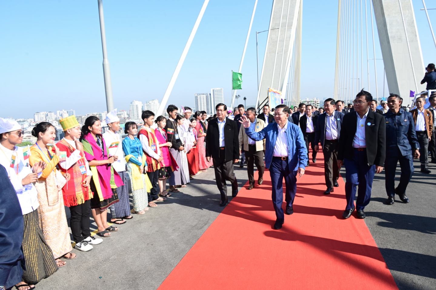 ဆက်လက်ပြီး နိုင်ငံတော်ယာယီသမ္မတ နိုင်ငံတော်လုံခြုံရေးနှင့် အေးချမ်းသာယာ ရေးကော်မရှင်ဥက္ကဋ္ဌ နှင့်အဖွဲ့ဝင်များသည် မြန်မာ-ကိုရီးယား ချစ်ကြည်ရေး(ဒလ)တံတား ပေါ်၌ဖြတ်သန်းကြည့်ရှု၍ အခမ်းအနားသို့ တက်ရောက်လာကြသည့် တိုင်းရင်းသား လူငယ် မောင်မယ်များအားရင်းရင်းနှီးနှီးနှုတ်ဆက်ကြသည်။
