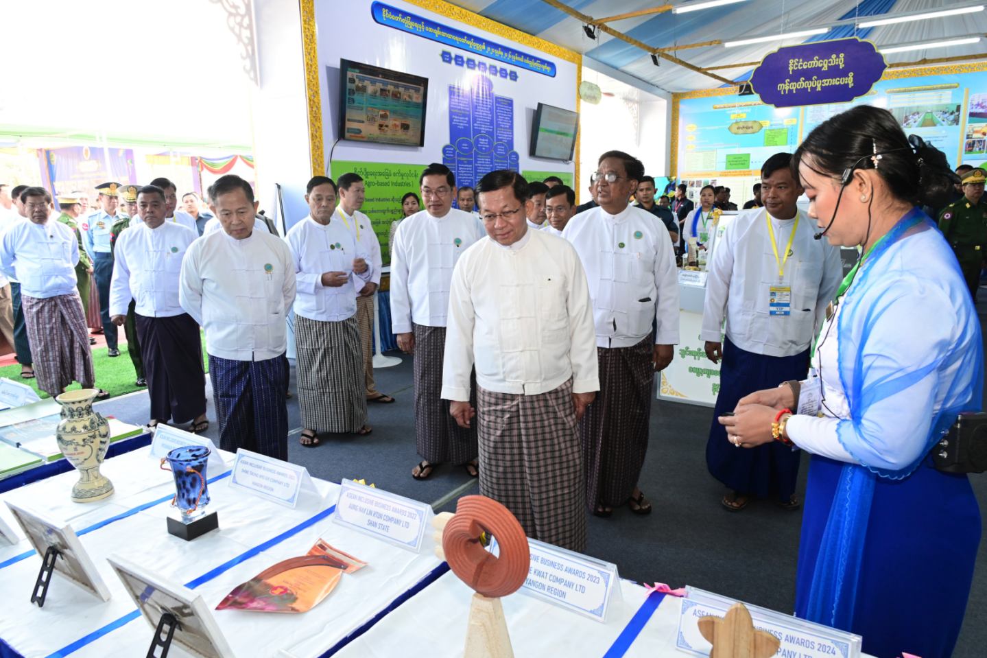 ၂၀၂၆ ခုနှစ်၊ (၇၉) နှစ်မြောက် ပြည်ထောင်စုနေ့အထိမ်းအမှတ် ပြည်ထောင်စုအဆင့် MSME ထုတ်ကုန်ပြပွဲနှင့် ဈေးရောင်းပွဲတော် ဖွင့်ပွဲအခမ်းအနားကျင်းပပြုလုပ် ပြည်ထောင်စုသမ္မတမြန်မာနိုင်ငံတော်ယာယီသမ္မတ နိုင်ငံတော်လုံခြုံရေးနှင့်အေးချမ်းသာယာရေးကော်မရှင်ဥက္ကဋ္ဌ ဗိုလ်ချုပ်မှူးကြီး မင်းအောင်လှိုင် တက်ရောက်ချီးမြှင့်