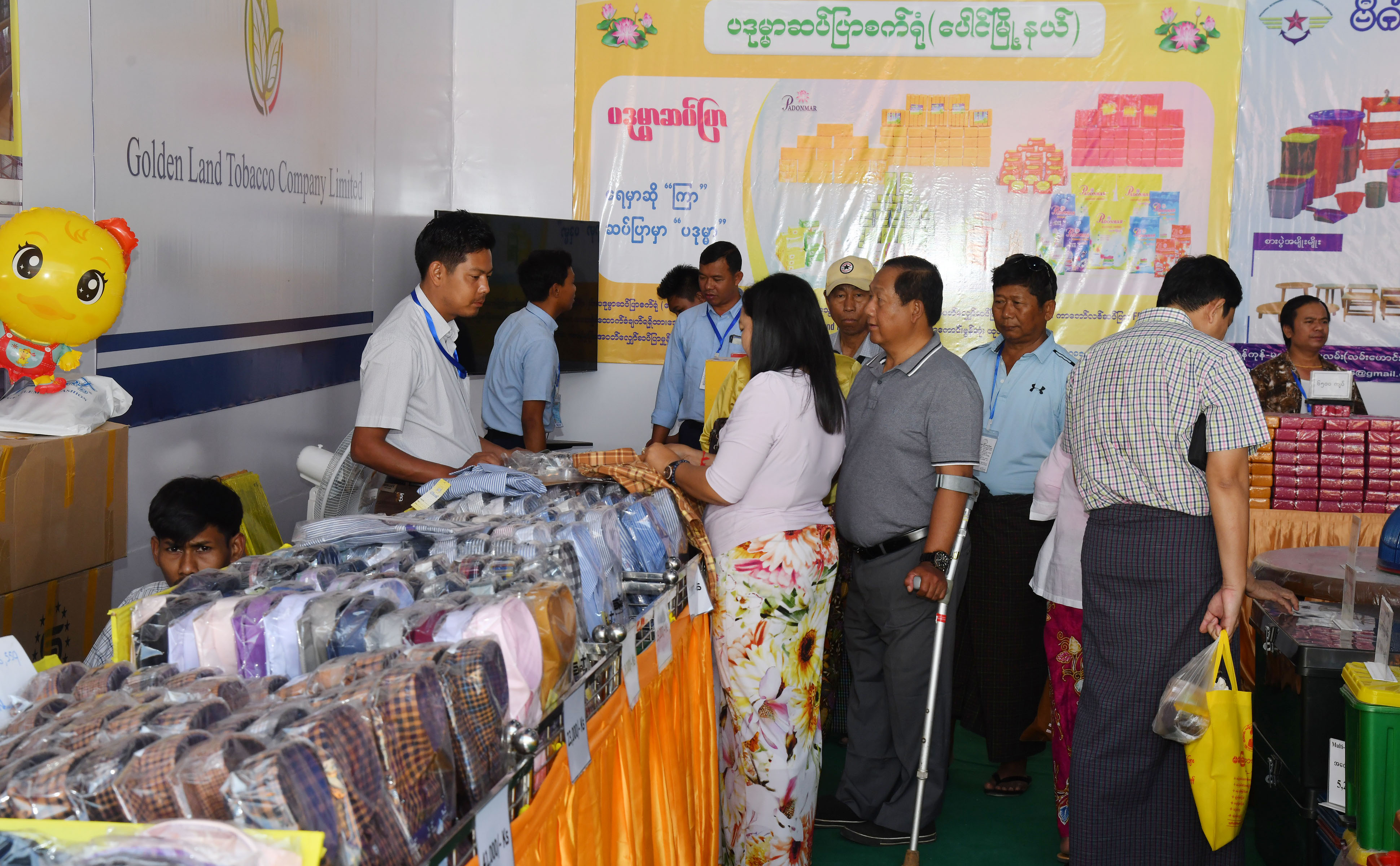 ထို့ပြင် အသေးစားစက်မှု လက်မှုထုတ်ကုန်ပြခန်းများ၊ ကုန်ထုတ်သမဝါယမ အသင်း များ ထုတ်ကုန်ပြခန်း၊ မြန်မာအမျိုးသမီး စီးပွားရေးစွမ်းဆောင်ရှင်များအသင်း ပြခန်း၊ မြန်မာ နိုင်ငံ စွန့်ဦးတီထွင်လုပ်ငန်းရှင်များအသင်း ပြခန်း၊ မြန်မာနိုင်ငံ သစ်သီးဝလံ၊ ပန်းမန် နှင့် ဟင်း သီးဟင်းရွက် စိုက်ပျိုးထုတ်လုပ်တင်ပို့ရောင်းချသူများ အသင်းပြခန်း၊ SUPREME WATER DOCTOR ပြခန်း၊ မြန်မာစီးပွားရေးလုပ်ငန်းရှင်အမျိုးသမီးများ ကွန်ယက်ပြခန်း၊ မြန်မာနိုင်ငံ ဆီကုန်သည်နှင့် ဆီလုပ်ငန်းရှင်များအသင်းပြခန်း၊ မြန်မာနိုင်ငံ ဆီစက်ပိုင်ရှင်များ အသင်း ပြခန်းများတွင် သက်ဆိုင်ရာ ပြခန်းအလိုက် စားသောက်ကုန်ပစ္စည်းများ၊ လူသုံးကုန် ပစ္စည်း များ၊ အဝတ်အထည်များကို ဈေးနှုန်း သက်သာစွာ ခင်းကျင်းပြသ ရောင်းချပေး လျက်ရှိ သည့်အတွက် လာရောက်လေ့လာဝယ်ယူသူများဖြင့် စည်ကားလျက်ရှိသည်ကို တွေ့ ရသည်။