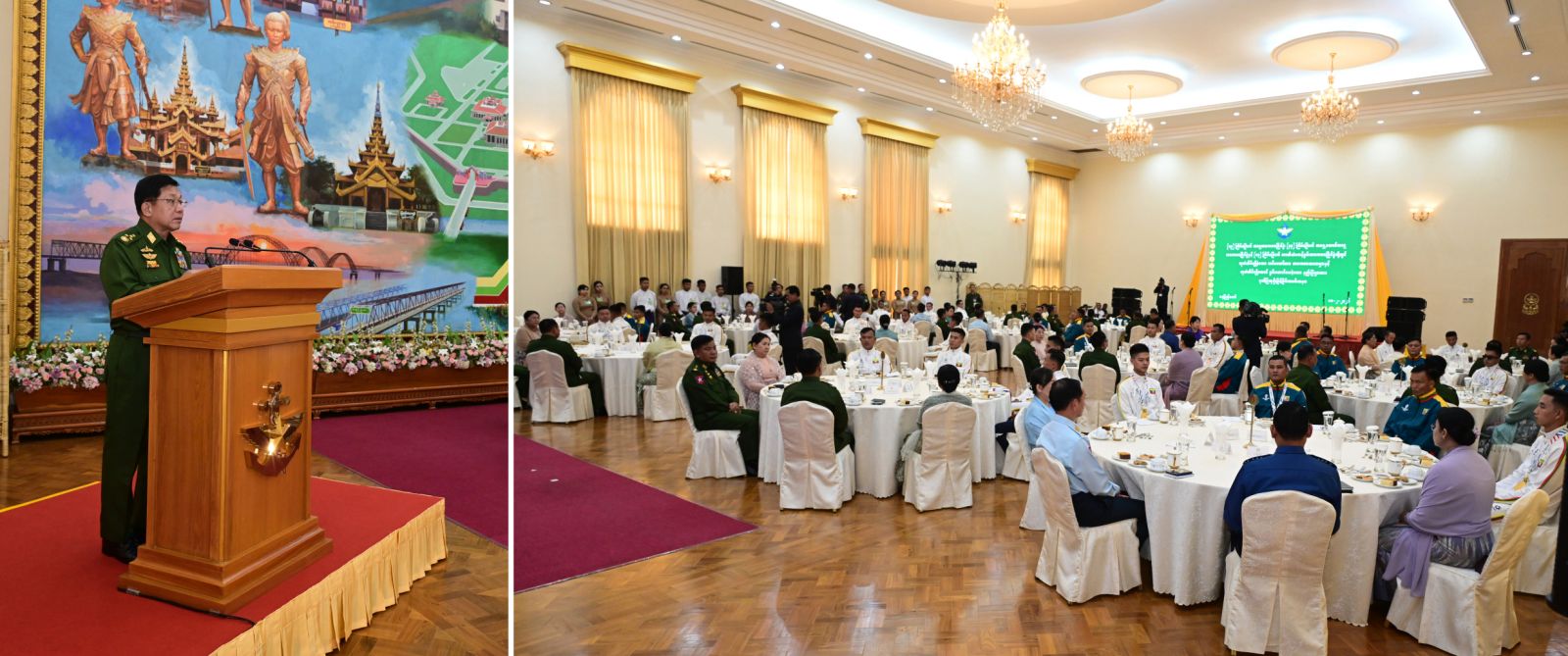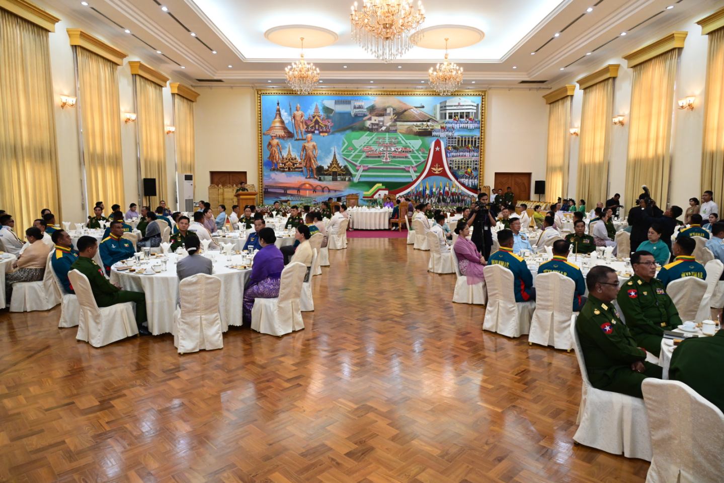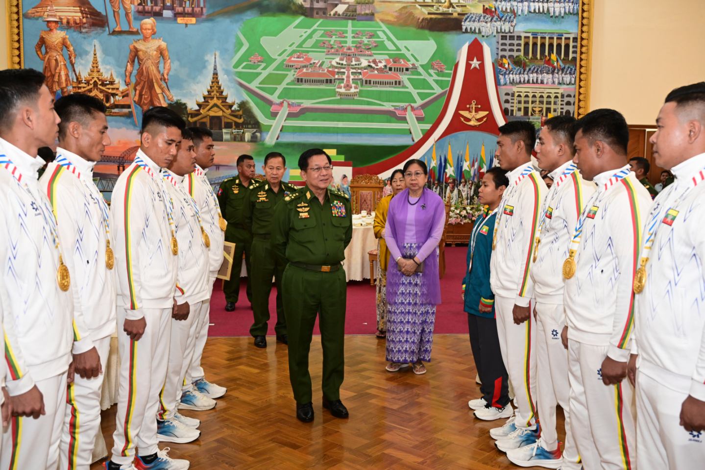 (၁၉) ကြိမ်မြောက်အာရှအားကစားပြိုင်ပွဲ၊ (၃၃) ကြိမ်မြောက် အရှေ့တောင် အာရှအားကစားပြိုင်ပွဲနှင့် (၁၃) ကြိမ်မြောက် အာဆီယံမသန်စွမ်းအားကစားပြိုင်ပွဲ တို့ တွင် ဆုတံဆိပ်များရယူဆွတ်ခူးပေးခဲ့ကြသည့် တပ်မတော်သားအားကစားသမားများ နှင့် နည်းပြများအား ဂုဏ်ပြုဆုများချီးမြှင့်ခြင်း အခမ်းအနားကို ယနေ့မွန်းလွဲပိုင်း တွင် နေပြည်တော်ရှိ ဘုရင့်နောင်ရိပ်သာဧည့်ခန်းမဆောင်၌ ကျင်းပပြုလုပ်ရာ နိုင်ငံတော် လုံခြုံရေးနှင့် အေးချမ်း သာယာရေးကော်မရှင်ဥက္ကဋ္ဌ တပ်မတော်ကာကွယ်ရေးဦးစီးချုပ် ဗိုလ်ချုပ်မှူးကြီး မင်းအောင်လှိုင် တက်ရောက်အမှာစကားပြောကြားပြီး ဂုဏ်ပြုဆုများ ပေးအပ် ချီးမြှင့်သည်။