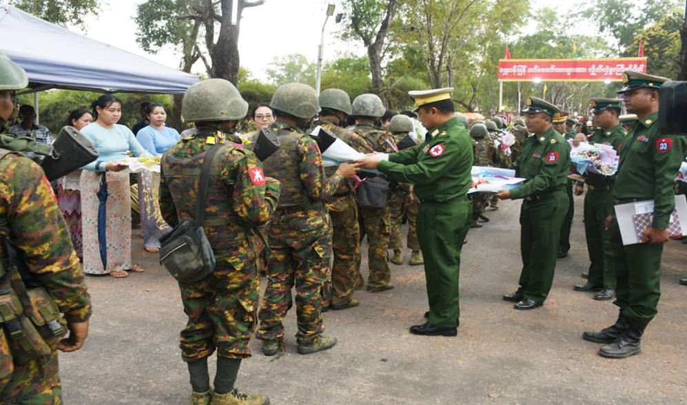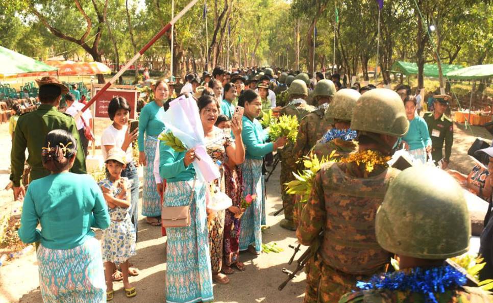 တိုင်းဒေသကြီးနှင့်ပြည်နယ်အသီးသီးရှိ တိုင်းရင်းသားပြည်သူများ စိတ်အေး ချမ်းသာစွာ နေထိုင်လုပ်ကိုင်စားသောက်နိုင်ရေးနှင့် အသက်အိုးအိမ်စည်းစိမ်ဥစ္စာ လုံခြုံမှု ရှိစေရေး၊ နိုင်ငံတော်တည်ငြိမ်ရေး၊ နယ်မြေအေးချမ်းရေးအတွက် ရှေ့တန်း စစ်မျက်နှာ များတွင် စစ်ဆင်ရေးတာဝန်များကို နေ့မအား ညမနား စွမ်းစွမ်းတမံ တာဝန်ထမ်း ဆောင်ခဲ့ပြီး ရွပ်ရွပ်ချွံချွံတိုက်ပွဲဝင်၍ အောင်ပွဲအလီလီရယူနိုင်ခဲ့သော အောင်ပွဲရ ရှေ့တန်းပြန် တပ်မတော်သားများအား တိုင်းမှူးနှင့် တာဝန်ရှိသူများ၊ ဒေသခံ ပြည်သူများ၊ ကျောင်းသား/ကျောင်းသူများက ဂုဏ်ပြုပန်းကုံးများ၊ အောင်သပြေခက် များဖြင့်လည်းကောင်း၊ ဘင်ခရာနှင့်ပန်းပွားအက များ၊ အိုးစည်ဒိုးပတ် အတီး၊ အမှုတ်၊ အက၊ အခုန်များဖြင့်လည်းကောင်း ဝမ်းမြောက်စွာ သောင်းသောင်းဖြဖြ ကြိုဆိုဂုဏ်ပြု ခဲ့ကြပြီး တိုင်းမှူးက အောင်ပွဲရ ရှေ့တန်းပြန် တပ်မတော်သားများအား ဂုဏ်ပြုချီးမြှင့် ငွေများ ပေးအပ်ခဲ့ကြောင်း သတင်းရရှိသည်။