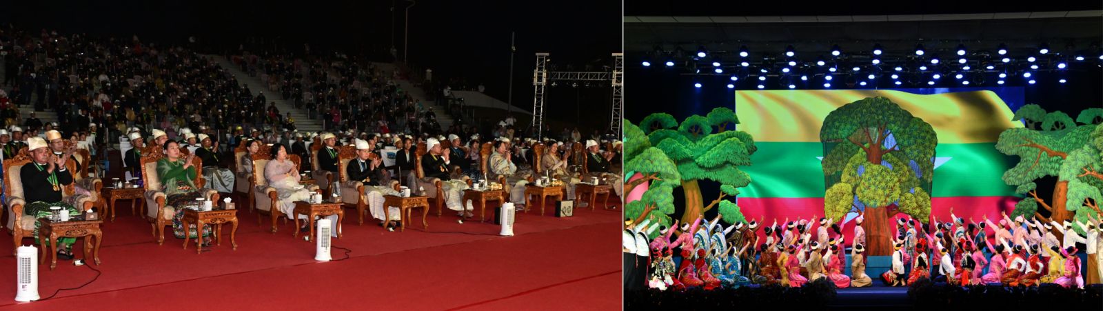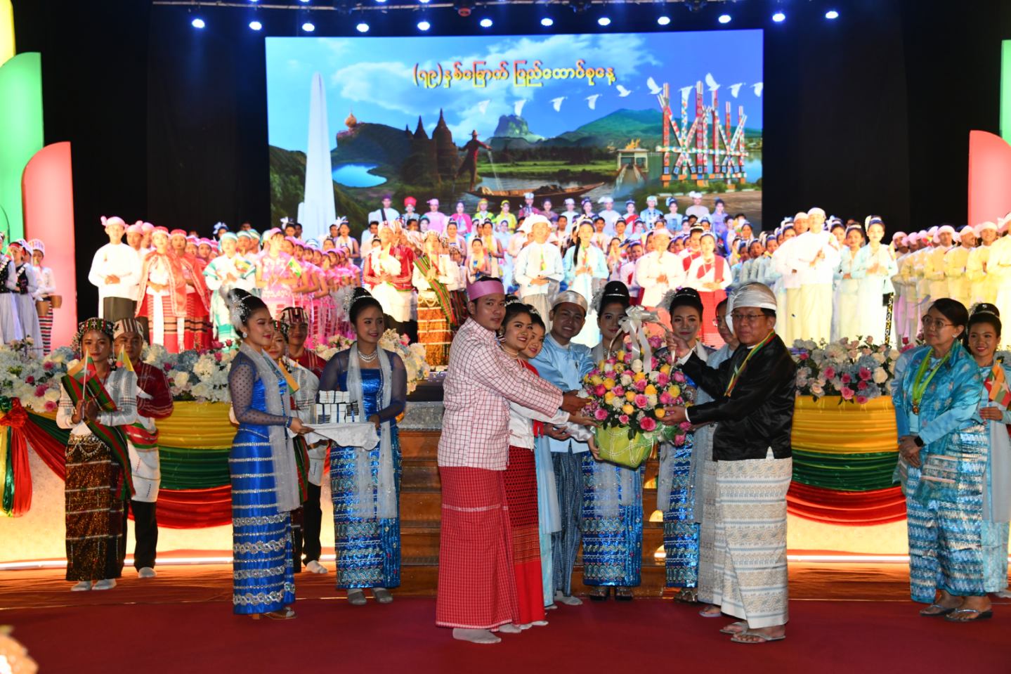 ထိုသို့ဖျော်ဖြေတင်ဆက်ရာတွင် သာသနာရေးနှင့် ယဉ်ကျေးမှုဝန်ကြီးဌာန၊ အနုပညာဦးစီးဌာနမှ အနုပညာရှင်များက ပြည်ထောင်စုတေးသရုပ်ဖော်ဖြင့်လည်း ကောင်း၊ ကချင်တိုင်းရင်းသားရိုးရာအကအဖွဲ့၊ ကယားတိုင်းရင်းသားရိုးရာအကအဖွဲ့၊ ကရင်တိုင်းရင်းသားရိုးရာအကအဖွဲ့၊ ချင်းတိုင်းရင်းသားရိုးရာ အကအဖွဲ့၊ မကွေးတိုင်း ဒေသကြီး ဗမာတိုင်းရင်းသားရိုးရာအကအဖွဲ့၊ မွန်တိုင်းရင်းသားရိုးရာအကအဖွဲ့၊ ရခိုင် တိုင်းရင်းသားရိုးရာအကအဖွဲ့၊ ရှမ်းတိုင်းရင်းသားရိုးရာအကအဖွဲ့ တို့က တိုင်းရင်းသား ရိုးရာ တေးသီချင်းများ၊ တေးသရုပ်ဖော်များဖြင့် လည်းကောင်း၊ သာသနာရေးနှင့်ယဉ် ကျေးမှုဝန်ကြီးဌာန အနုပညာဦးစီးဌာနမှ အနုပညာရှင်များနှင့် တိုင်းရင်းသားရိုးရာ ယဉ်ကျေးမှုအဖွဲ့များက “ မွှေးရနံ့စုံလင် ပြည်ထောင်စုသဘင်” တေးသီချင်းဖြင့်လည်း ကောင်း အသီးသီး ဖျော်ဖြေတင်ဆက်ကြသည်။