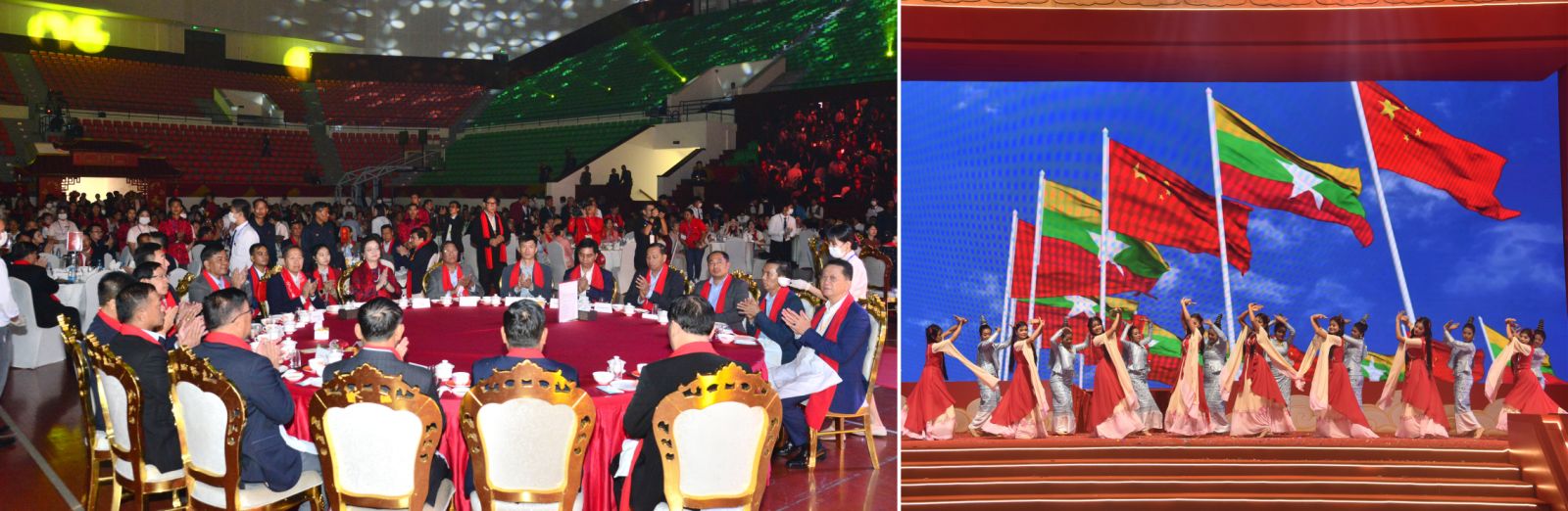 ထို့နောက် နိုင်ငံတော်လုံခြုံရေးနှင့်အေးချမ်းသာယာရေးကော်မရှင် ဒုတိယဥက္ကဋ္ဌ နှင့်ဇနီးတို့သည် အခမ်းအနားတက်ရောက်လာကြသူများနှင့်အတူ တရုတ်ရိုးရာနှစ်သစ် ကူး အထိမ်းအမှတ်ဂုဏ်ပြုညစာကို အတူတကွသုံးဆောင်ကြသည်။ ညစာသုံးဆောင် နေစဉ်အတွင်း တရုတ်နိုင်ငံမှ လာရောက်ဖျော်ဖြေသည့် ချုံချင့်ရိုးရာအကအဖွဲ့၊ ဓိရာမိုရ် (ဂီတကဗျာ)အကအဖွဲ့၊ ပြည်သူ့ဆက်ဆံရေးနှင့်စိတ်ဓာတ်စစ်ဆင်ရေး ညွှန်ကြားရေးမှူး ရုံး ကွပ်ကဲမှုအောက် မြဝတီယဉ်ကျေးမှုအဖွဲ့နှင့် အနုပညာရှင်များက အဆိုအကများ၊ တေးသရုပ်ဖော်များ၊ တရုတ်-မြန်မာချစ်ကြည်ရေး တေးသီချင်းများဖြင့် ဖျော်ဖြေ တင်ဆက်ခြင်း၊ တရုတ်ယဉ်ကျေးမှုအဖွဲ့များက တရုတ်ရိုးရာတေးသီချင်းများ၊ တူရိယာ များဖြင့် သီဆိုတီးမှုတ်ကပြဖျော်ဖြေခြင်းများ၊ ပြင်ပအနုပညာရှင်များက တေးသီချင်း များဖြင့် သီဆိုဖျော်ဖြေခြင်းများ ဆောင်ရွက်ကြသည်။