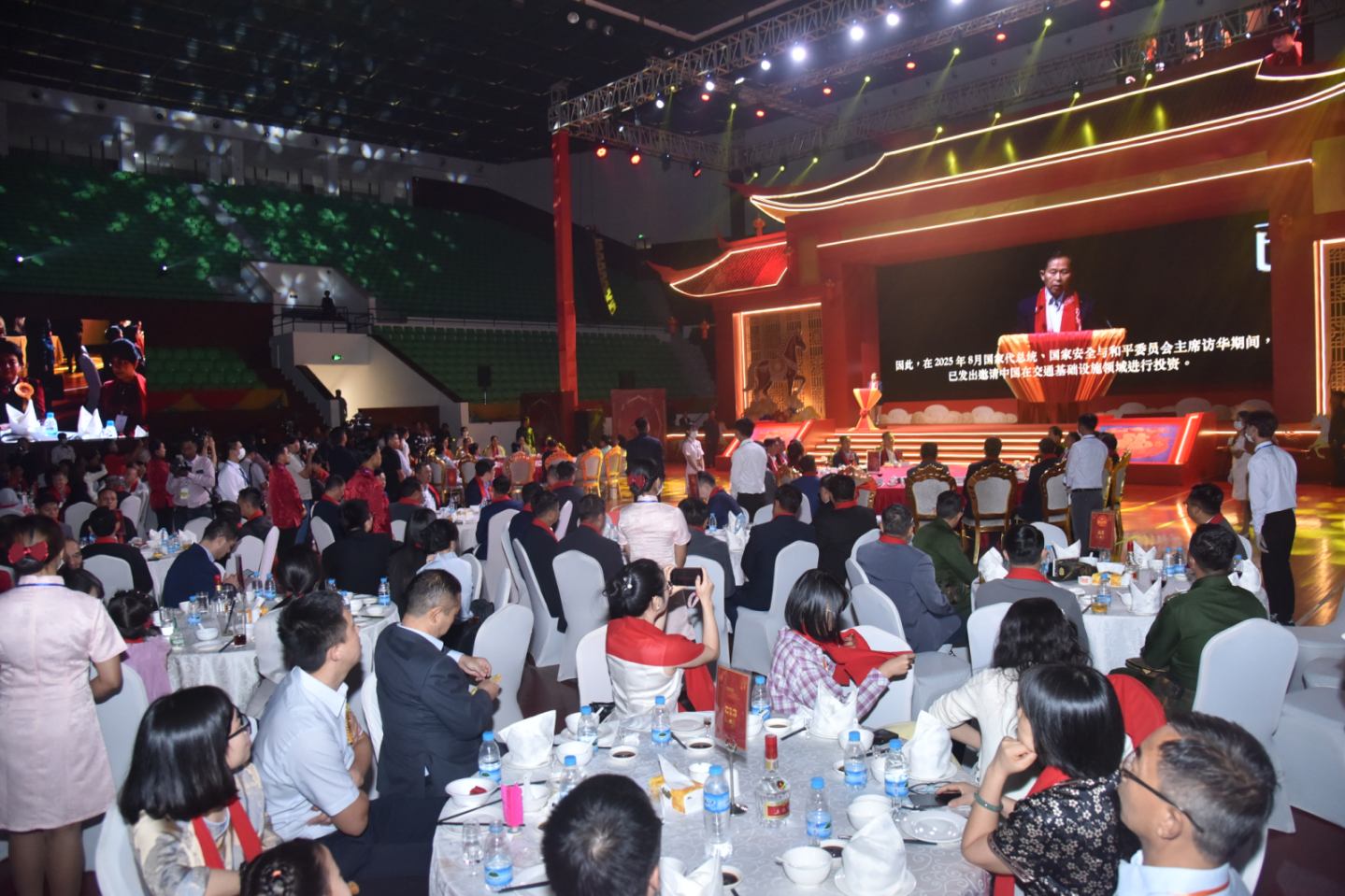 (၂၀၂၆) ခုနှစ်၊ မြင်းနှစ် တရုတ်နှစ်သစ်ကူးပွဲတော်အခမ်းအနားကို ယနေ့ညနေပိုင်းတွင် ရန်ကုန်မြို့ရှိ အမျိုးသားအားကစားပြိုင်ပွဲရုံ(၁)သုဝဏ္ဏ၌ ကျင်းပပြုလုပ်ရာ နိုင်ငံတော် လုံခြုံရေးနှင့်အေးချမ်းသာယာရေးကော်မရှင် ဒုတိယဥက္ကဋ္ဌ ဒုတိယဗိုလ်ချုပ်မှူးကြီး စိုးဝင်းနှင့် ဇနီး ဒေါ်သန်းသန်းနွယ် တို့ တက်ရောက်ချီးမြှင့်သည်။