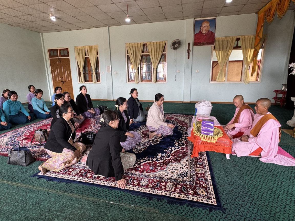 အလားတူ နိုင်ငံတော်ယာယီသမ္မတ နိုင်ငံတော်လုံခြုံရေးနှင့် အေးချမ်းသာယာ ရေးကော်မရှင်ဥက္ကဋ္ဌနှင့်အတူ ခရီးစဉ်တွင်လိုက်ပါလာသည့် ဇနီး ဒေါ်ကြူကြူလှသည် ကော်မရှင်အတွင်းရေးမှူး၏ဇနီး၊ အဖွဲ့ဝင်များလိုက်ပါ၍ လဟယ်မြို့၊ ထေရဝါဒဗုဒ္ဓ သာသနာပြုသီလရှင်ကျောင်းသို့ သွားရောက်၍ သီလရှင်ဆရာကြီးများအား ဖူးမြော် ကြည်ညိုကာ လှူဖွယ်ပစ္စည်းများဆက်ကပ်လှူဒါန်းခဲ့ကြောင်းနှင့် သီလရှင်ဆရာကြီး များ၏ မိန့်ကြားမှုများအပေါ်လိုအပ်သည်များ ဖြည့်ဆည်းဆောင်ရွက်ပေးခဲ့ကြောင်း သတင်းရရှိသည်။