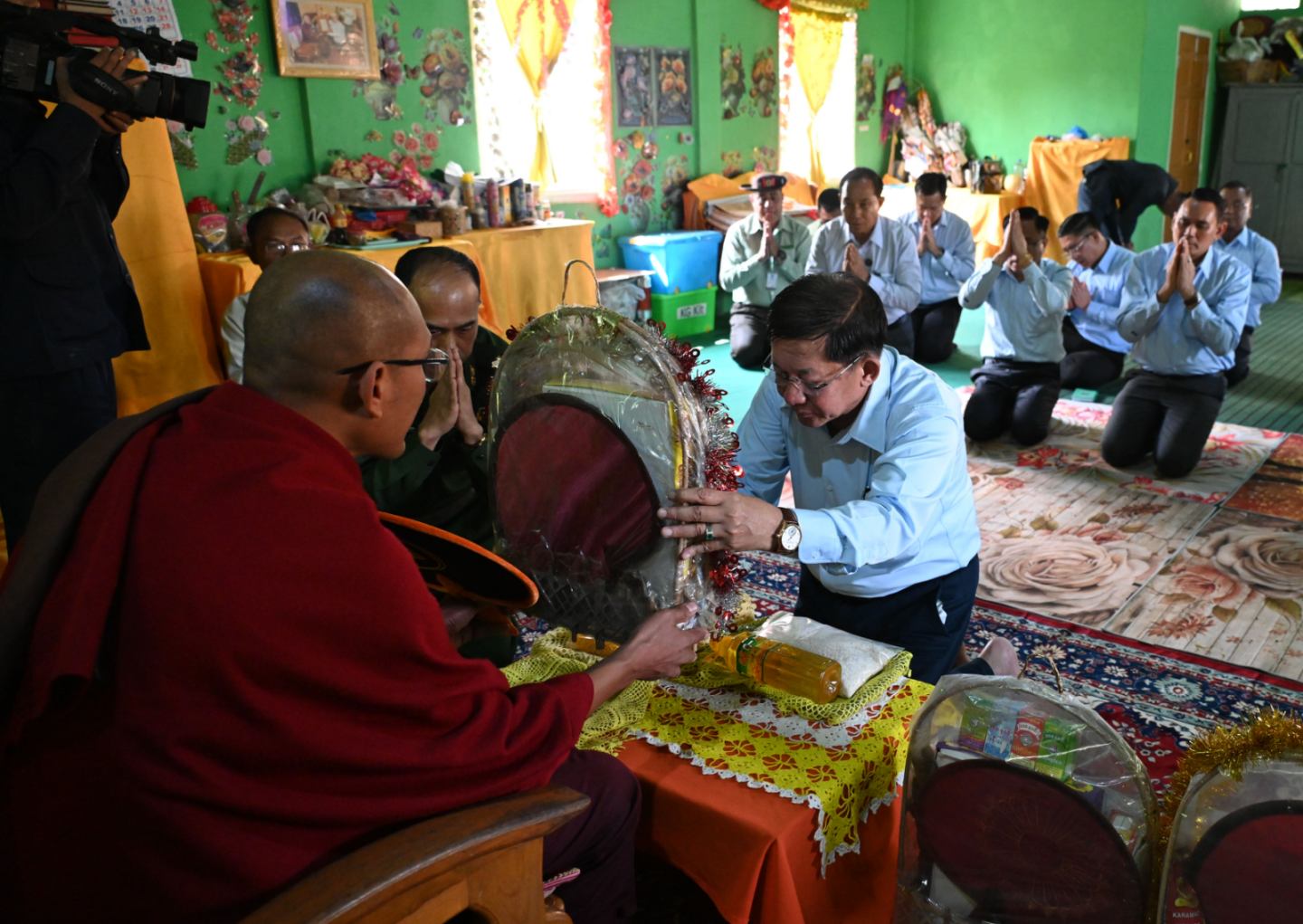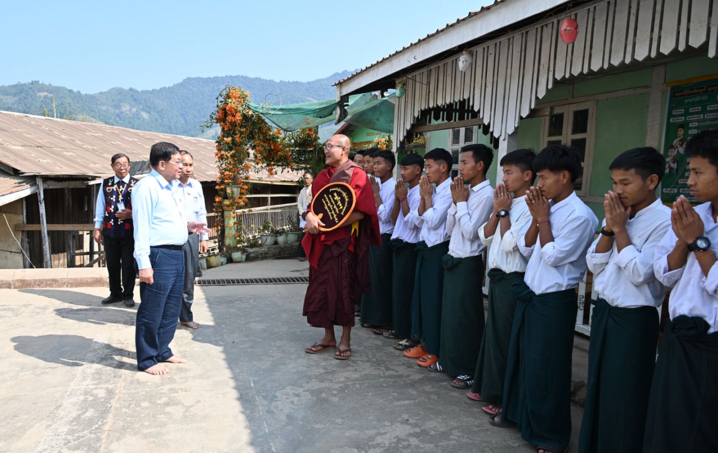 ထို့နောက် နိုင်ငံတော်ယာယီသမ္မတ နိုင်ငံတော်လုံခြုံရေးနှင့် အေးချမ်းသာယာ ရေးကော်မရှင်ဥက္ကဋ္ဌသည် အဖွဲ့ဝင်များလိုက်ပါ၍ လဟယ်မြို့၊ ထေရဝါဒဗုဒ္ဓသာသနာပြု (ဗဟို)ကျောင်းသို့ ရောက်ရှိပြီး နာဂတောင်တန်းသာသနာပြုဗဟို ခေါင်းဆောင် ဆရာ တော် မဟာသဒ္ဓမ္မဇောတိကဓဇ သာသနဓဇဓမ္မာစရိယ ဘဒ္ဒန္တ သုမန အားဖူးမြော်ကြည် ညိုကာ စုပေါင်းနဝကမ္မအလှူတော်ငွေများ၊ ဆန်၊ ဆီ၊ ဆားနှင့် လှူဖွယ်ပစ္စည်းများကို ဆက်ကပ်လှူဒါန်းသည်။