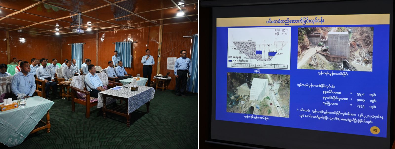 ဦးစွာ စီမံကိန်းရှင်းလင်းဆောင်၌ တာဝန်ရှိသူတစ်ဦးက ဟွေထိုက်ရေအား လျှပ်စစ်စီမံကိန်းအား ဘဏ္ဍာရေးနှစ်အလိုက် အကောင်အထည်ဖော် ဆောင်ရွက်လျက် ရှိမှုအခြေအနေများနှင့် လုပ်ငန်းပြီးစီးမှုအခြေအနေများအား ရှင်းလင်းတင်ပြရာ နိုင်ငံ တော်ယာယီသမ္မတ နိုင်ငံတော်လုံခြုံရေးနှင့် အေးချမ်းသာယာရေးကော်မရှင်ဥက္ကဋ္ဌက မိုးရာသီမရောက်ရှိခင်ကာလအတွင်း လိုအပ်သည့်တည်ဆောက်ရေး လုပ်ငန်း များကို ဆောင်ရွက်သွားရန်၊ လျှပ်စစ်ဓာတ်အားလိုင်းများ သွယ်တန်းခြင်းလုပ်ငန်းများ ကြိုတင် စီမံဆောင်ရွက်ထားရန်နှင့် ဓာတ်အားဖြန့်ခွဲမည့်အစီအမံများအား ကြိုတင်ရေးဆွဲ ထားရှိရန်၊ ရာသီဥတုဆိုးရွားသည့် နေရာဖြစ်သဖြင့် အခြေခံ Foundation များအား မိုးရာသီမတိုင်မီ ပြီးစီးအောင်ဆောင်ရွက်သွားရန်၊ ယခုစီမံကိန်းမှတစ်ဆင့် ဒေသ၏ လူမှုအကျိုးစီးပွားကို များစွာအထောက်ကူပြုနိုင်သဖြင့် စီမံကိန်းအား စနစ်တကျဖြင့် ဆက်လက် အကောင်အထည်ဖော်ဆောင်ရွက်သွားရန်နှင့် အခြားလိုအပ်သည်များ လမ်းညွှန်မှာကြားသည်။
