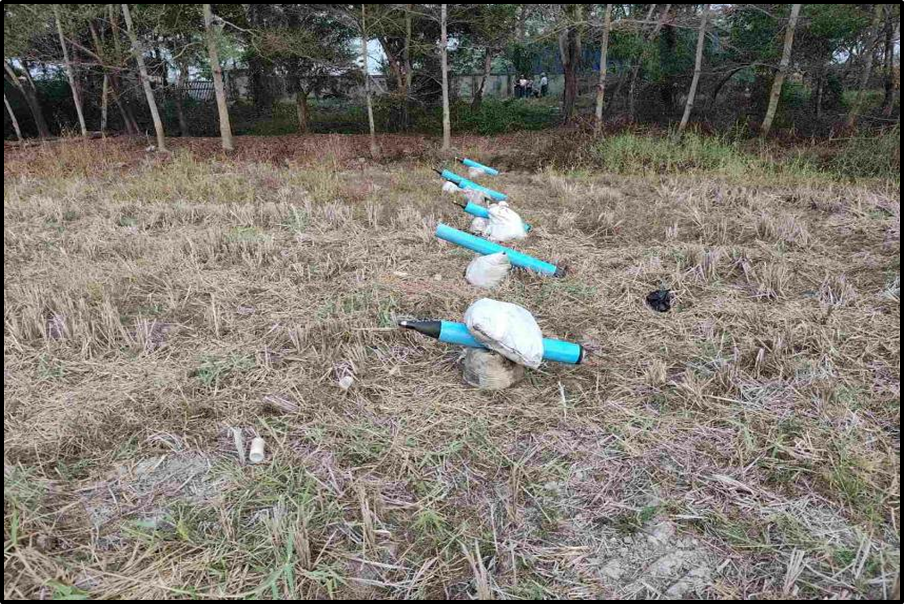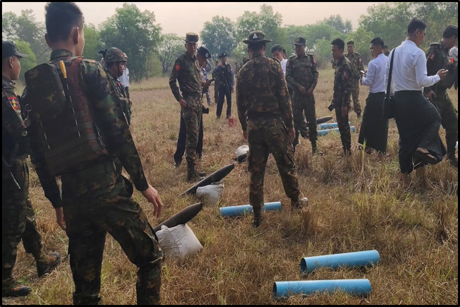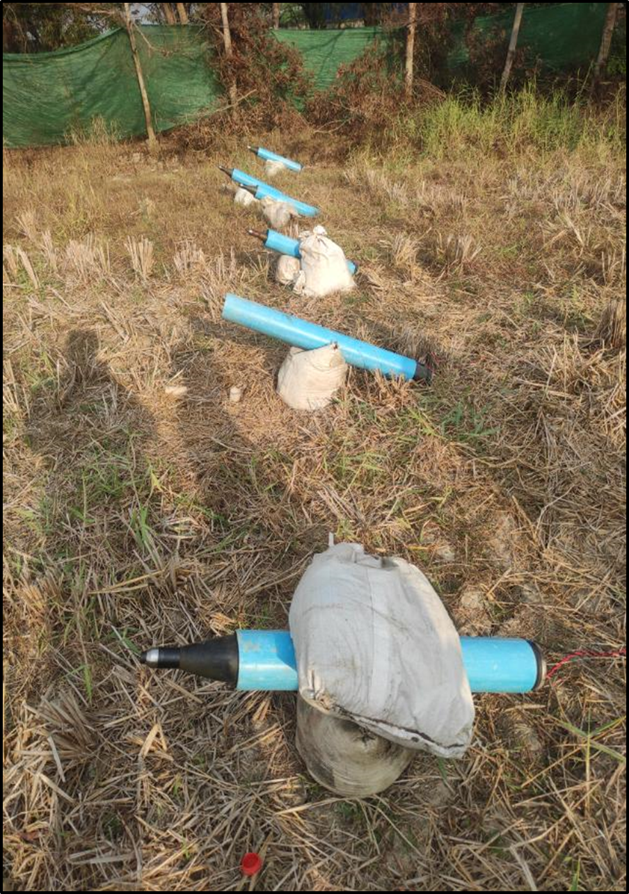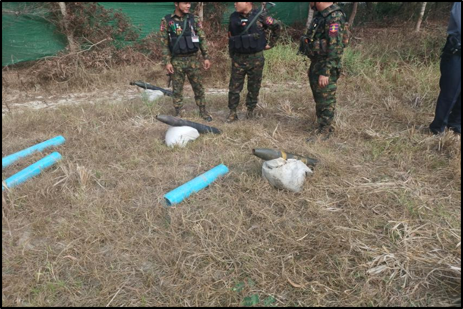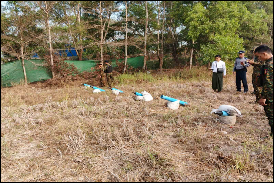လှည်းကူးမြို့နယ်၊ ဆင်ဖုန်(မြောက်)ကျေးရွာအနီးရှိ လယ်ကွင်း၌ ပစ်ခတ်ရန် ပြင်ဆင်ထားသည့် ရှော့တိုက်ဒုံးများတွေ့ရှိ