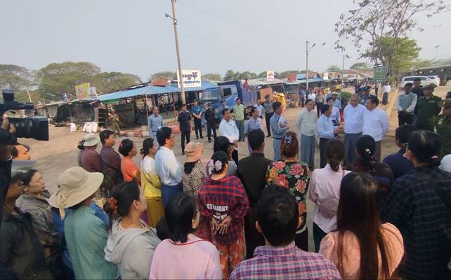 နိုင်ငံတော်ဝန်ကြီးချုပ် ဦးညိုစောနှင့် တာဝန်ရှိသူများသည့် ဖေဖော်ဝါရီ ၂၅ ရက်နေ့ ညပိုင်းတွင် မီးလောင်ကျွမ်းမှုဖြစ်ပွားခဲ့သည့် နေပြည်တော်ကောင်စီနယ်မြေ၊ ပျဉ်းမနားမြို့နယ်၊ ကင်ပွန်းတန်း ကျေးရွာအုပ်စု၊ ကင်ပွန်းတန်း ကျေးရွာရှိ အာဟာရသုခဈေးသို့ ယနေ့နံနက်ပိုင်းတွင် သွားရောက် ကြည့်ရှုစစ်ဆေးသည်။