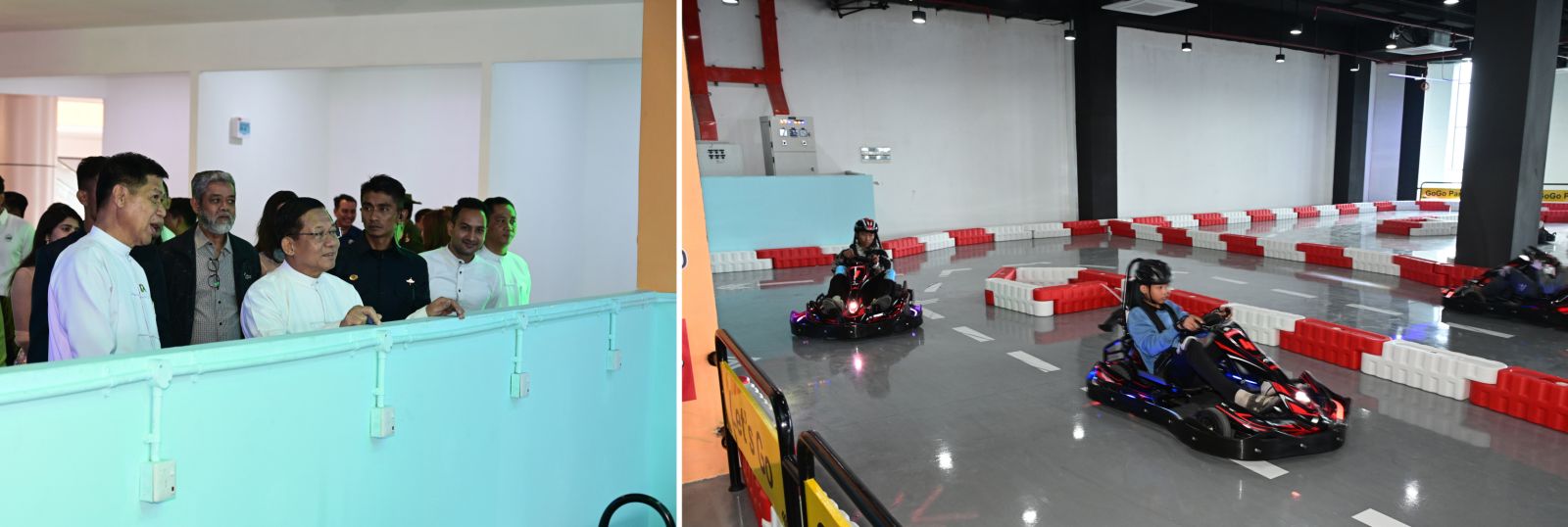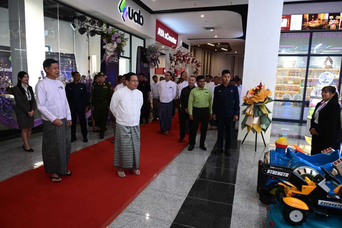 ယင်းနောက် နိုင်ငံတော်ယာယီသမ္မတ နိုင်ငံတော်လုံခြုံရေးနှင့်အေးချမ်းသာယာ ရေးကော်မရှင်ဥက္ကဋ္ဌနှင့် အခမ်းအနားတက်ရောက်လာကြသူများသည် သုမင်္ဂလာ အဆင့်မြင့်ဈေးအတွင်း ဆိုင်ခန်းများဖွင့်လှစ်ရောင်းချလျက်ရှိမှုအခြေအနေများ၊ က လေးကစားကွင်းအတွင်းကလေးငယ်များ ဆော့ကစားလျက်ရှိမှုအခြေအနေများနှင့် ရုပ်ရှင်ရုံတို့အတွင်း လှည့်လည်ကြည့်ရှုကြရာ တာဝန်ရှိသူများက ရှင်းလင်းတင်ပြ ကြသည်။