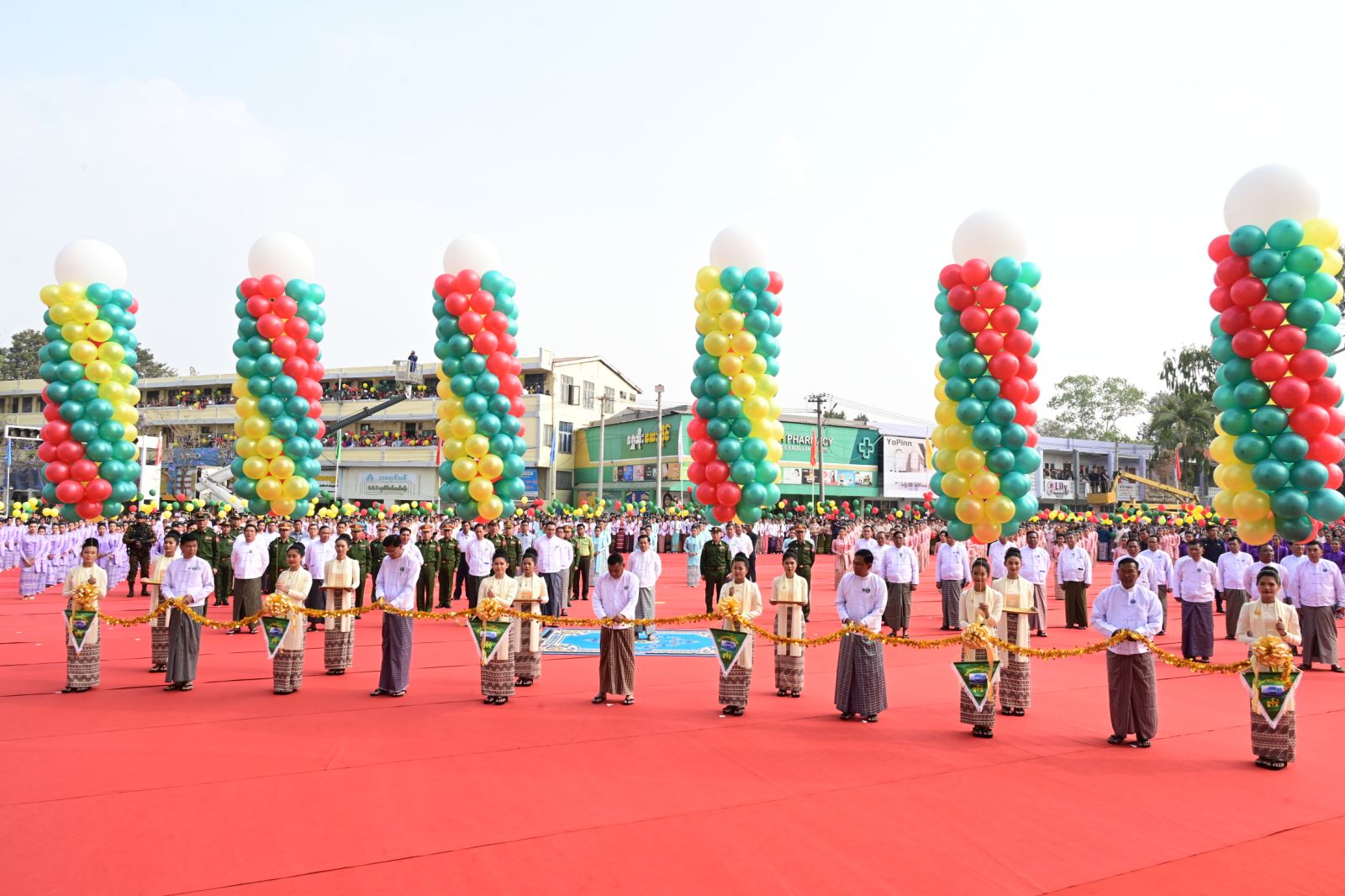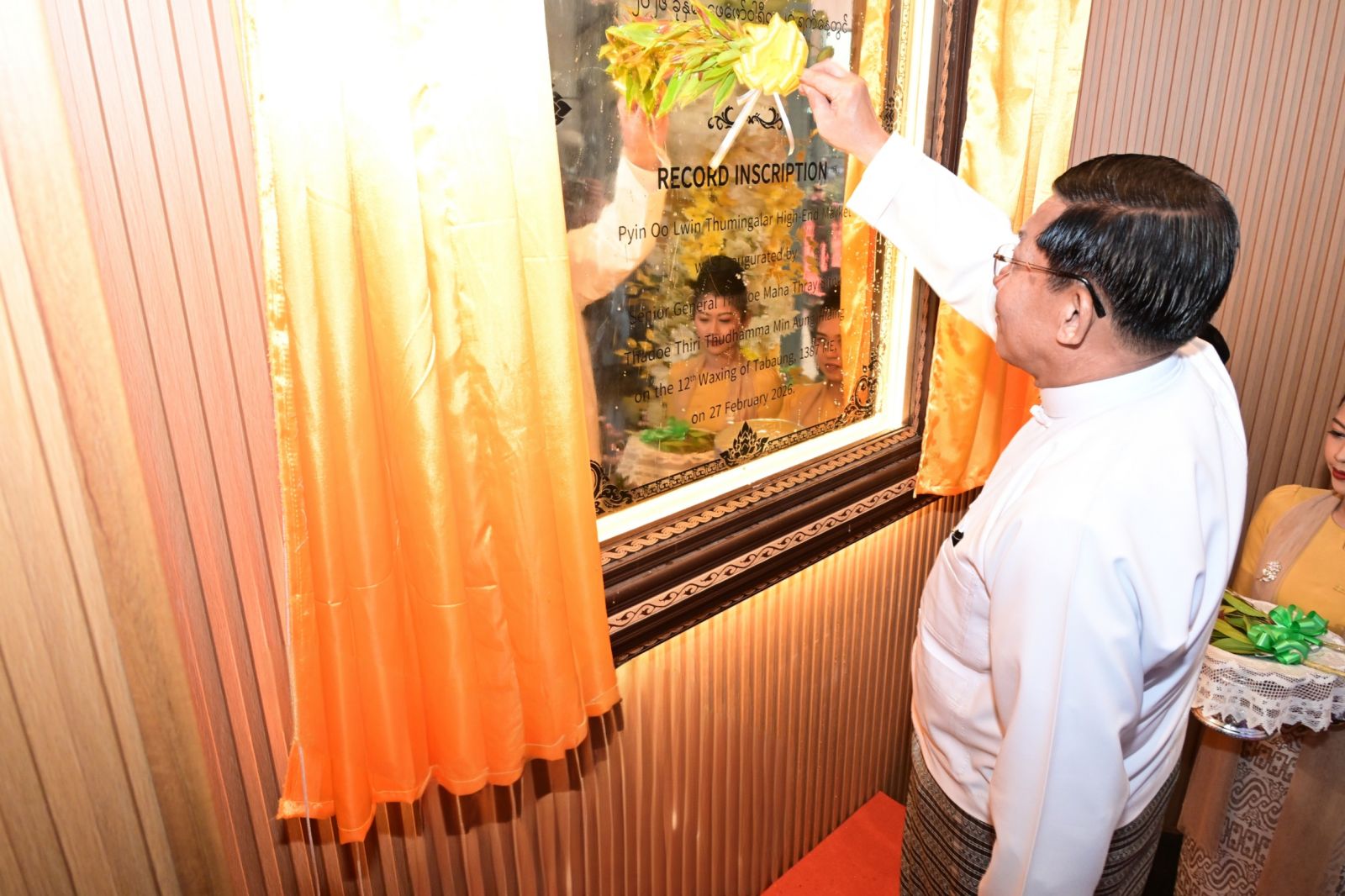 ပြည်ထောင်စုသမ္မတမြန်မာနိုင်ငံတော် ယာယီသမ္မတ နိုင်ငံတော်လုံခြုံရေးနှင့် အေးချမ်းသာယာရေးကော်မရှင် ဥက္ကဋ္ဌ ဗိုလ်ချုပ်မှူးကြီး မင်းအောင်လှိုင် တက်ရောက်ဖွင့်လှစ်ပေး
