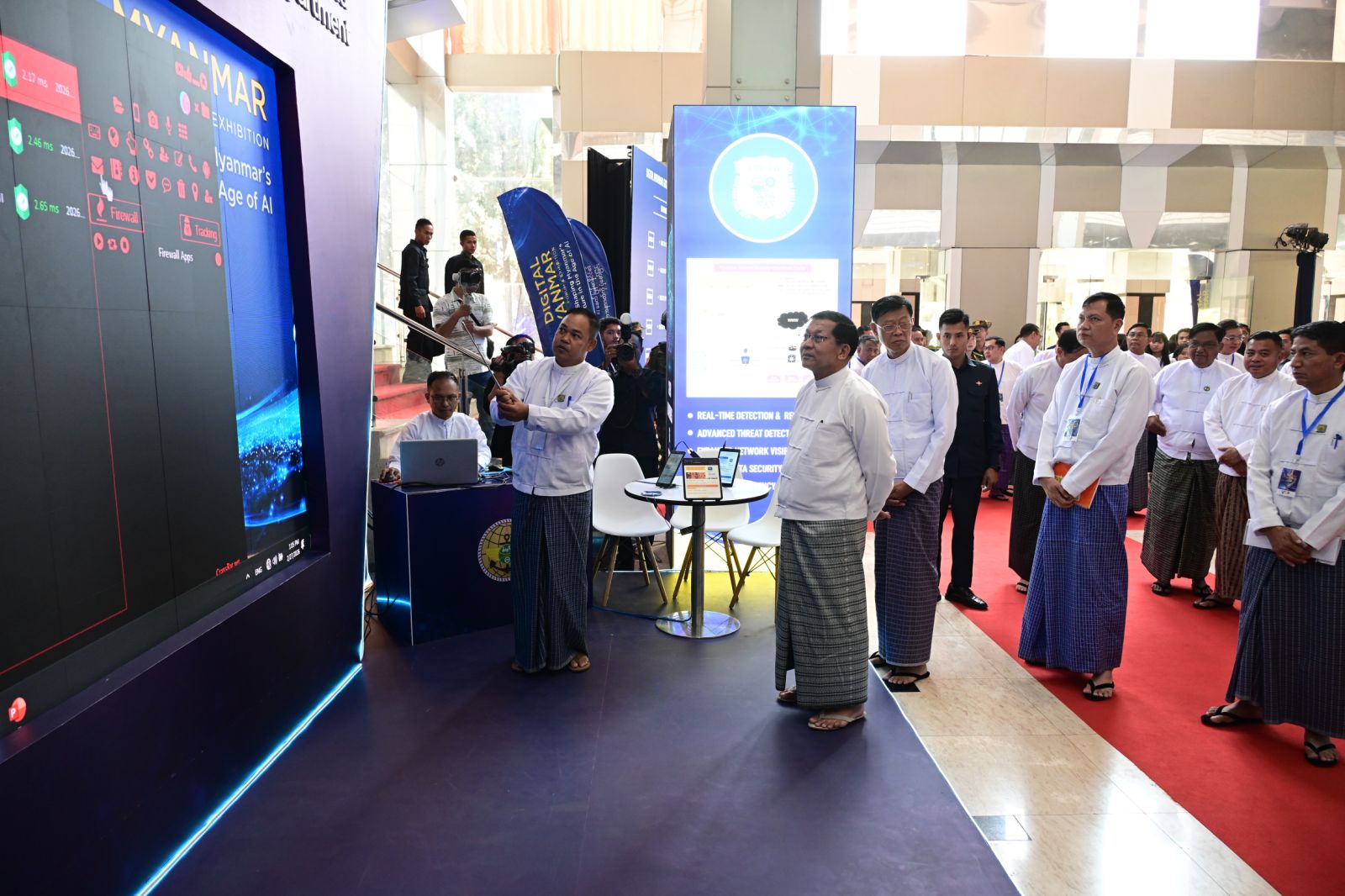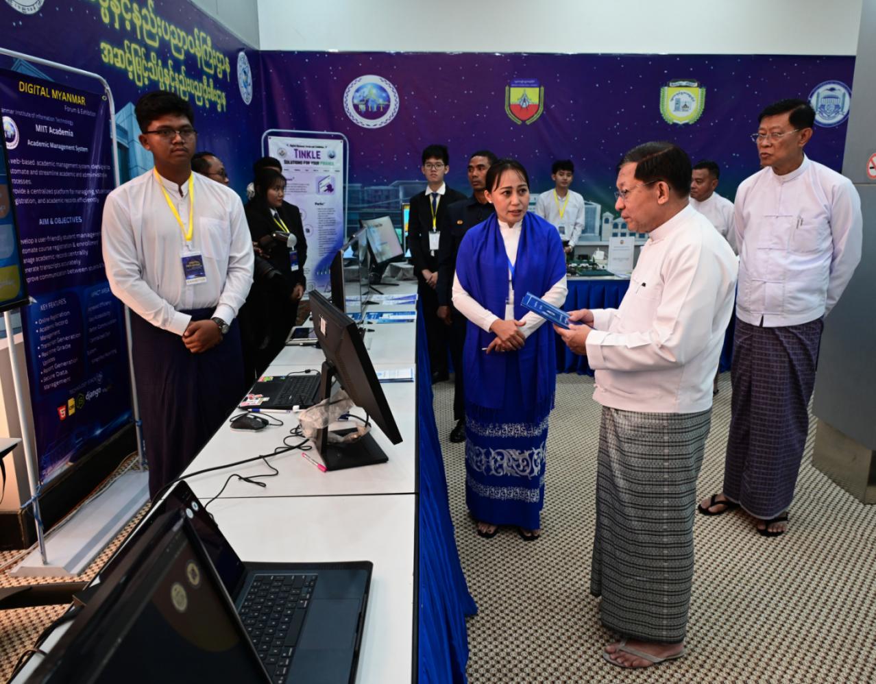 ပြည်ထောင်စုသမ္မတ မြန်မာနိုင်ငံတော်ယာယီသမ္မတ နိုင်ငံတော်လုံခြုံရေးနှင့် အေးချမ်းသာယာရေးကော်မရှင် ဥက္ကဋ္ဌ ဗိုလ်ချုပ်မှူးကြီး မင်းအောင်လှိုင် ဒစ်ဂျစ်တယ်မြန်မာ နည်းပညာနှီးနှောဖလှယ်ပွဲနှင့် ပြပွဲအခမ်းအနားသို့ တက်ရောက်ဖွင့်လှစ်ပေး