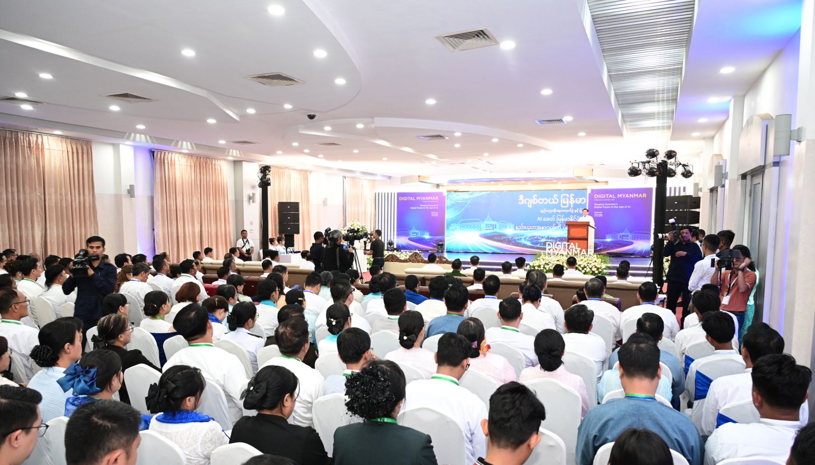 အဆိုပါ ဒစ်ဂျစ်တယ်မြန်မာ နည်းပညာနှီးနှောဖလှယ်ပွဲနှင့် ပြပွဲ(Digital Myanmar Forum and Exhibition)ကို “ဉာဏ်ရည်တု နည်းပညာခေတ် မြန်မာနိုင်ငံ၏ နည်းပညာအနာဂတ်ကို ပုံဖော်ခြင်း (Digital Myanmar: Shaping Myanmar’s Digital Future in the Age of AI)” ဟူသည့် ခေါင်းစဉ်ဖြင့် ၂၈ ရက်နေ့အထိ ကျင်းပပြုလုပ် သွားမည်ဖြစ်ပြီး ဝန်ကြီးဌာနများနှင့် ပြည်တွင်းပြည်ပနည်းပညာကုမ္ပဏီများမှ ပြန်ခန်း များအား ပြသထားရှိကြောင်းသိရှိရသည်။