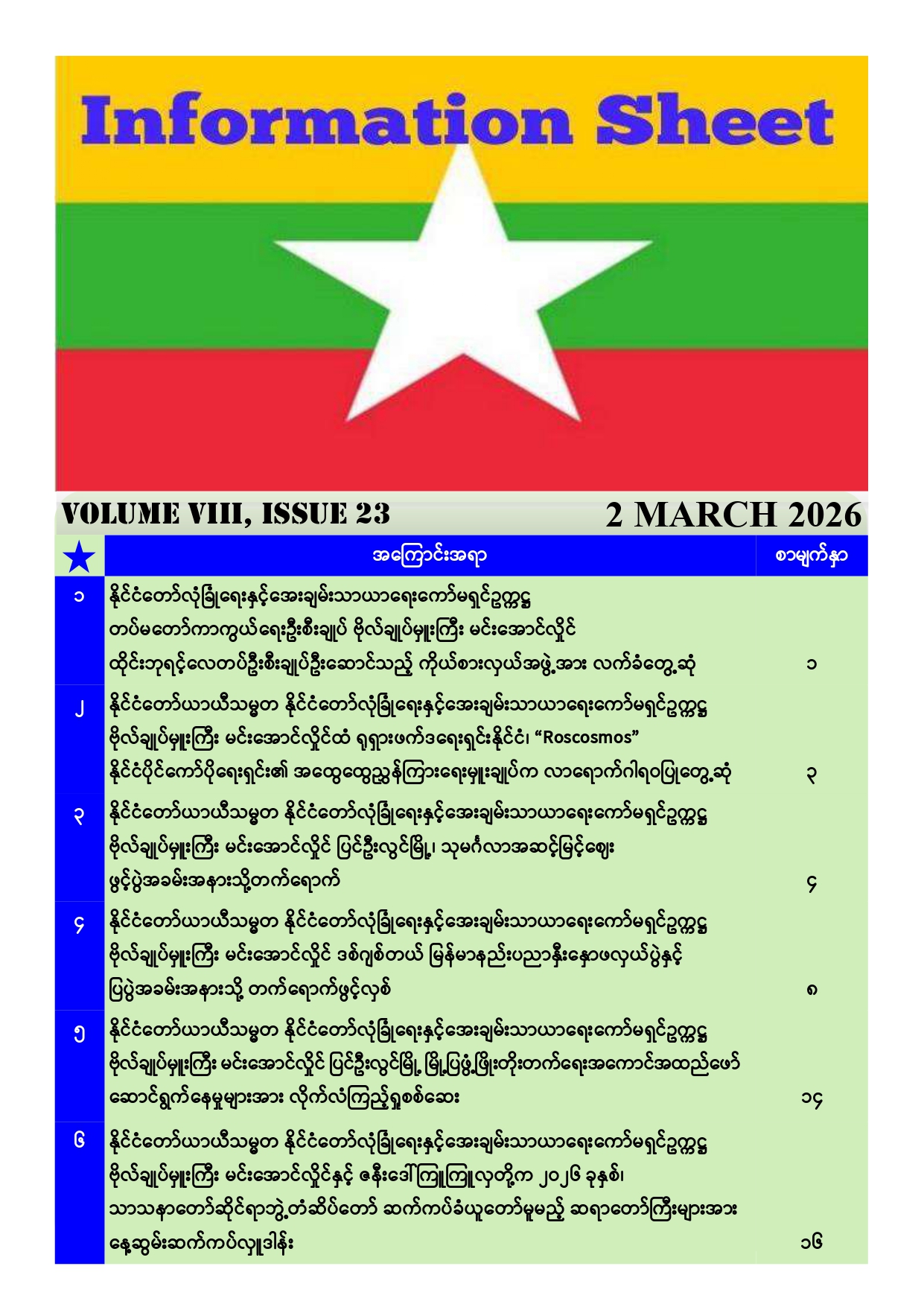 Information Sheet Volume VIII, Issue 23 Myanmar and Englisg (2-3-2026)