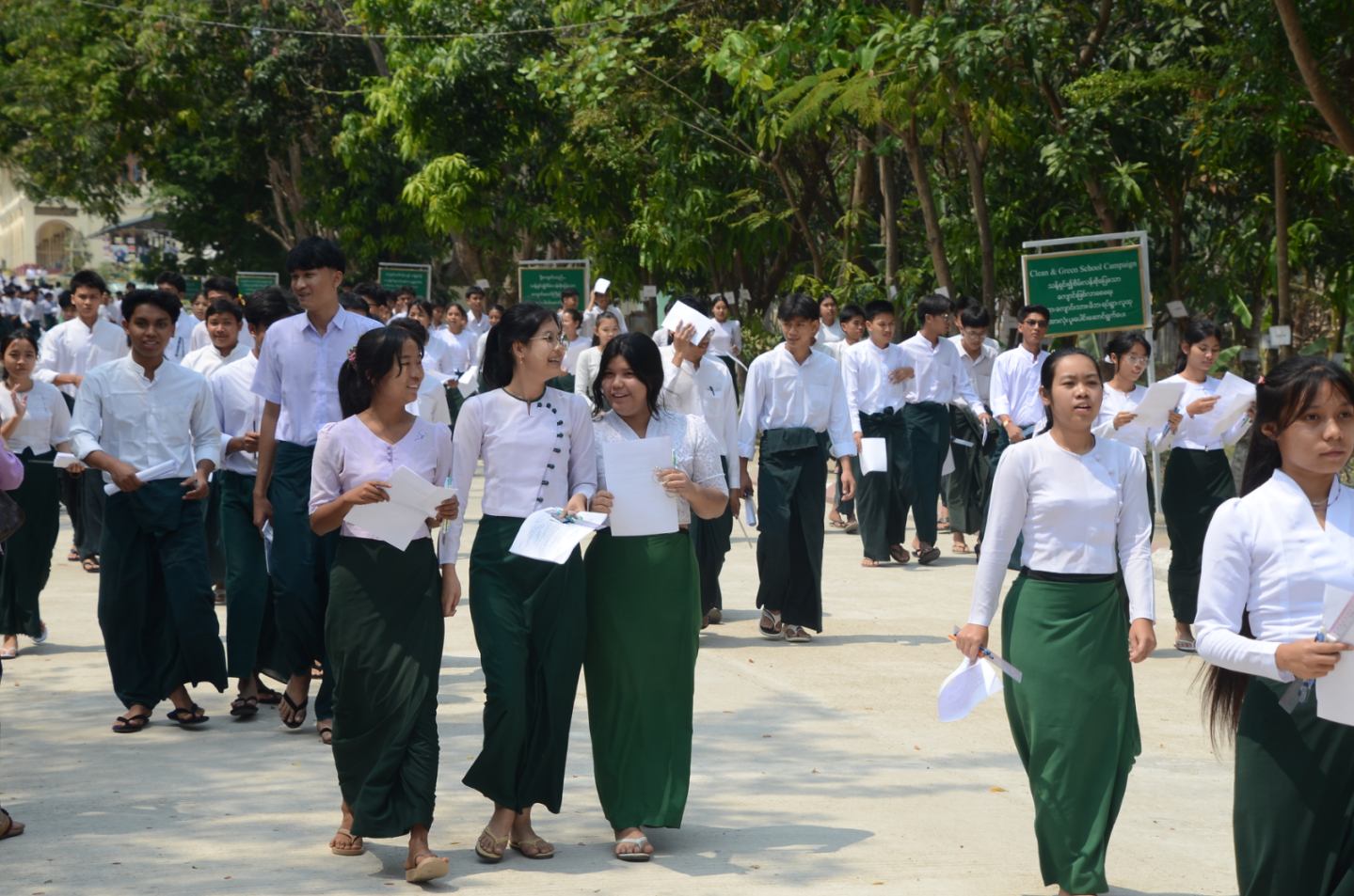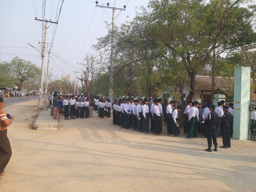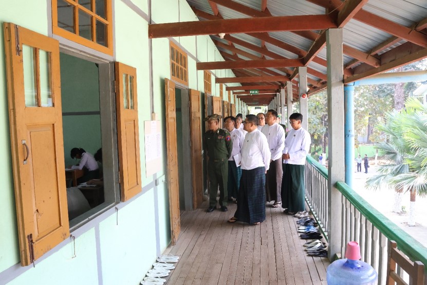 ယင်းသို့ ကျောင်းသား၊ ကျောင်းသူများ စိတ်အေးချမ်းသာစွာနှင့် ဘေးအန္တရာယ်ကင်းရှင်းစွာ ဖြေဆိုနိုင်ရေးအတွက် သက်ဆိုင်ရာ လုံခြုံရေးအဖွဲ့ဝင်များ၊ ကျန်းမာရေးဝန်ထမ်းများ၊ မီးသတ် တပ်ဖွဲ့ဝင်များနှင့် ရပ်ကွက်ကျေးရွာအုပ်ချုပ်ရေးအဖွဲ့ဝင်များက စနစ်တကျ စောင့်ကြပ်ကြည့်ရှု ပေးလျက်ရှိသည်။
