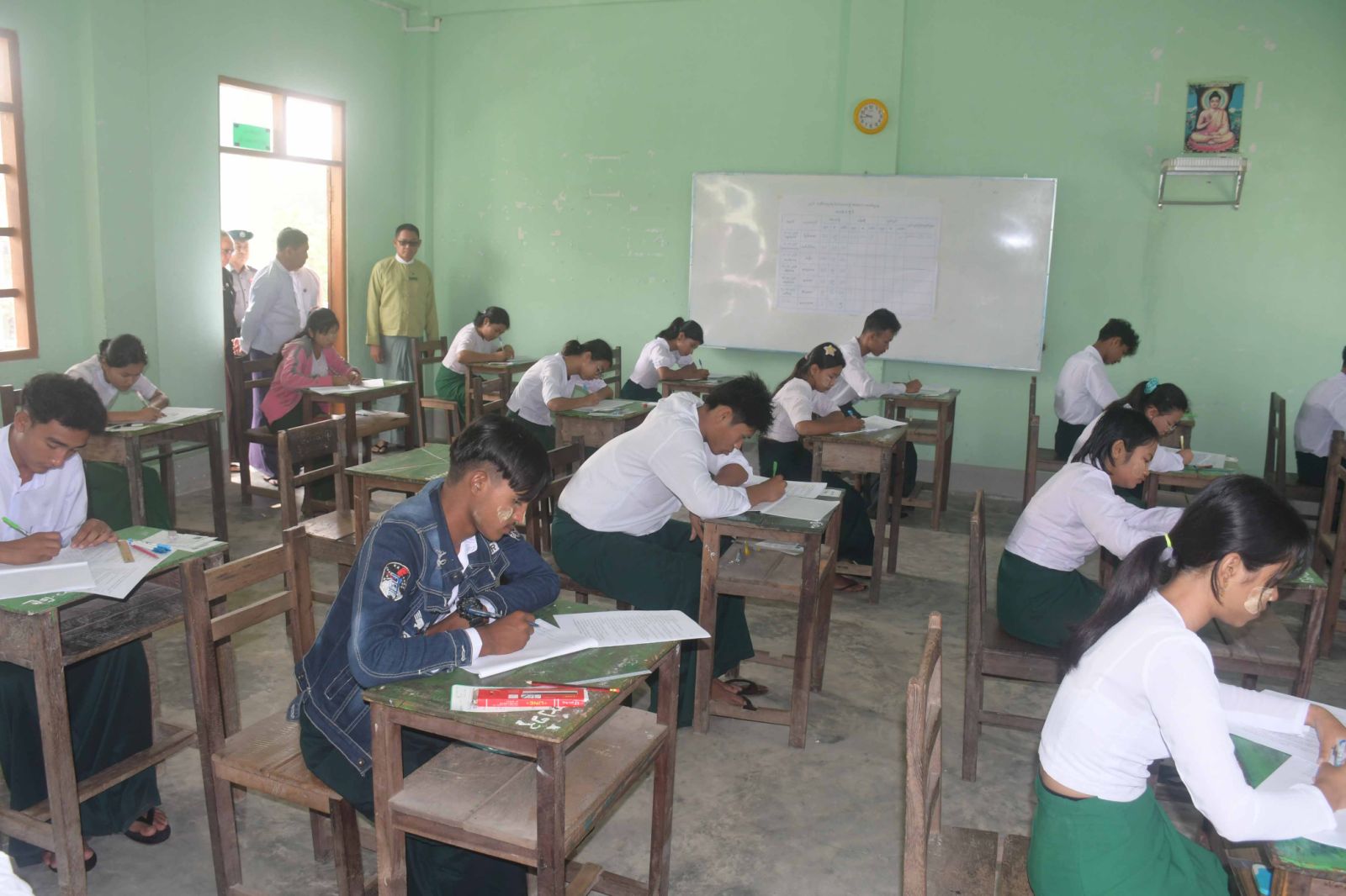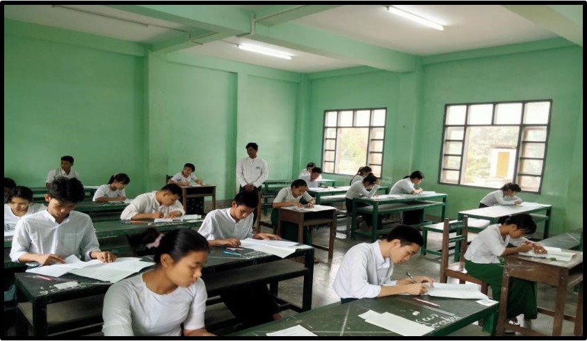 ဦးစွာ စာမေးပွဲ ဖြေဆိုခြင်းမပြုမီ ဆရာ၊ ဆရာမများက ကျောင်းသား၊ ကျောင်းသူများအား စာမေးပွဲဖြေဆိုခွင့်ကတ်များ မှန်/မမှန် စစ်ဆေးခြင်းများနှင့် လိုအပ်သည့် စစ်ဆေးမှုများကို စာမေးပွဲ စည်းမျဉ်းစည်းကမ်းများနှင့်အညီ စနစ်တကျ ဆောင်ရွက်ကြသည်။