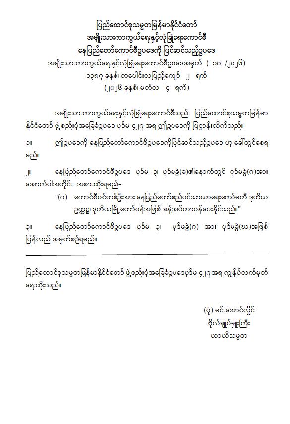 နေပြည်တော်ကောင်စီဥပဒေကို ပြင်ဆင်သည့်ဥပဒေ အမျိုးသားကာကွယ်ရေးနှင့်လုံခြုံရေးကောင်စီဥပဒေအမှတ် ( ၁၀ /၂၀၂၆)