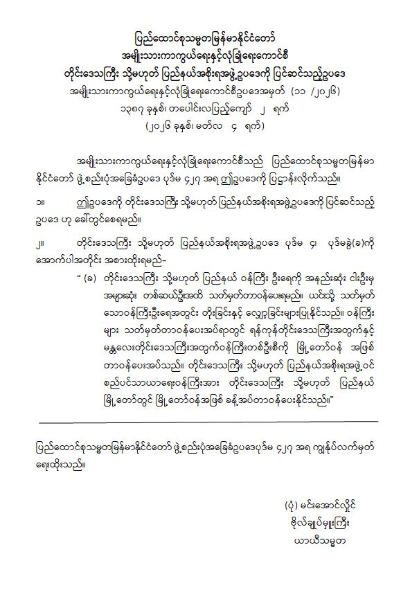 တိုင်းဒေသကြီး သို့မဟုတ် ပြည်နယ်အစိုးရအဖွဲ့ဥပဒေကို ပြင်ဆင်သည့်ဥပဒေ အမျိုးသားကာကွယ်ရေးနှင့်လုံခြုံရေးကောင်စီဥပဒေအမှတ် (၁၁ /၂၀၂၆)